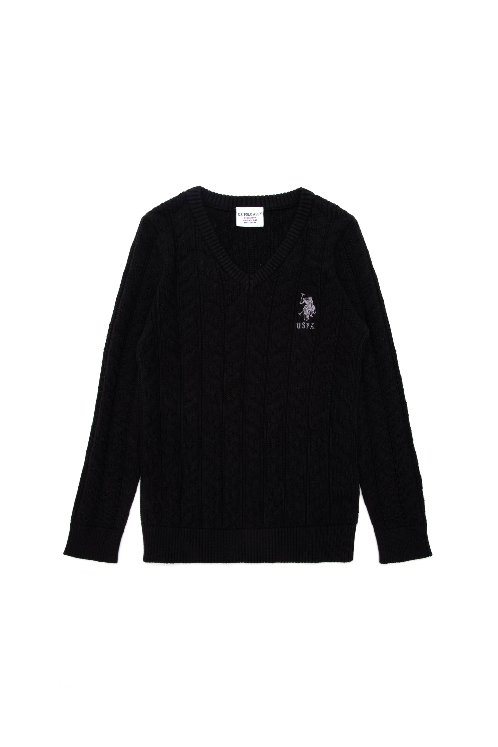 Erkek Çocuk Siyah Basic V Yaka Kazak