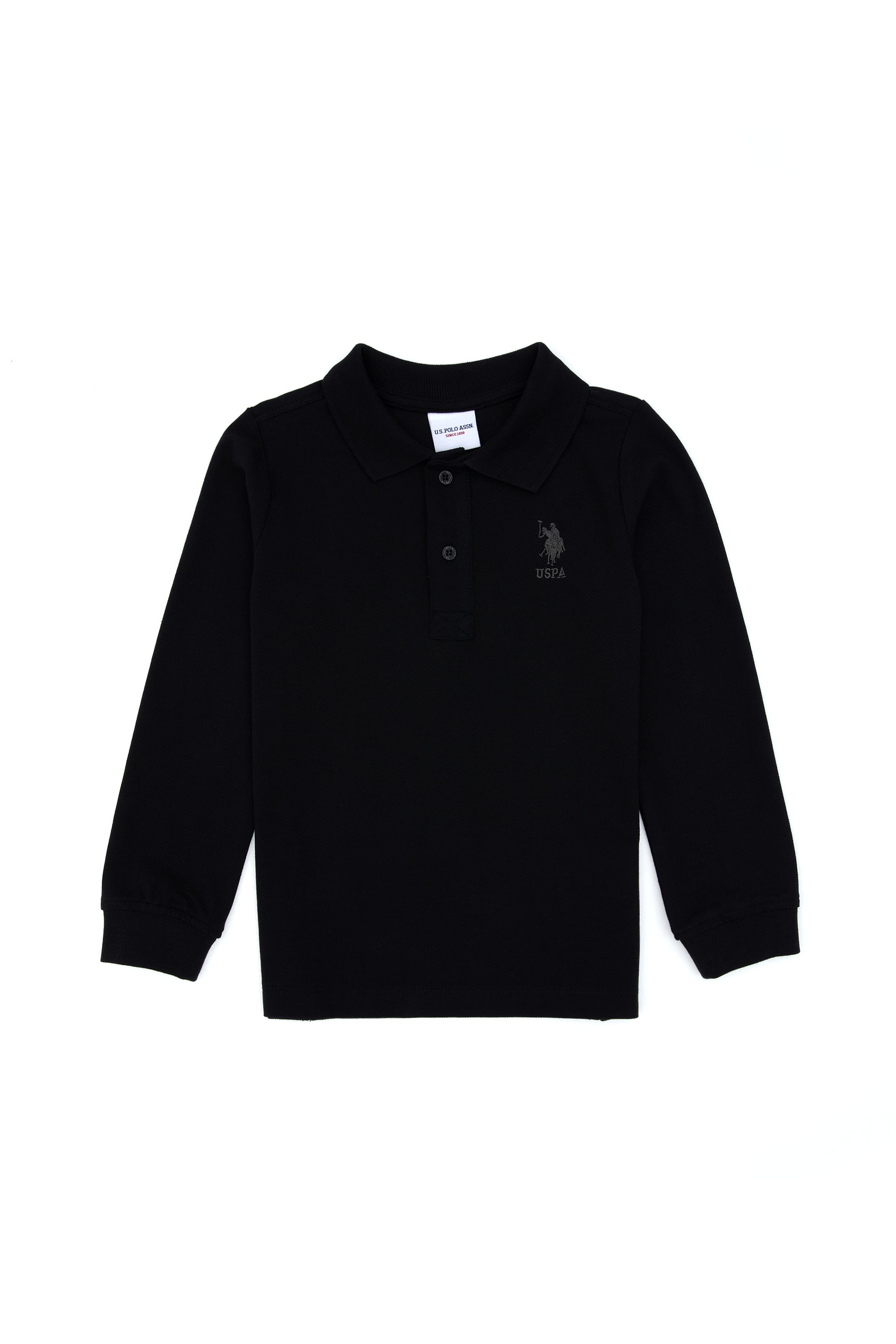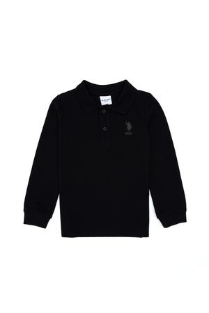 - Erkek Çocuk Siyah Basic Polo Yaka Sweatshirt