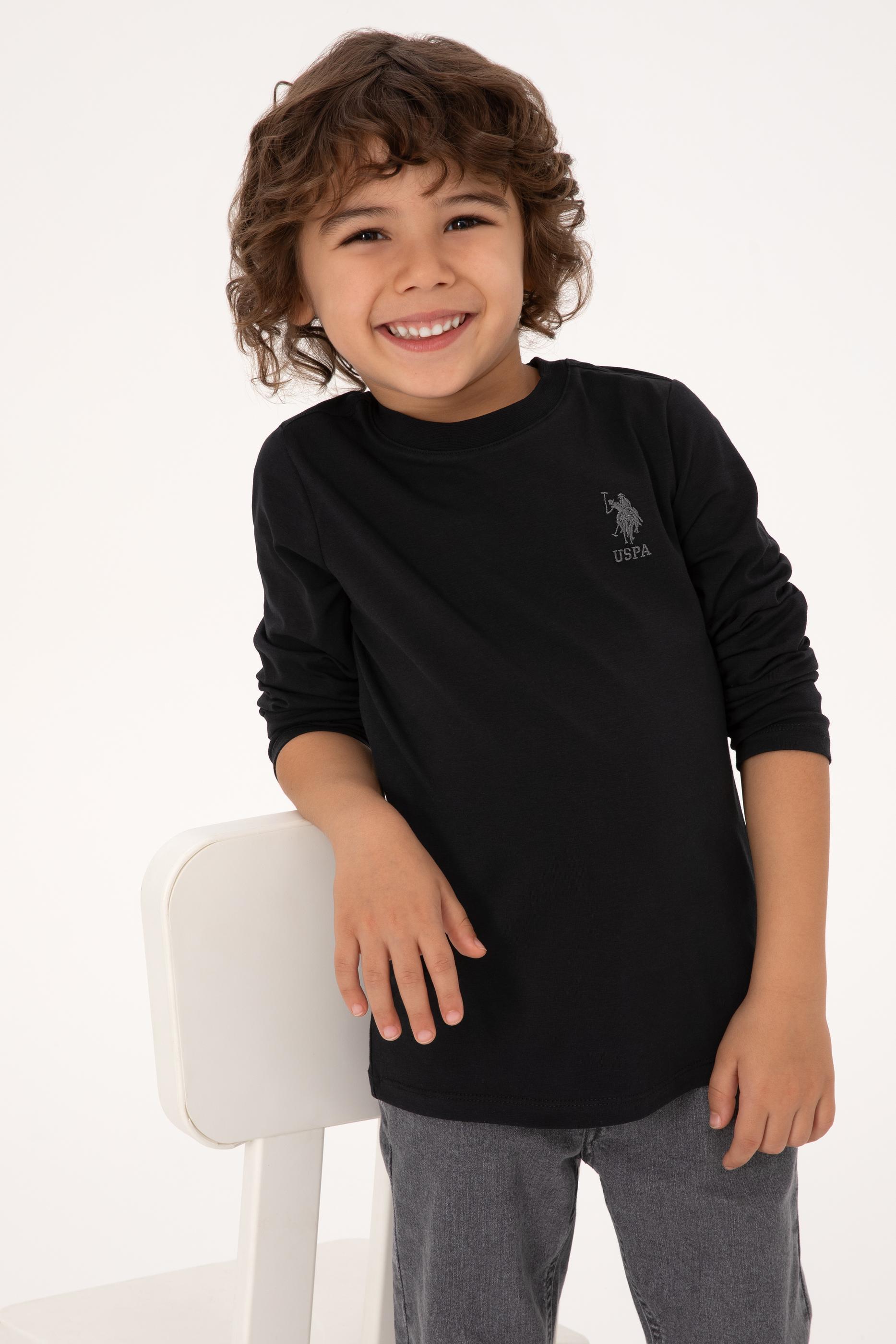 - Erkek Çocuk Siyah Basic Bisiklet Yaka Sweatshirt