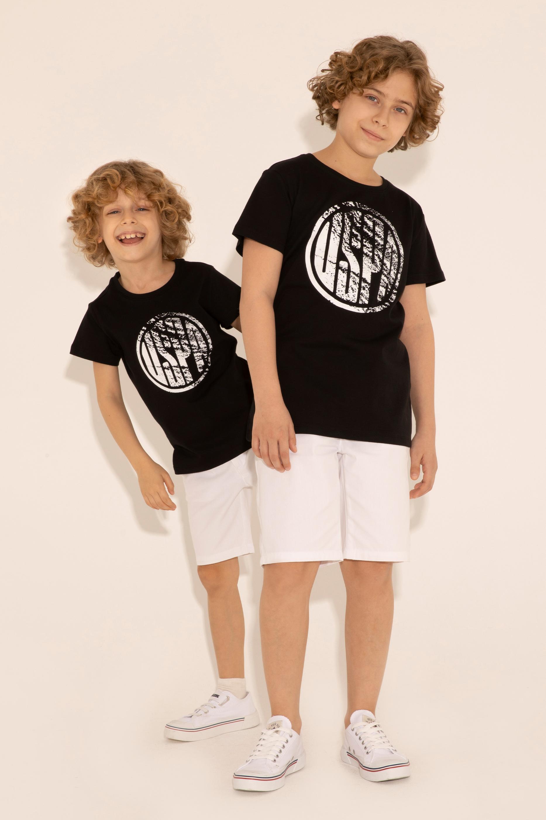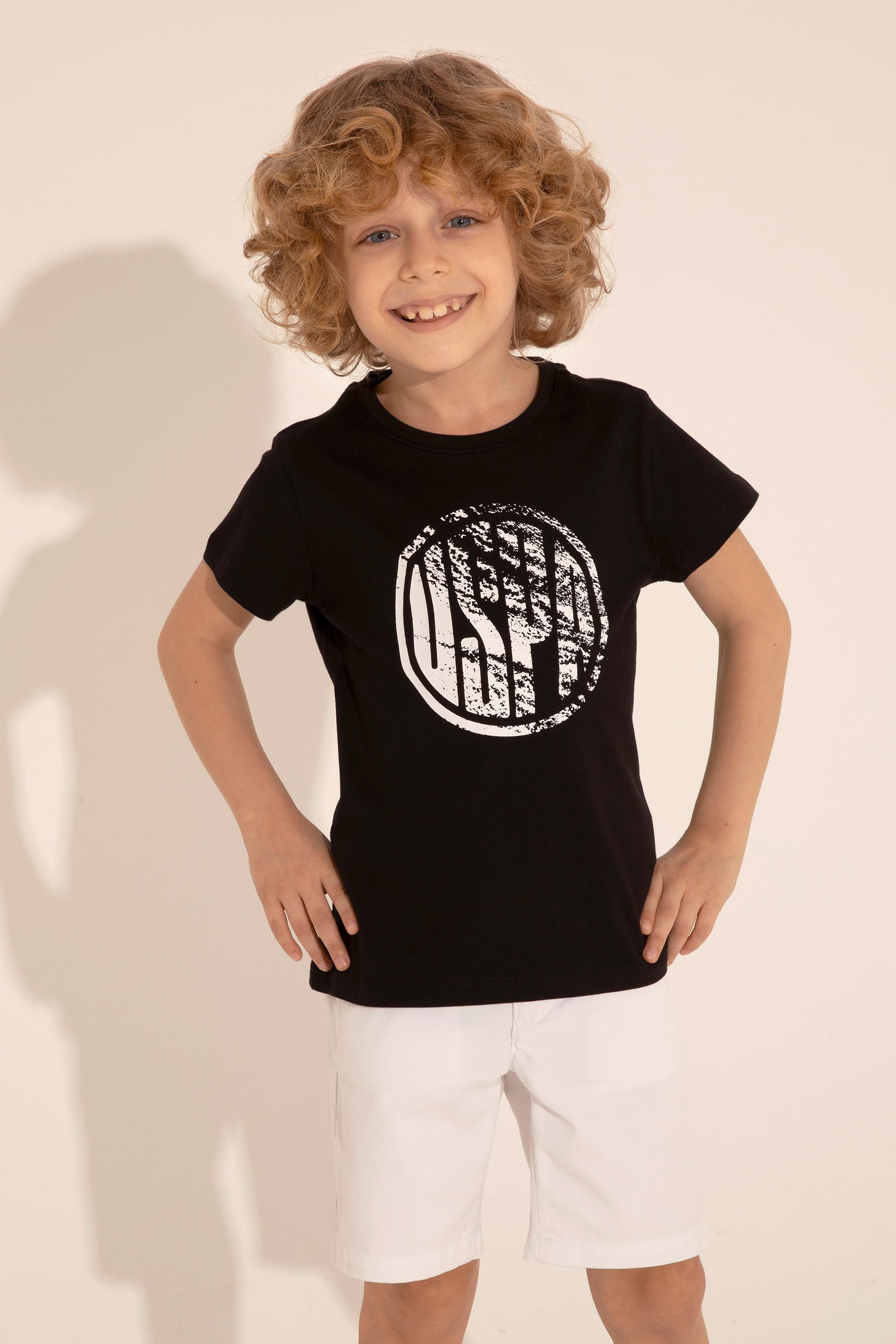 - Erkek Çocuk Siyah Basic Bisiklet Yaka Tişört