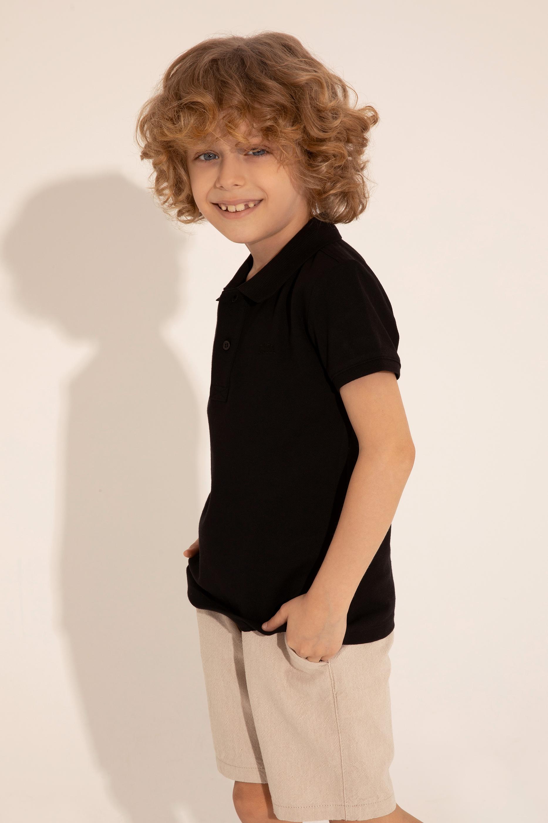 Erkek Çocuk Siyah Basic Polo Yaka Tişört