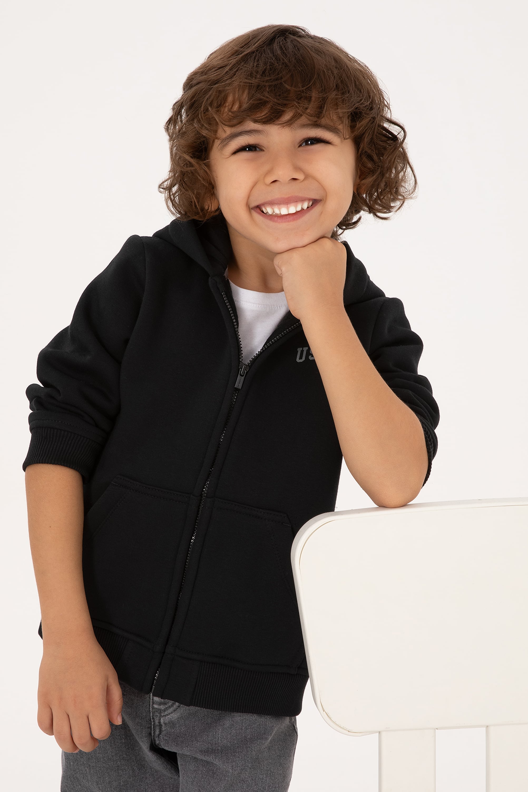 - Erkek Çocuk Siyah Fermuarlı Şardonlu Kapüşonlu Örme Hırka