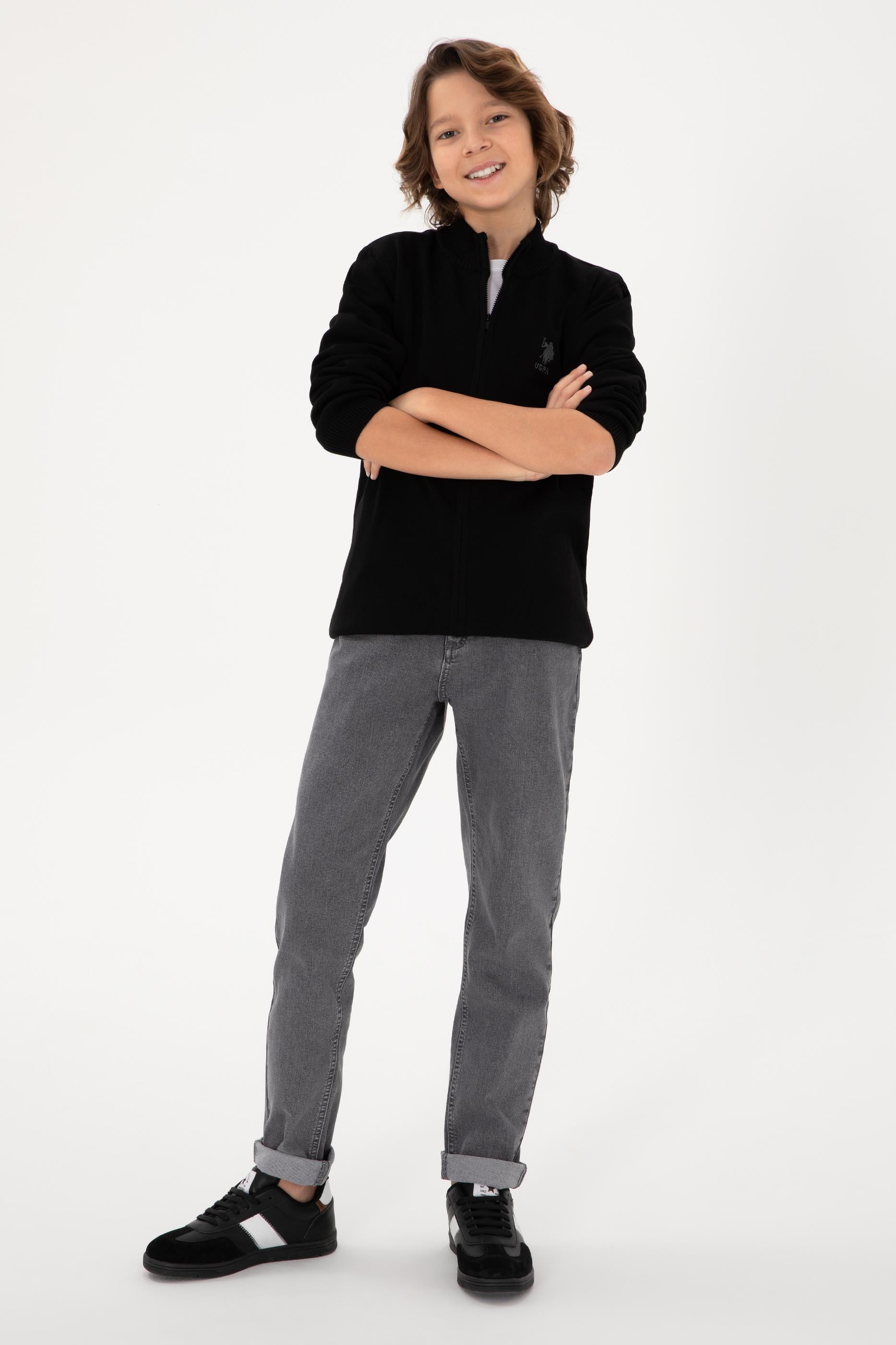Erkek Çocuk Siyah Fermuarlı Triko Hırka