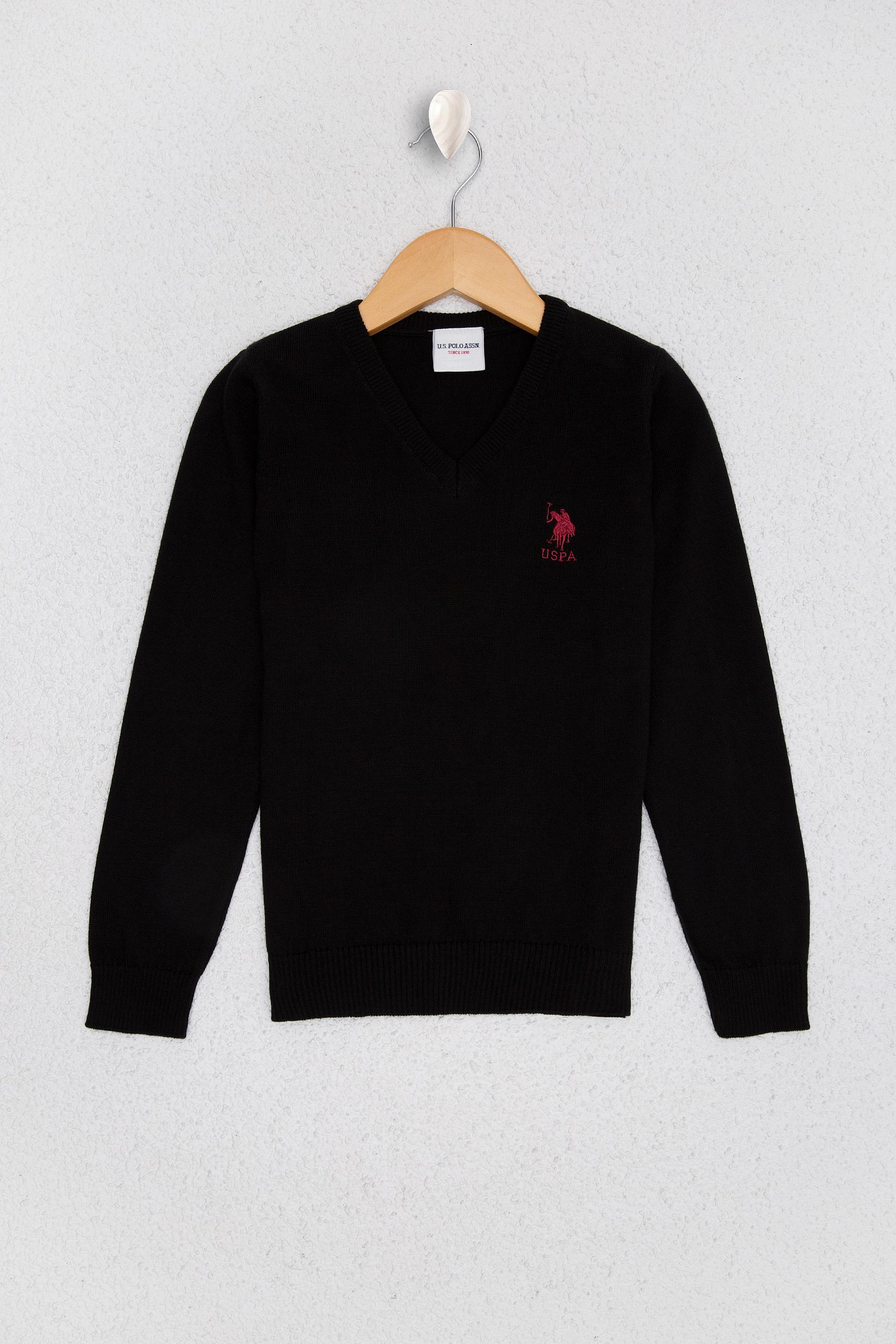 Erkek Çocuk Siyah V Yaka Triko Kazak Basic