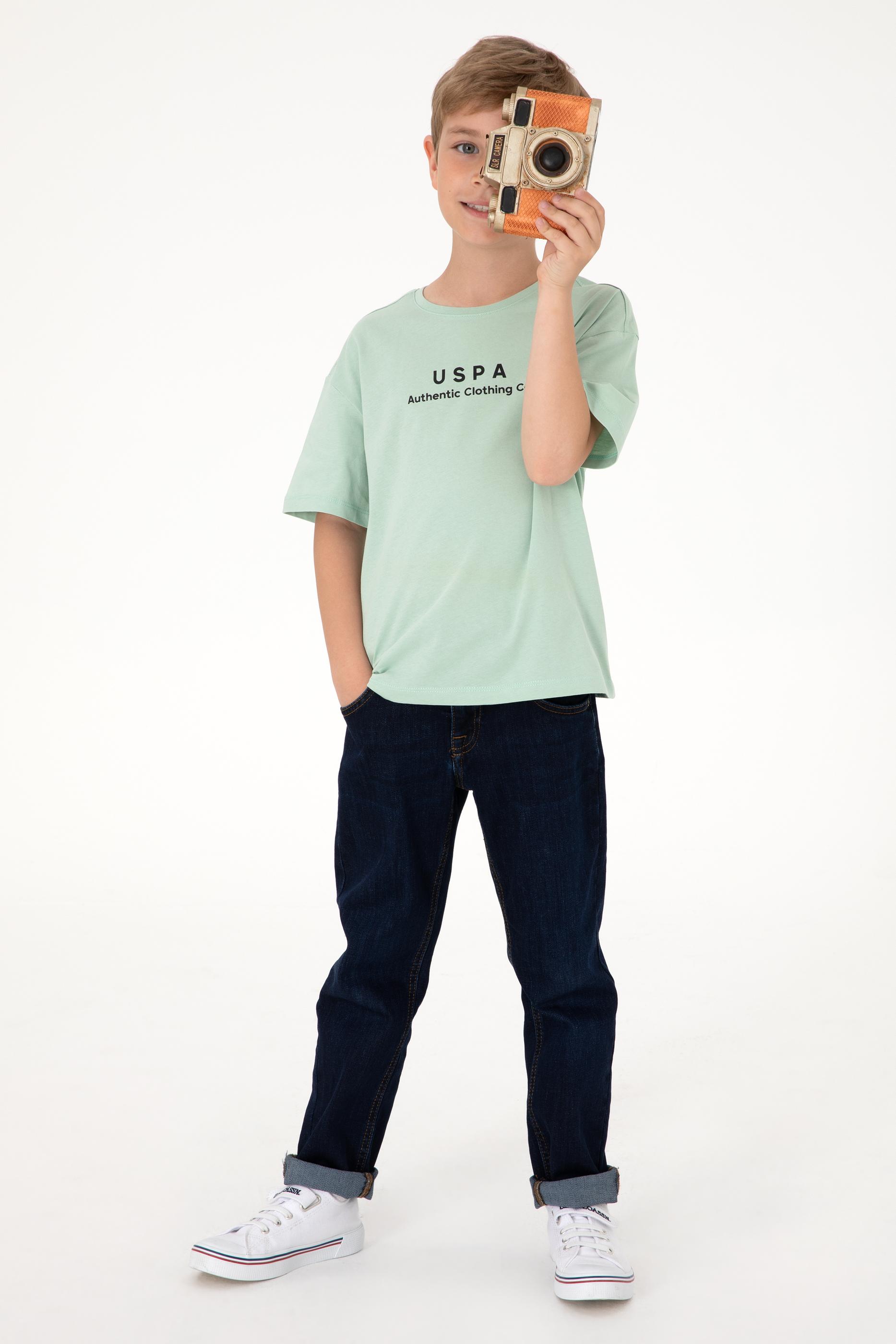 - Erkek Çocuk Su Yeşili Comfort Basic Bisiklet Yaka Tişört