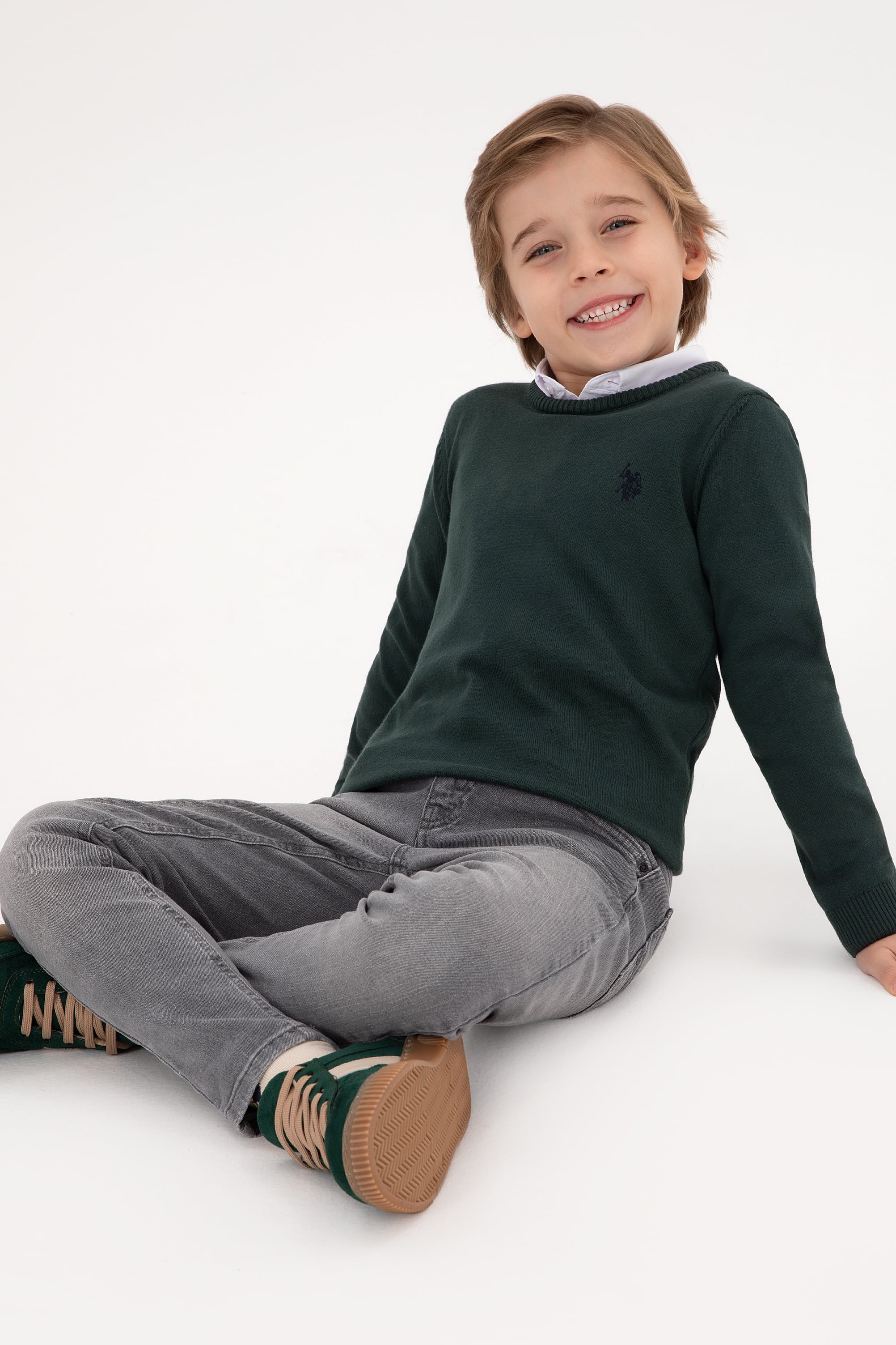 Erkek Çocuk Yeşil Bisiklet Yaka Basic Kazak
