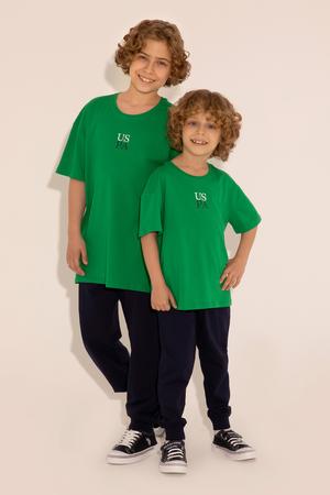 - Erkek Çocuk Yeşil Oversize Bisiklet Yaka Tişört