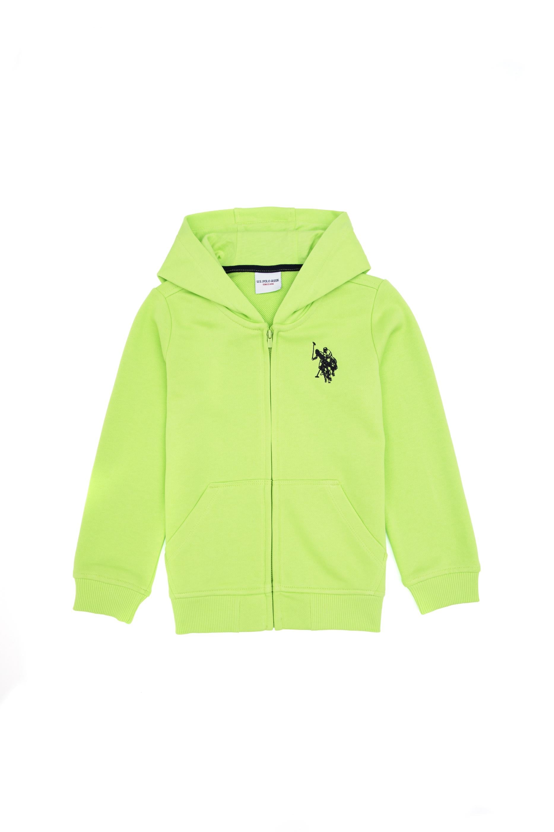 Erkek Çocuk Yeşil Fermuarlı Kapüşonlu Sweatshirt