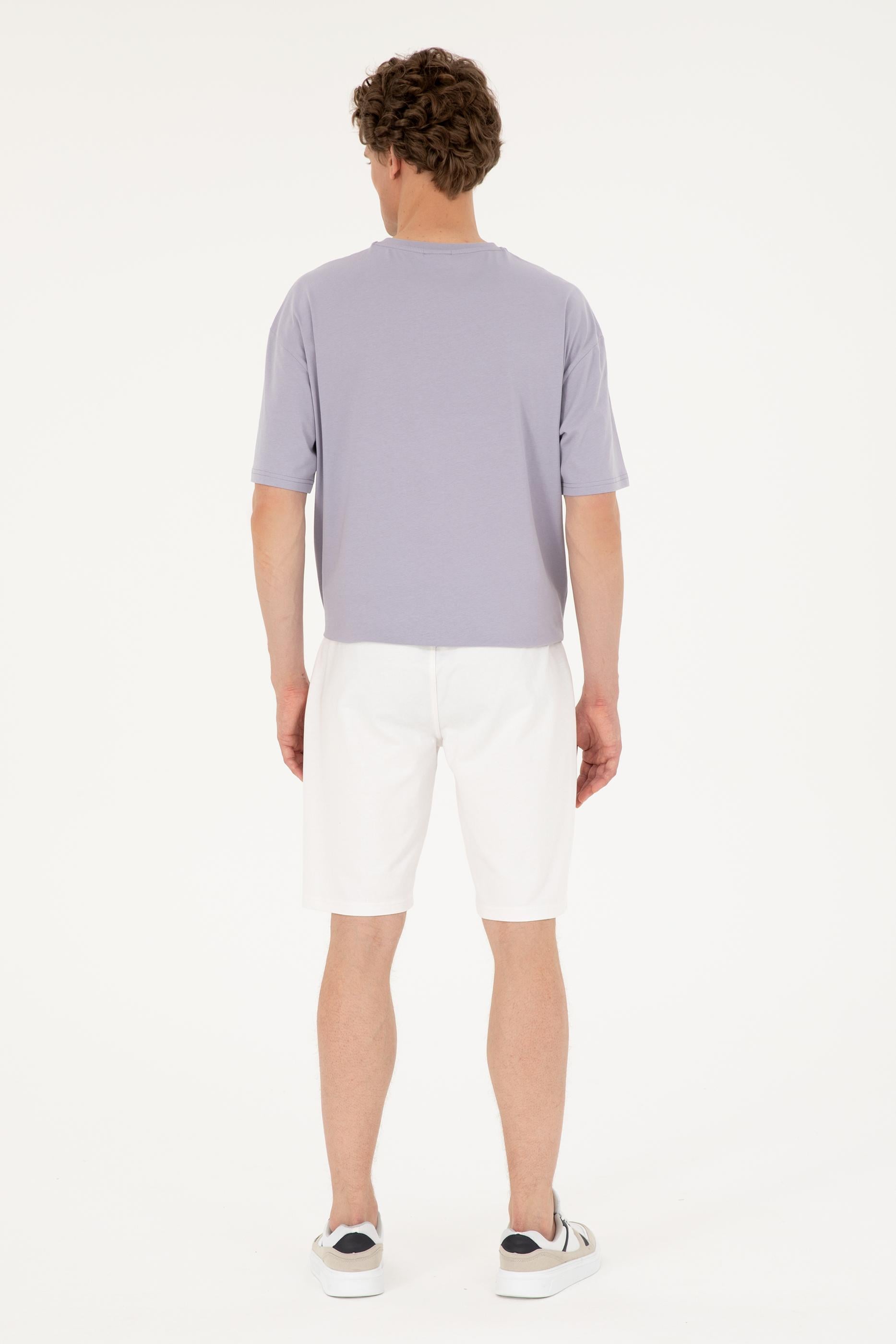 Ekru renkli erkek şortu %100 pamuktan üretilmiş olup, doğal ve rahat bir kullanım sunar. Yüksek kaliteli iki iplik örme kumaşı cildinizin nefes almasını sağlayarak gün boyu konforlu hissetmenizi sağlar. Ön sağ paçada bulunan kabartma baskı detayı şorta modern ve dikkat çekici bir hava katarken dizüstü boyu ile hem sportif hem de şık bir görünüm sağlar. U.S. Polo Assn. şort kalite ve işçilik açısından üst düzey bir üründür.