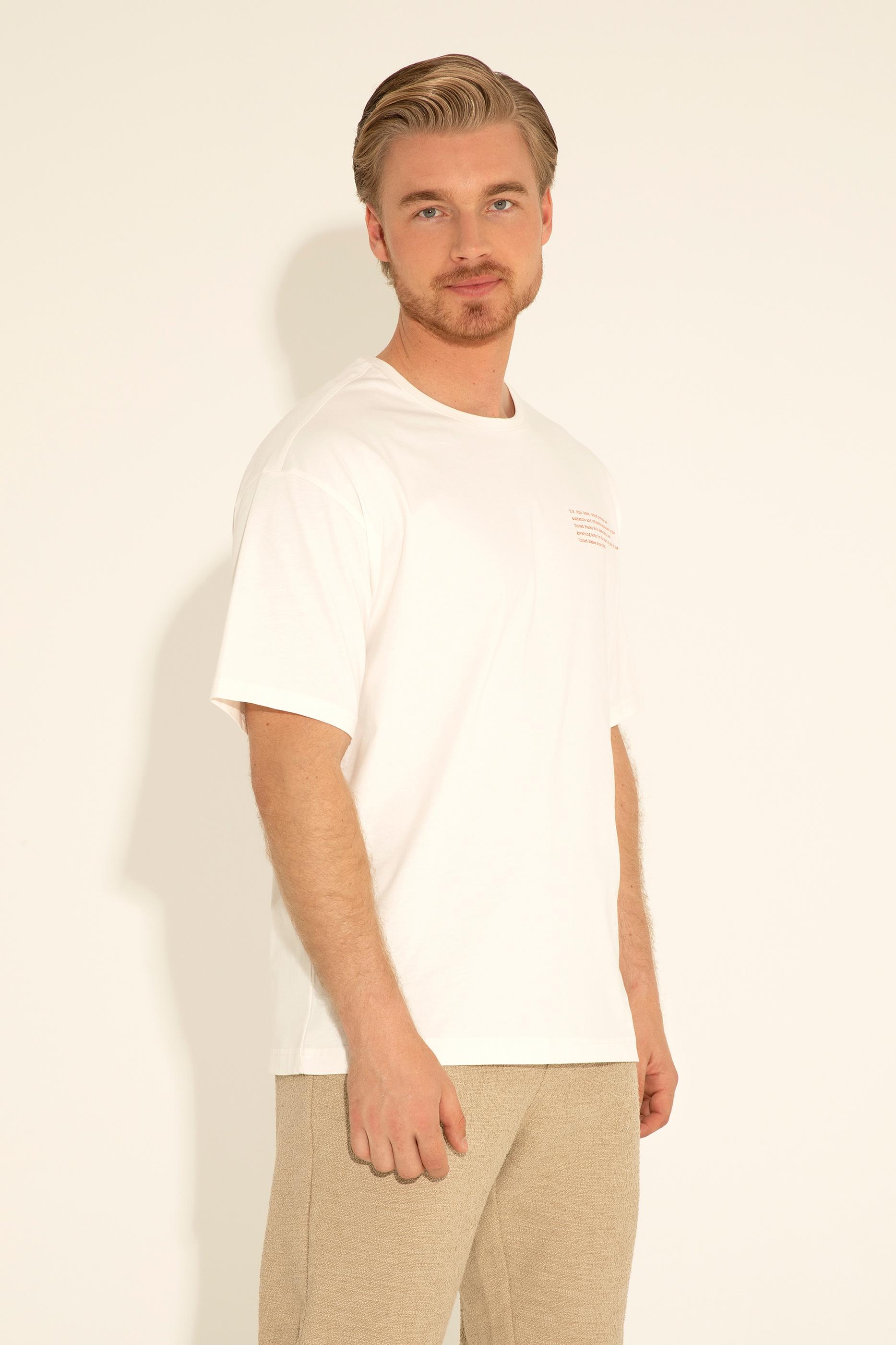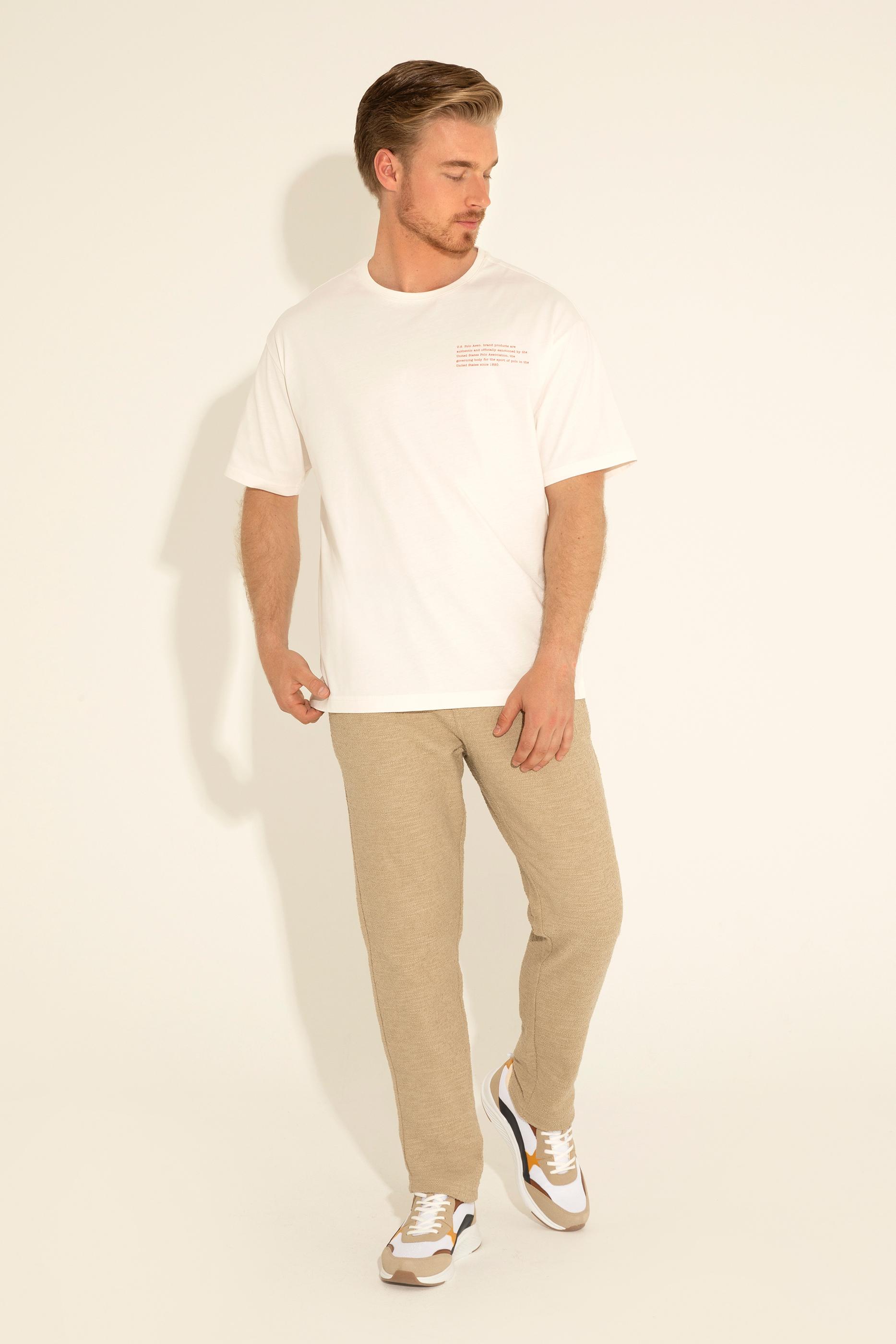 Erkek Comfort Fit Bisiklet Yaka Ekru Tişört