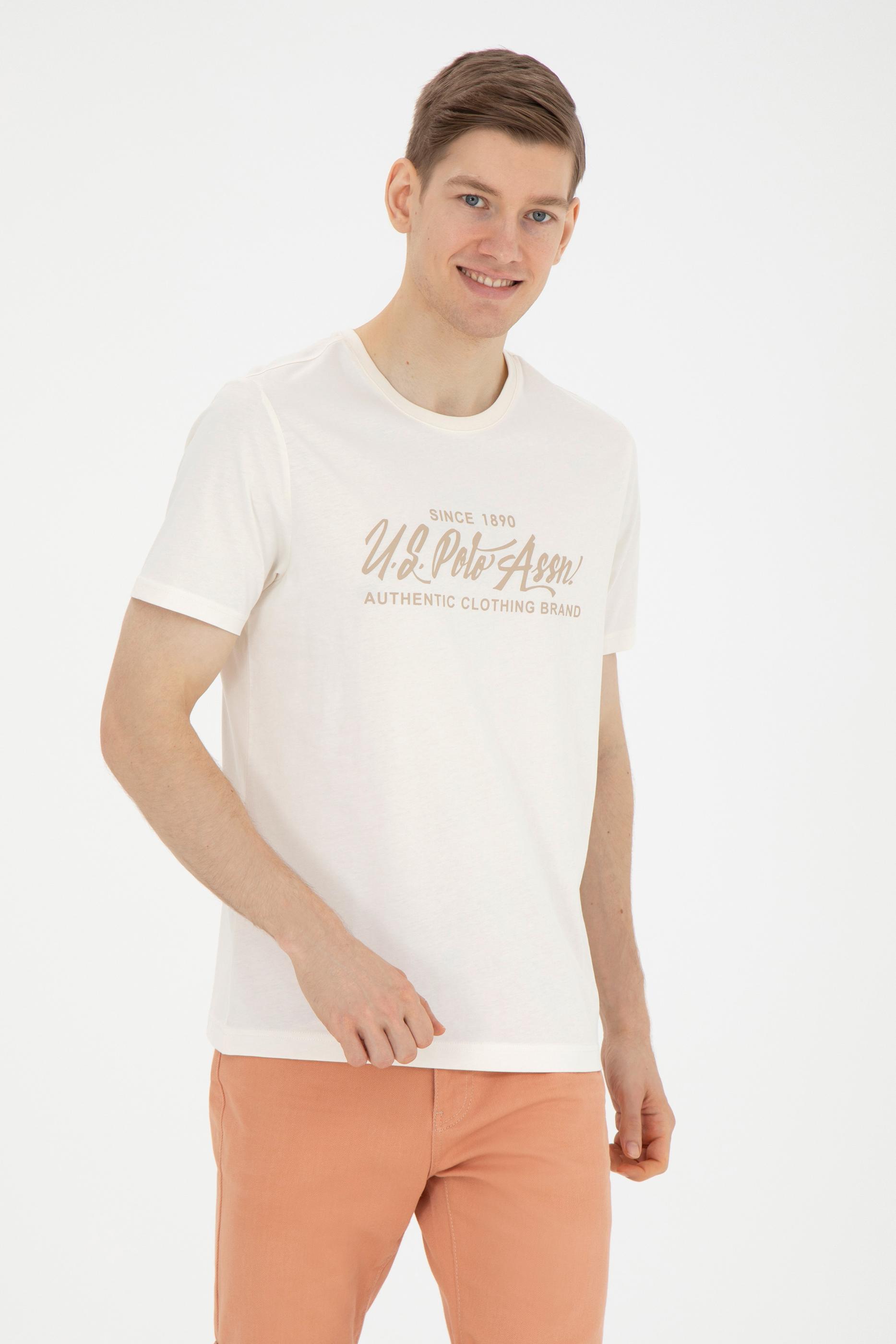 - Erkek Regular Fit Bisiklet Yaka Ekru Tişört