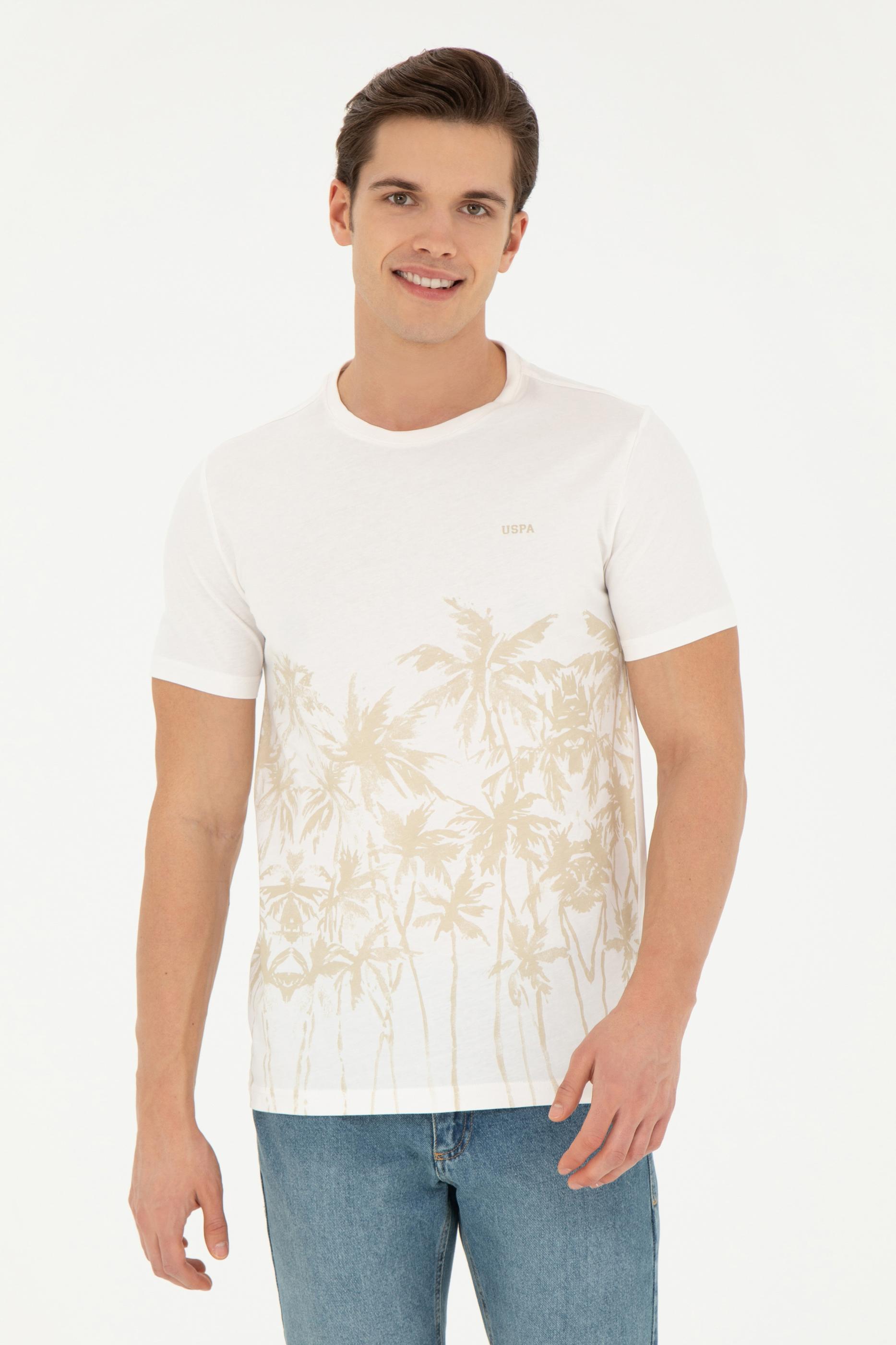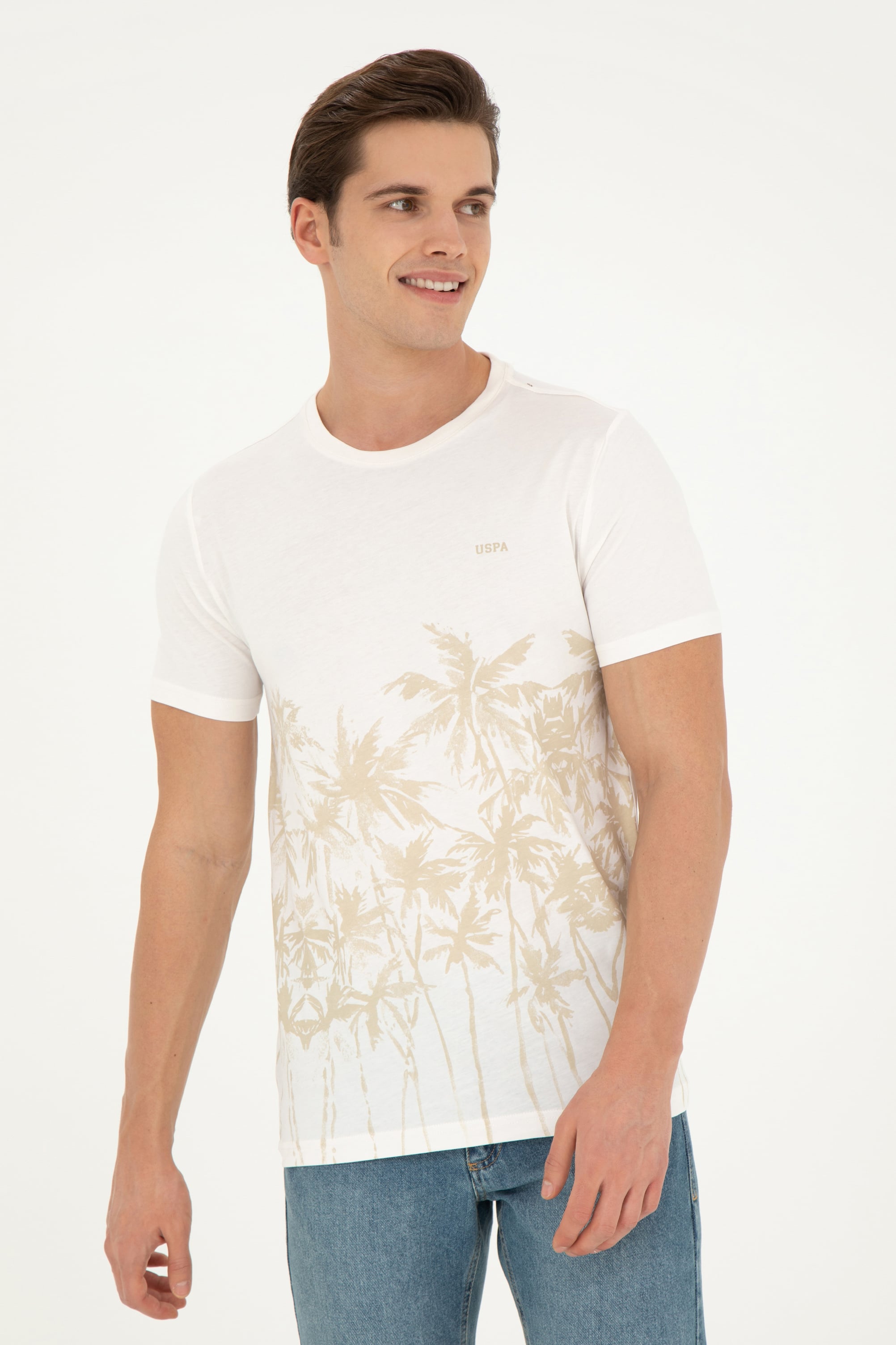 %100 pamuk kumaşıyla dikkat çeken ekru renkli tişört, yaz aylarının vazgeçilmez parçalarından biridir. Günlük hayatta veya tatilde rahatlıkla giyilebilen bu tişört, palmiye baskısıyla enerjik bir stil sunuyor.