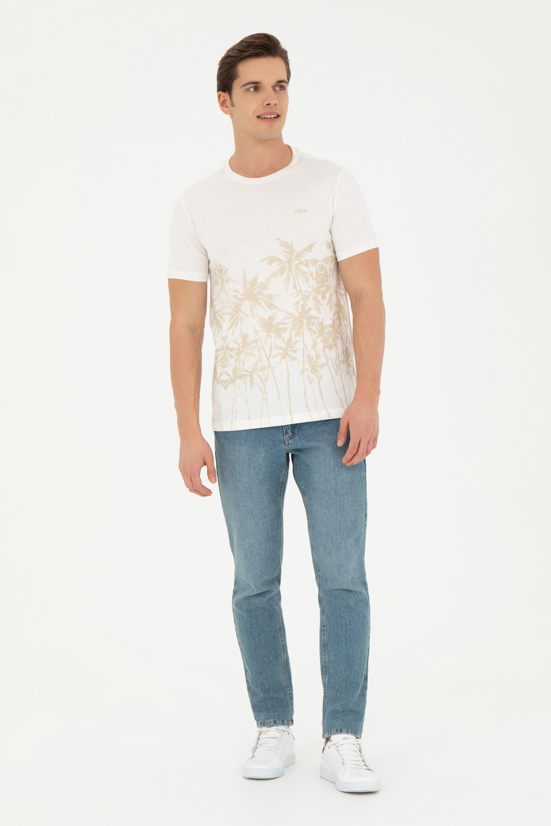 Tişörtün ekru rengi, yaz aylarında güneş ışığını yansıtarak daha serin kalmanıza yardımcı olurken, aynı zamanda pek çok kıyafetle kolayca kombin yapılabilme avantajı sunuyor. Üzerindeki palmiye baskısı, tişörte enerjik bir hava katıyor. Regular fit olarak tasarlanan tişört, her vücut tipine uygun bir kalıba sahiptir. Bu sayede gün boyu rahat hareket etmenizi sağlarken, şıklığınızdan da ödün vermemenize olanak tanıyor.