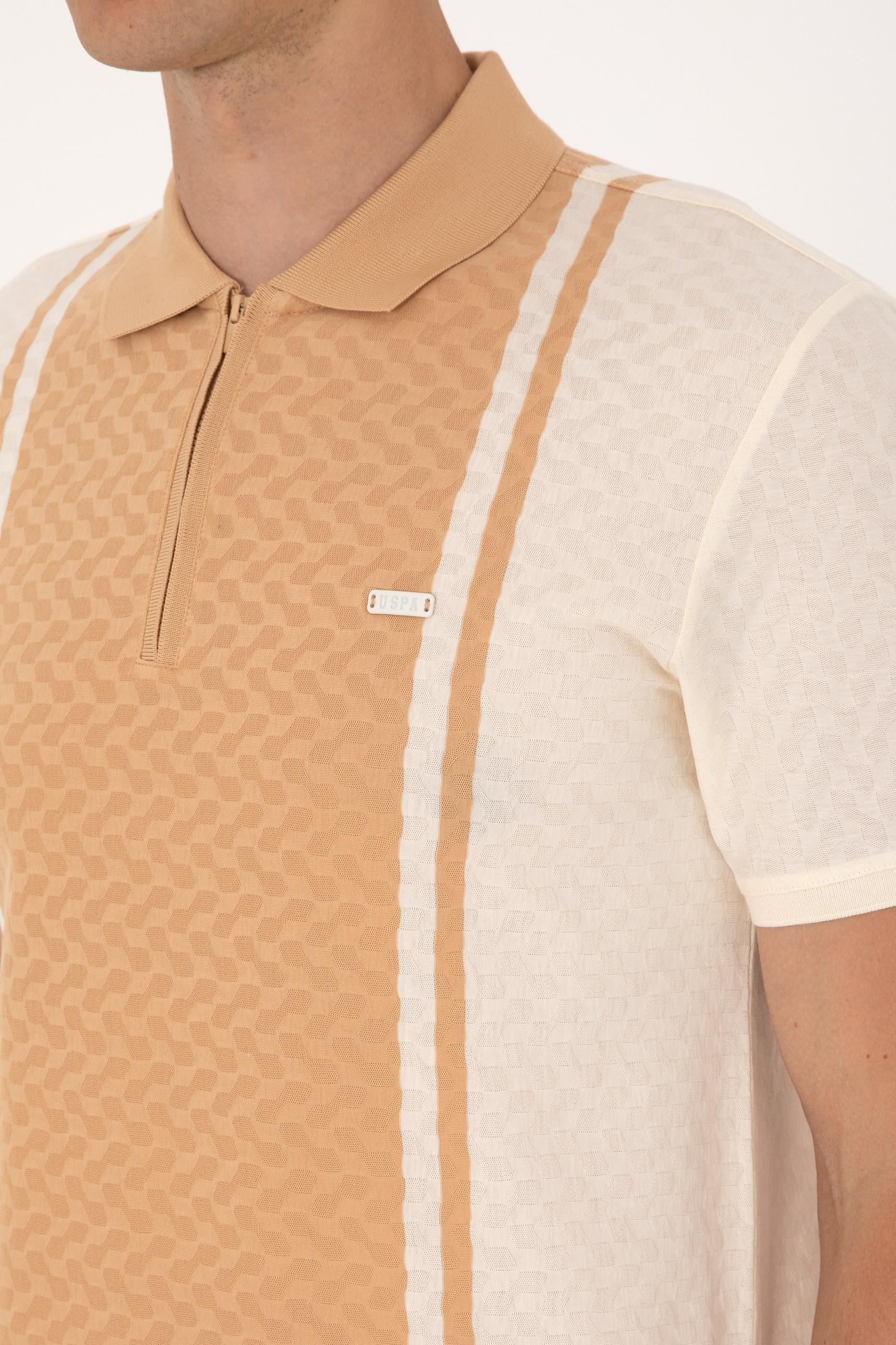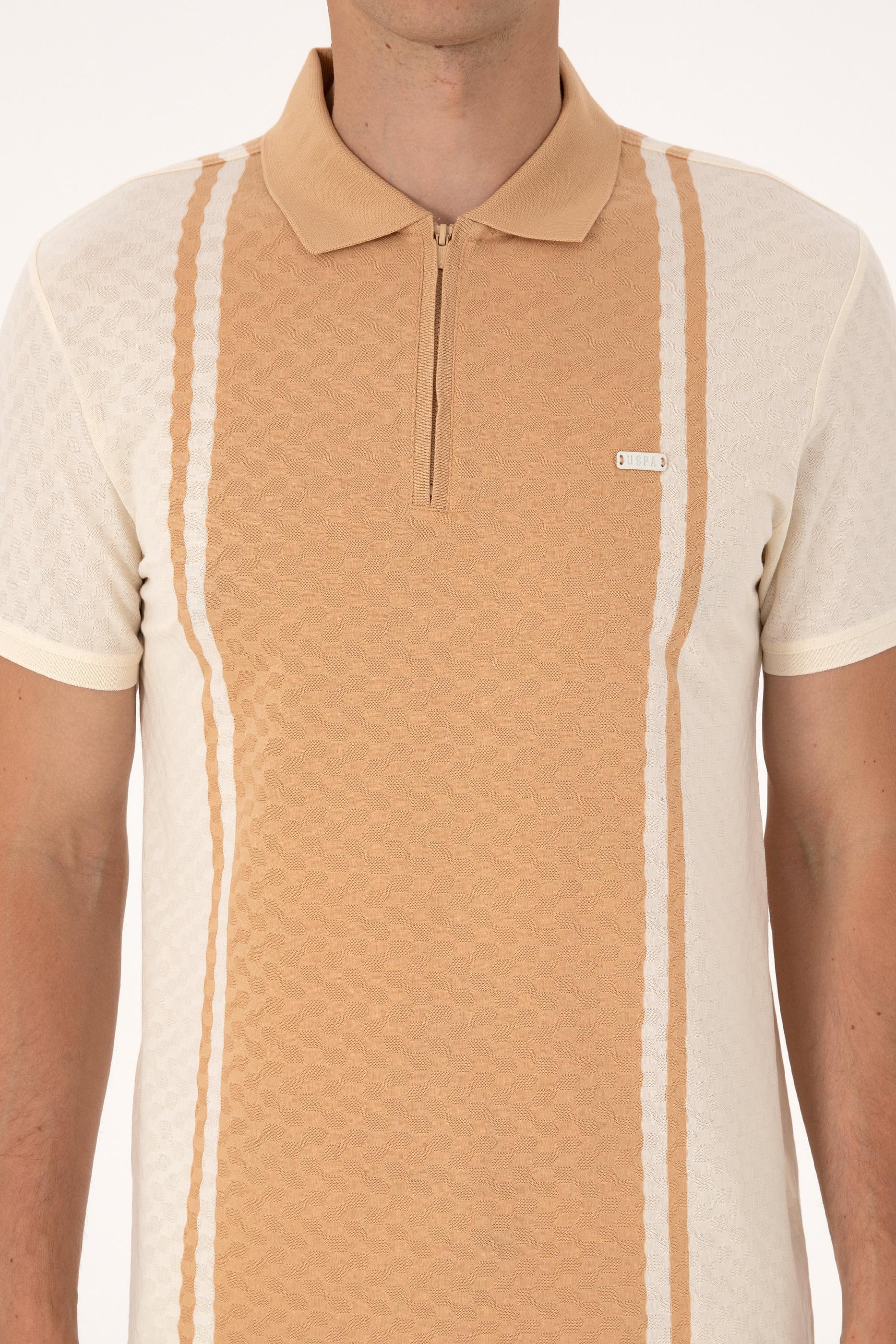 Erkek Regular Fit Ekru Polo Yaka Fermuarlı Tişört
