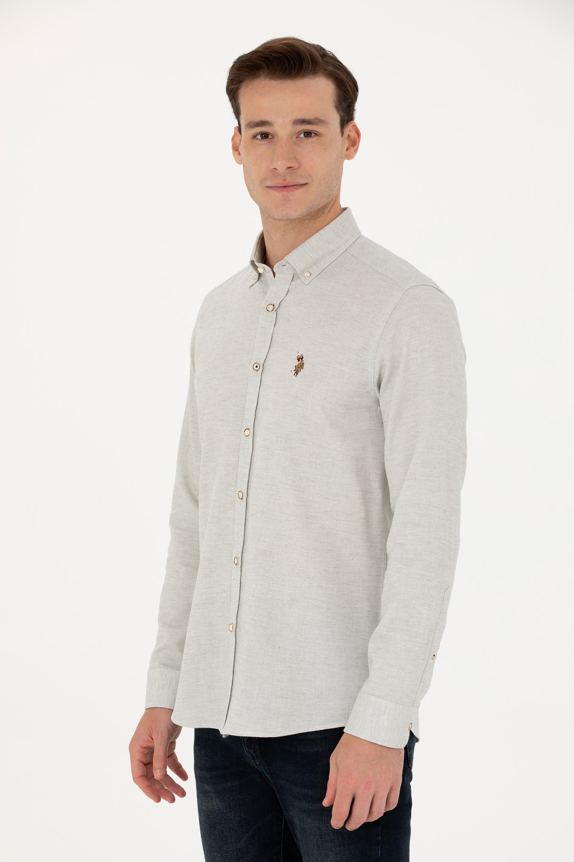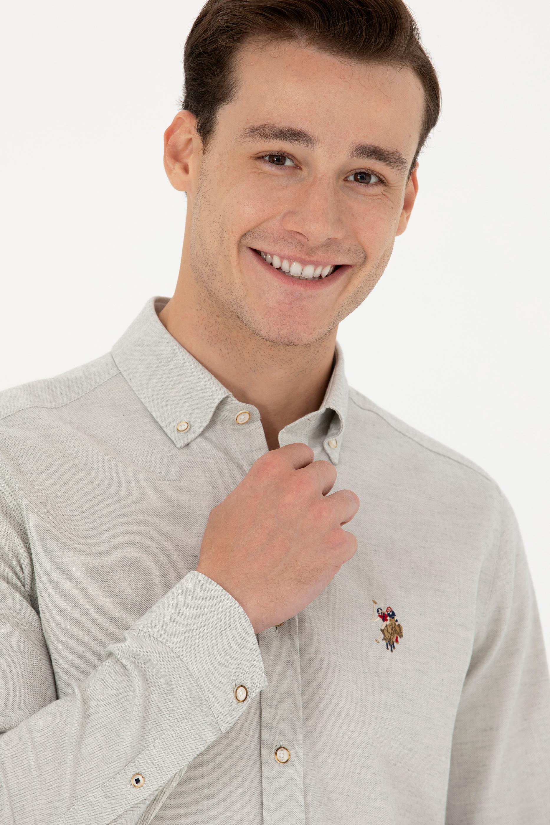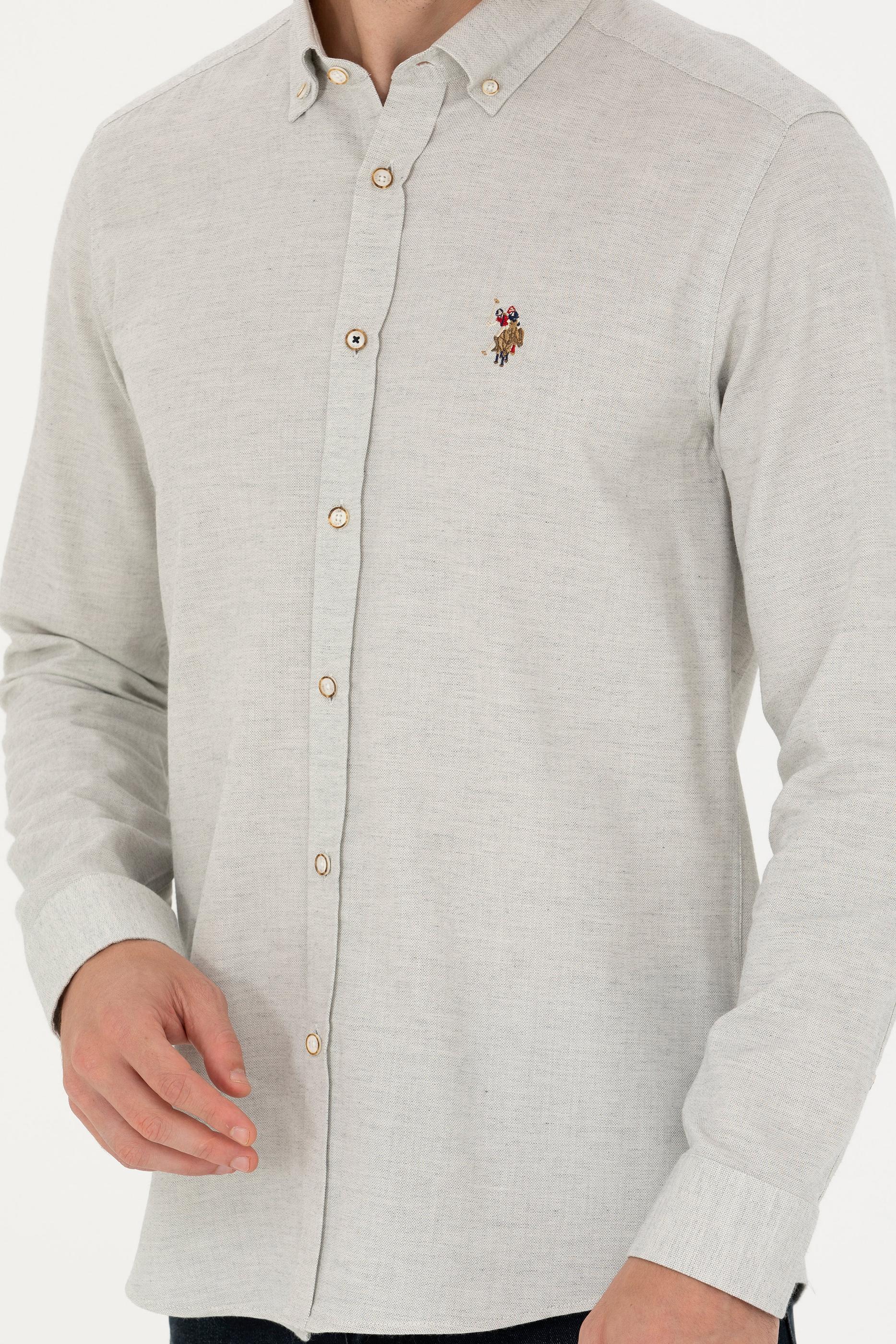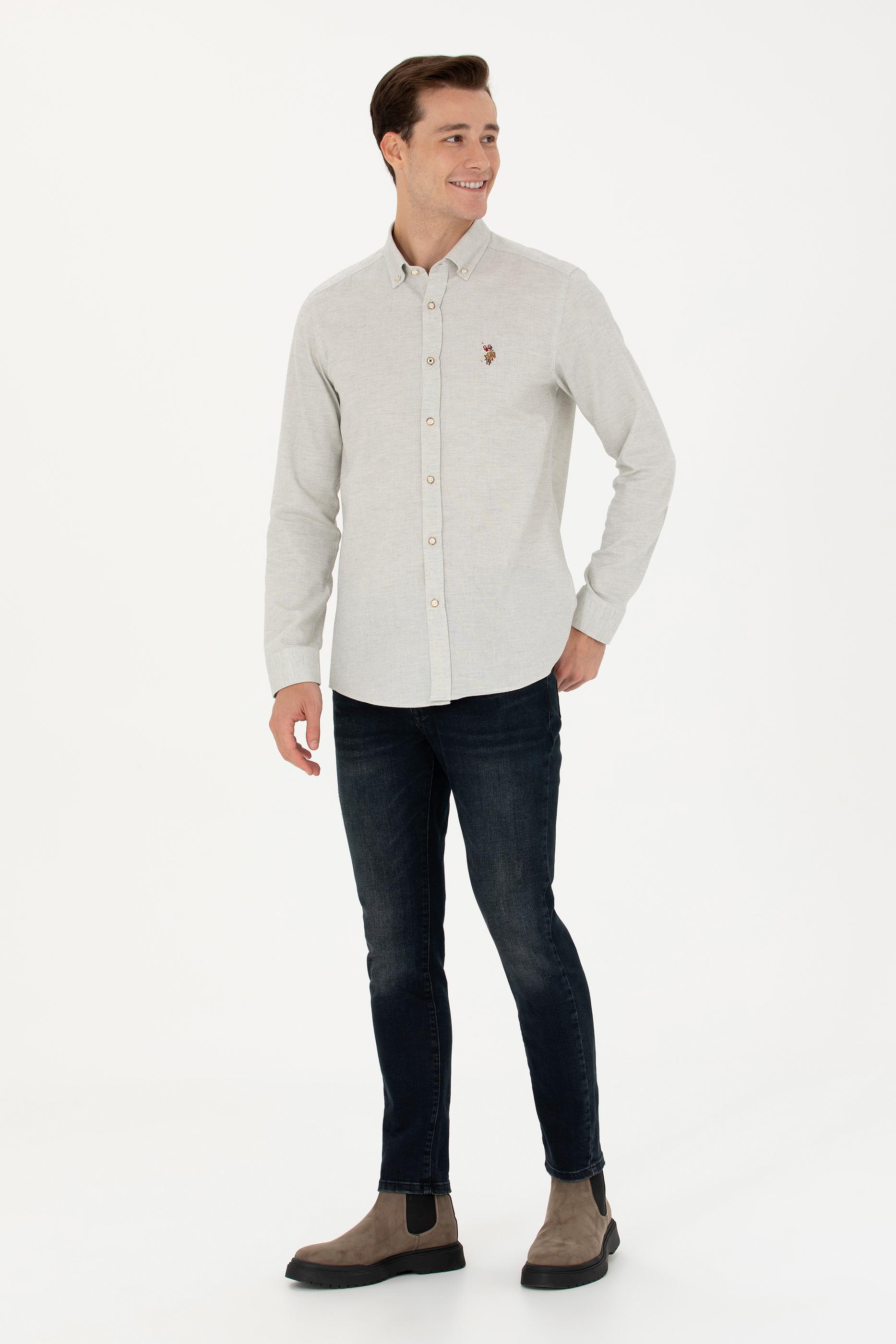 - Erkek Ekru Uzun Kollu Basic Gömlek