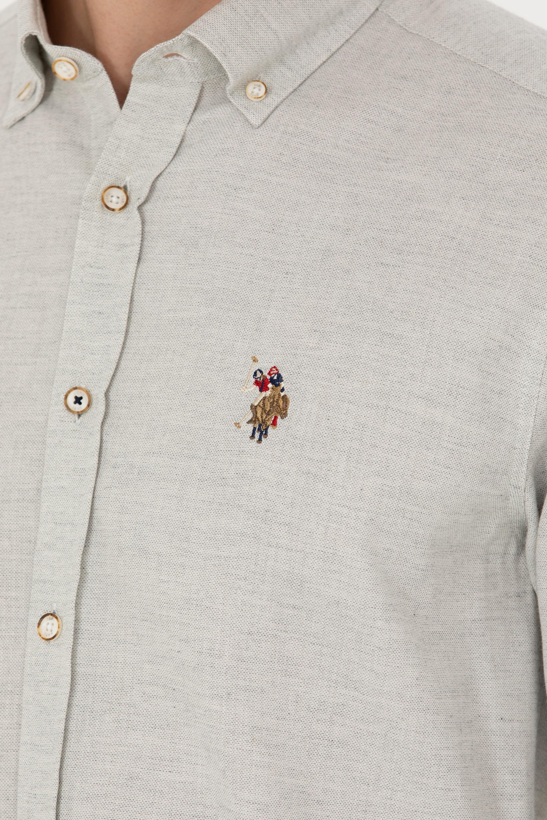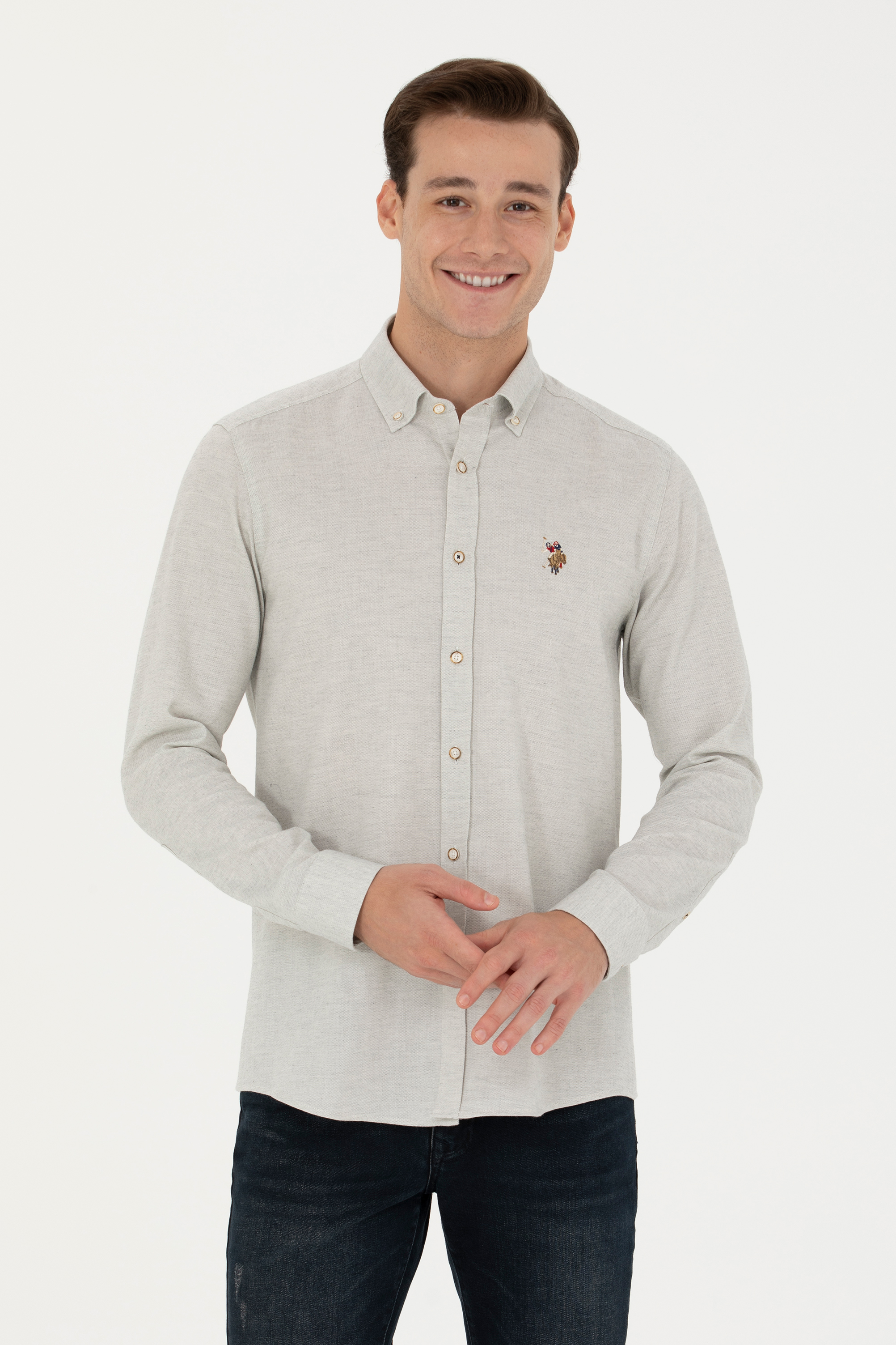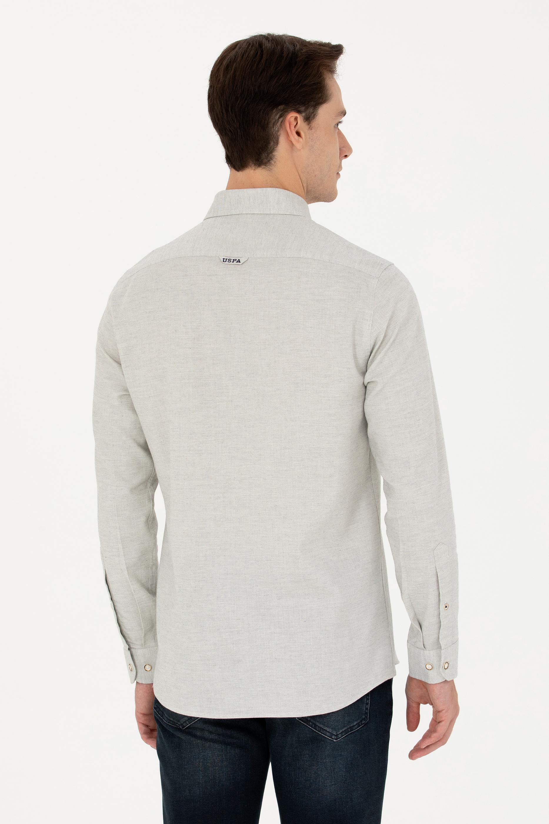 Erkek Ekru Uzun Kollu Basic Gömlek