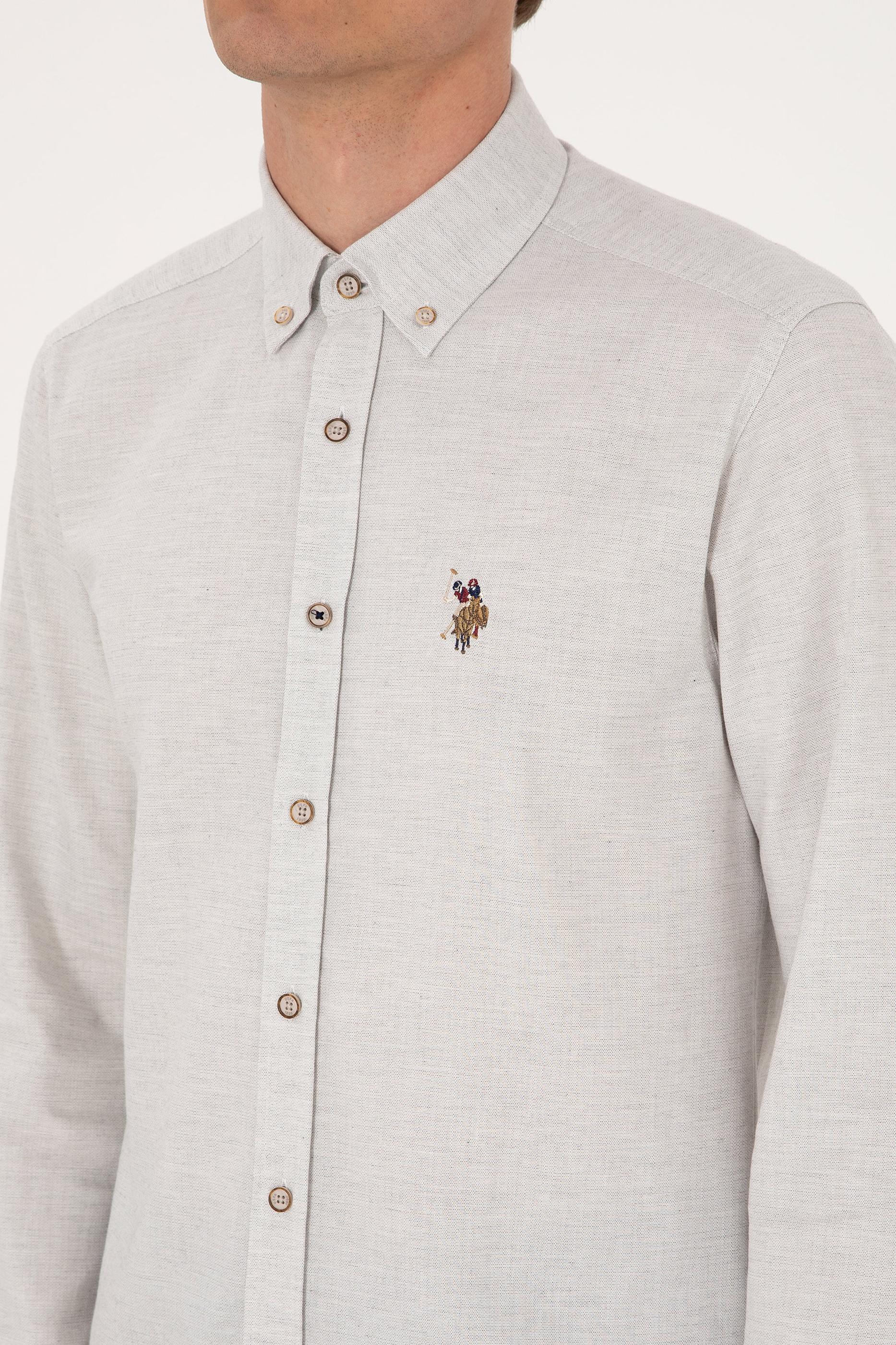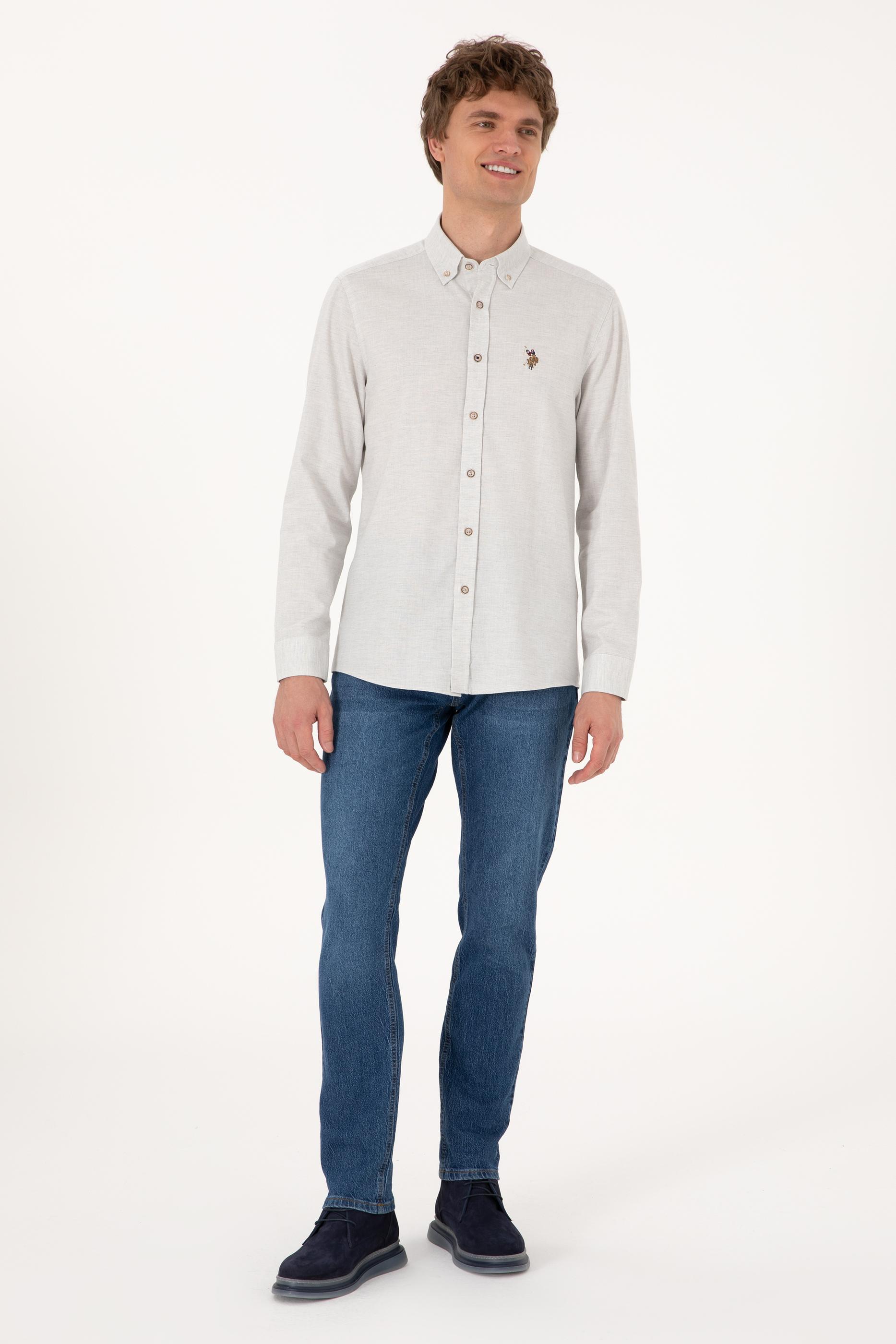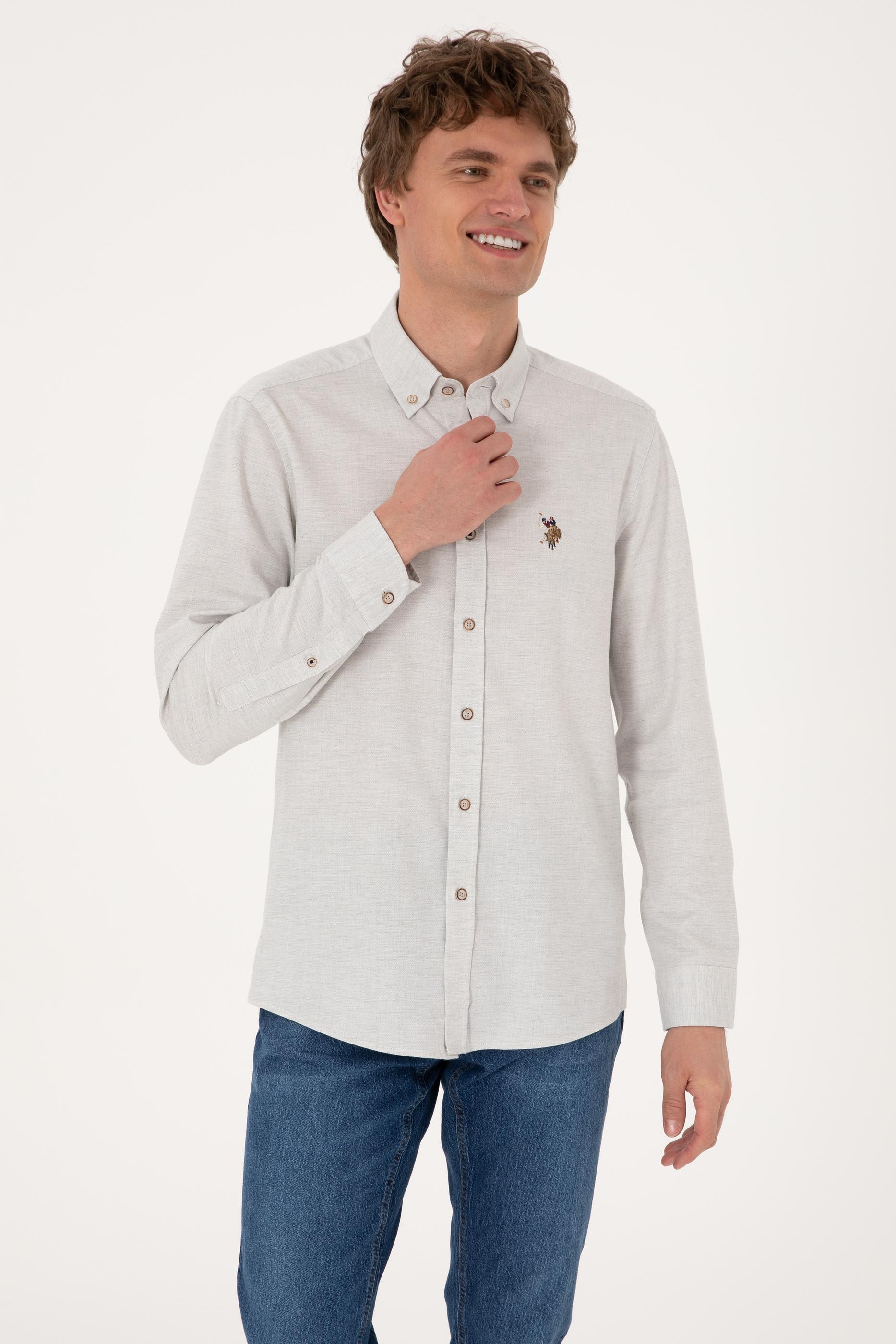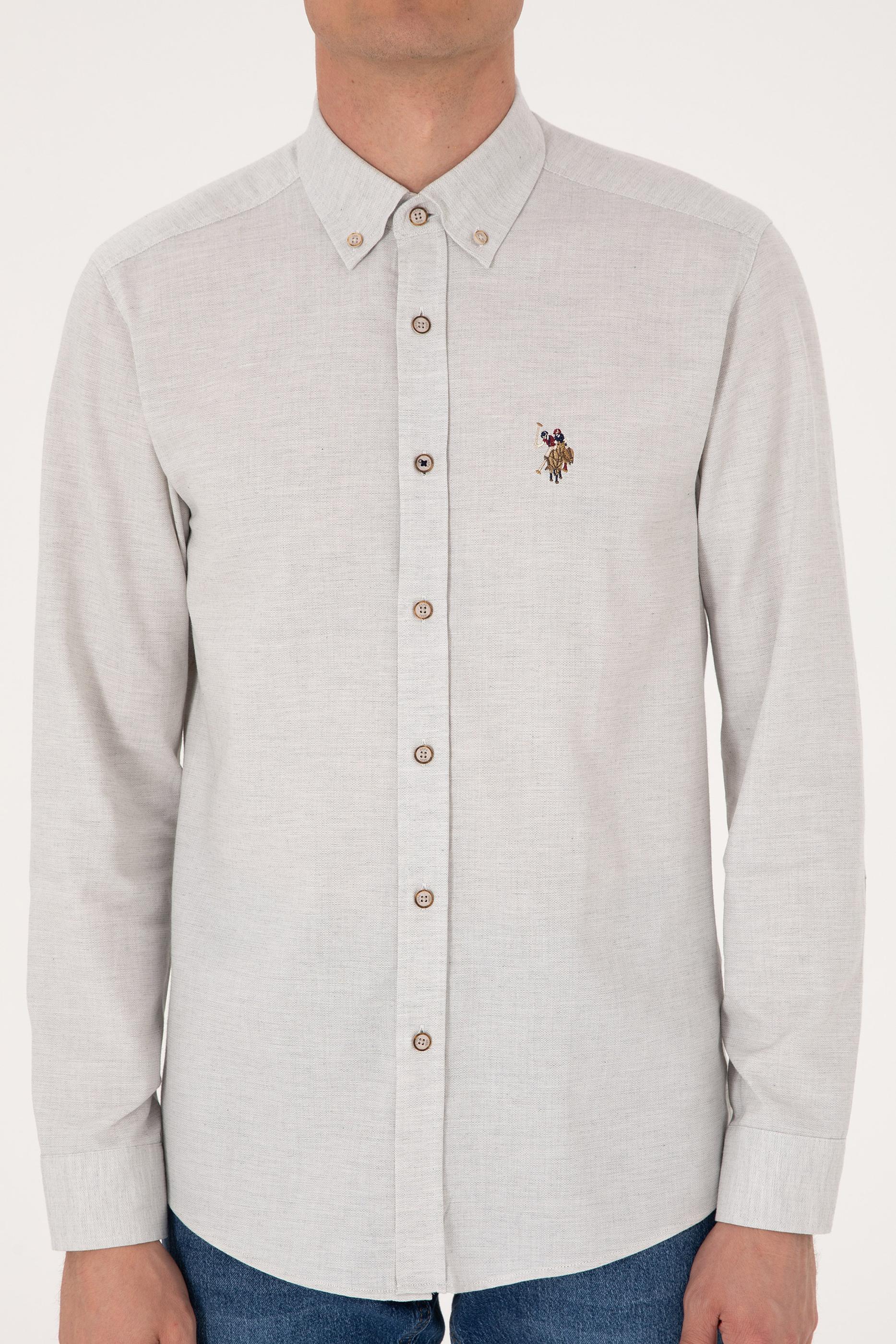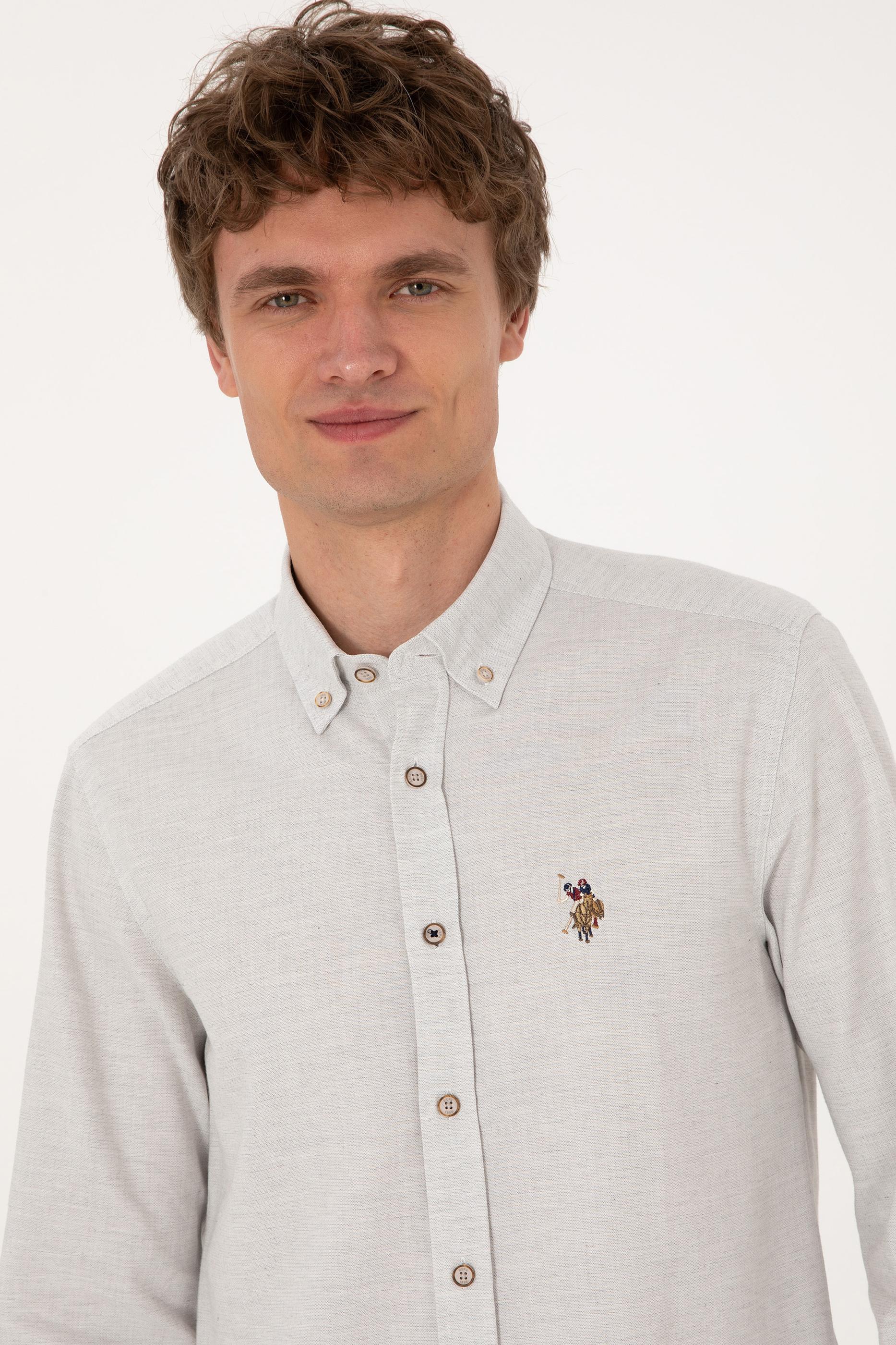 Erkek Ekru Uzun Kollu Basic Gömlek