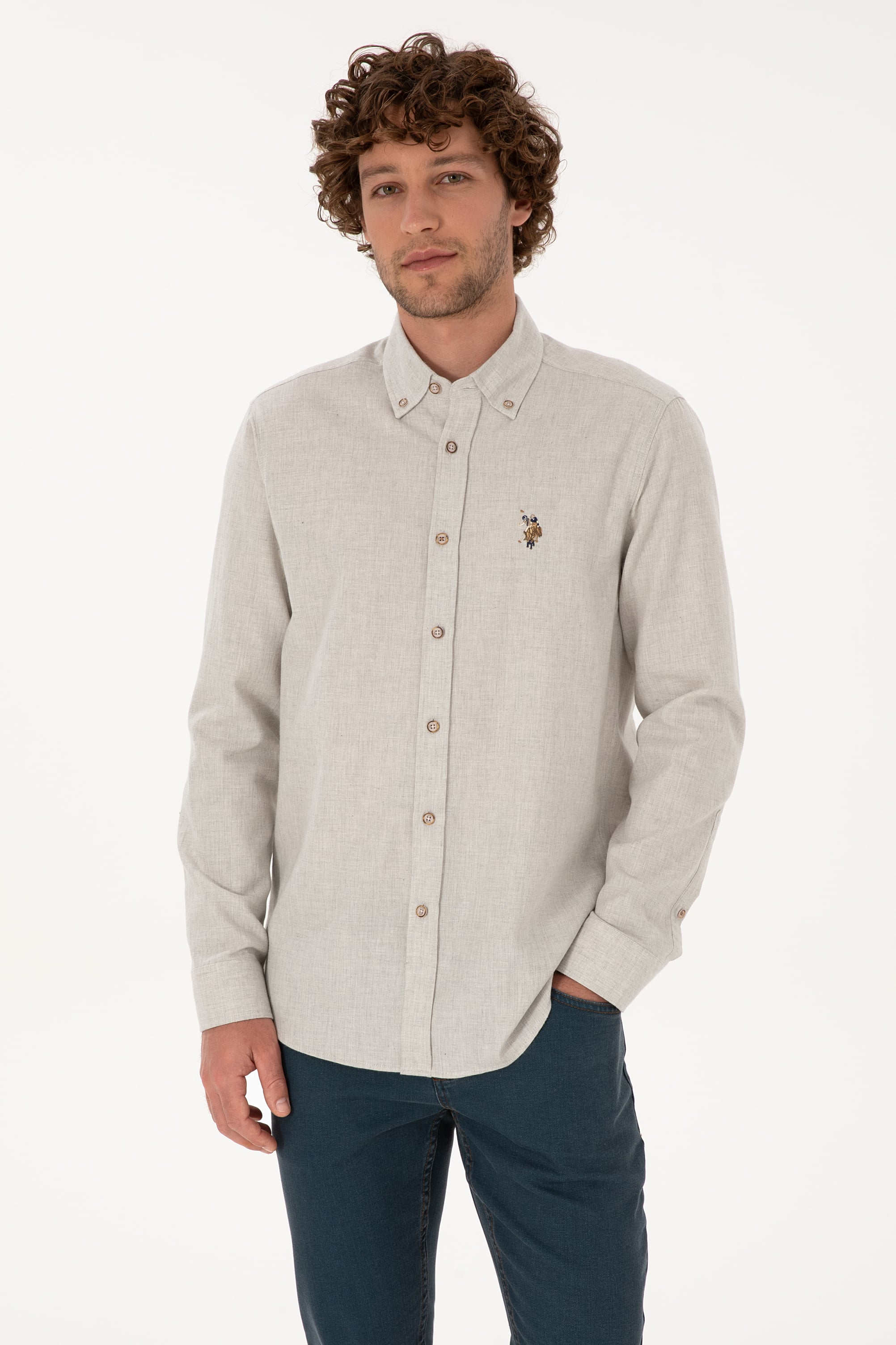 - Erkek Ekru Uzun Kollu Basic Gömlek
