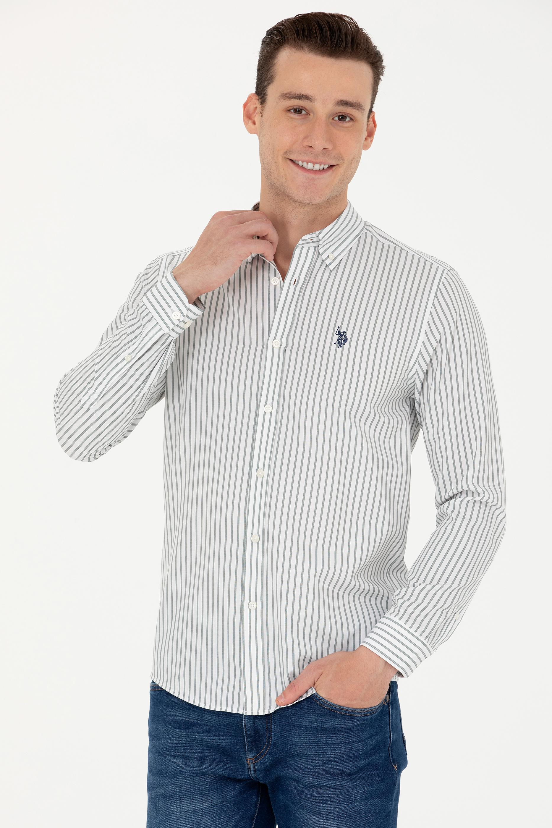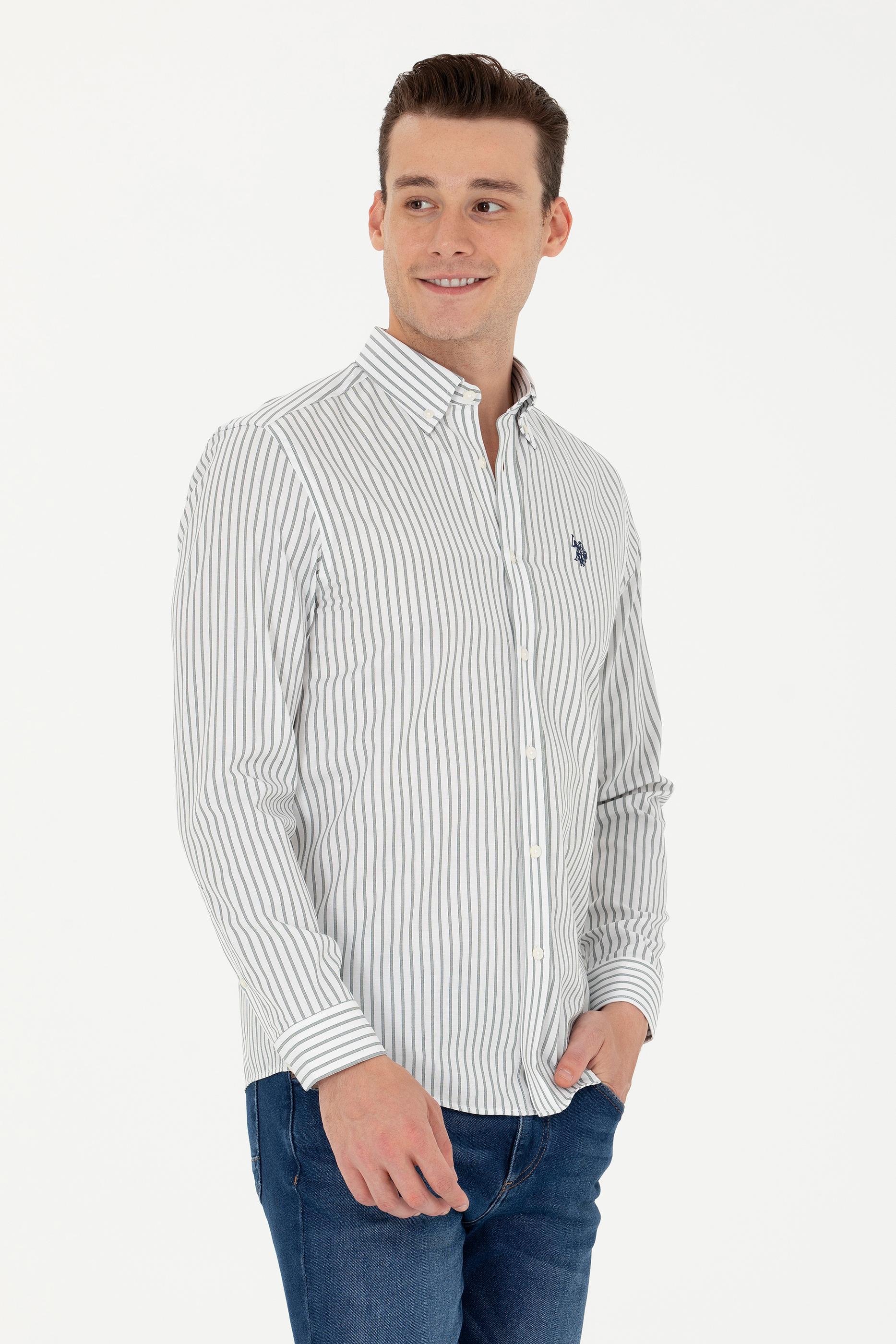 - Erkek Ekru Çizgili Beyaz Gömlek
