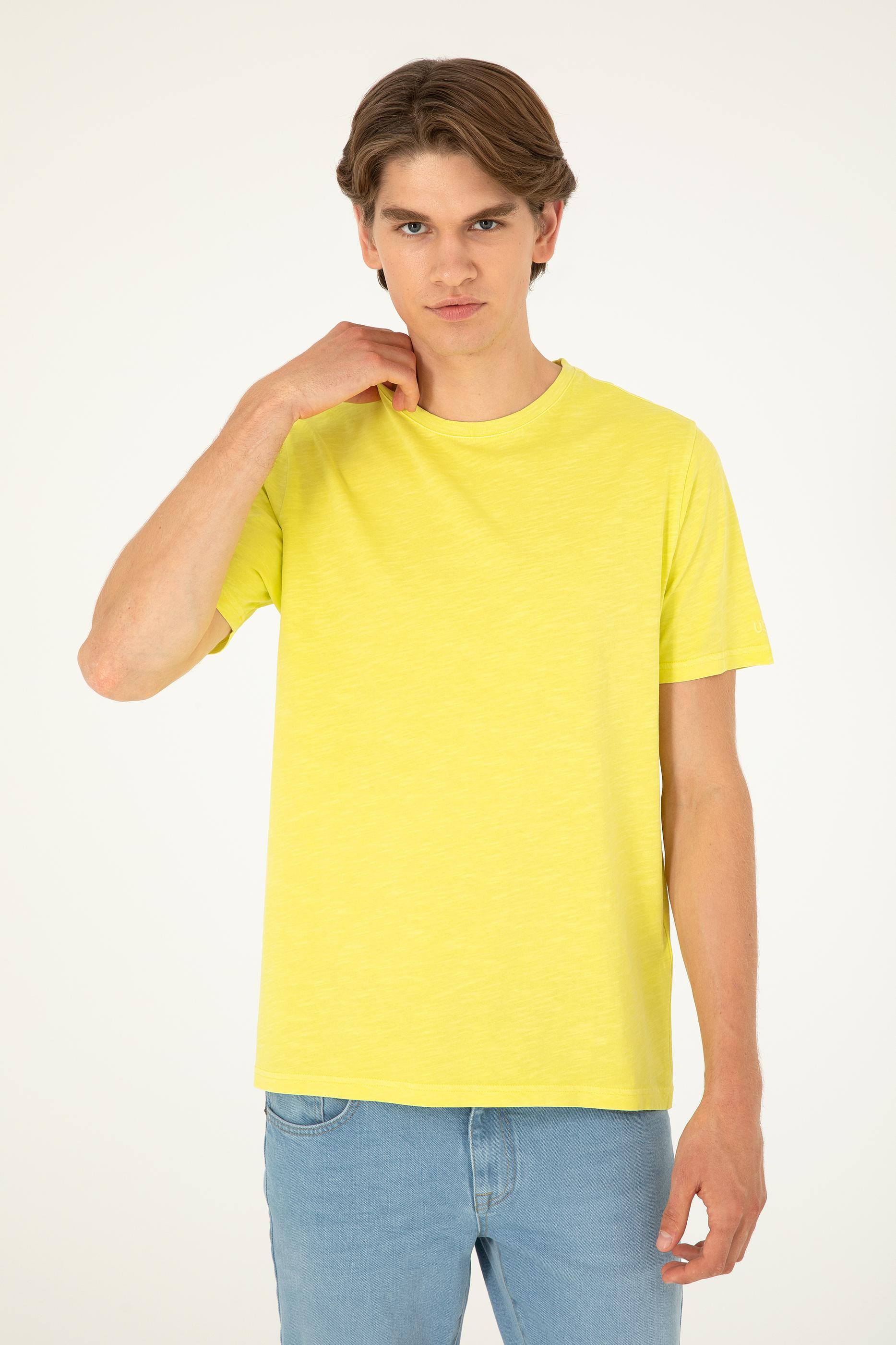 Erkek Regular Fit Bisiklet Yaka Fıstık Yeşili Basic Tişört