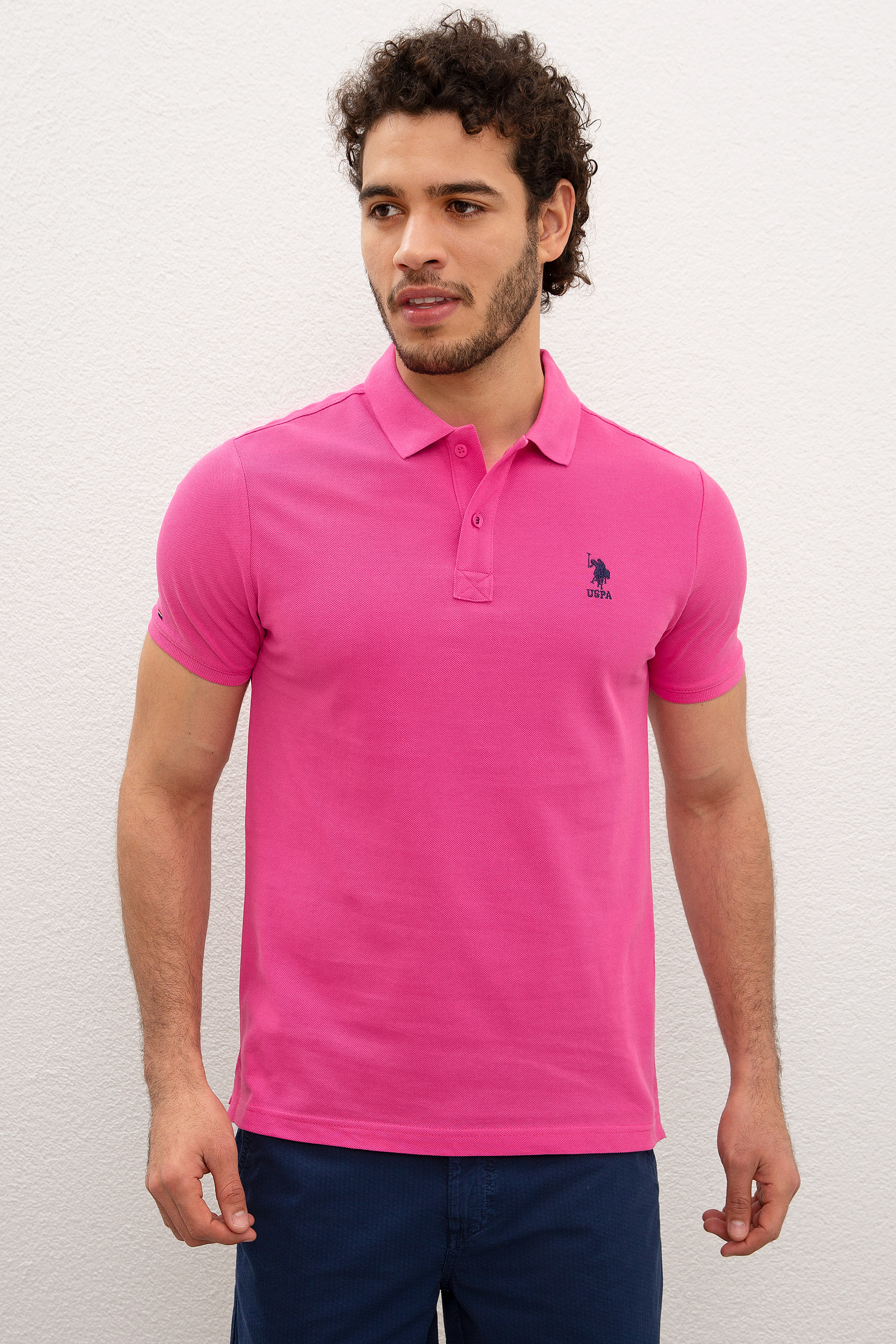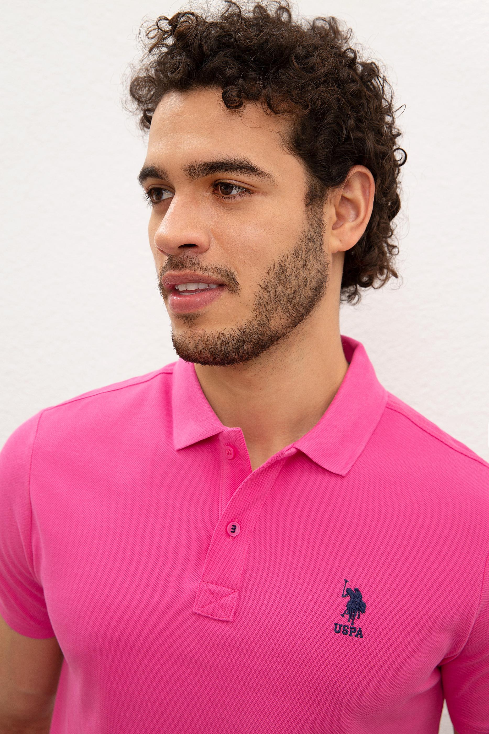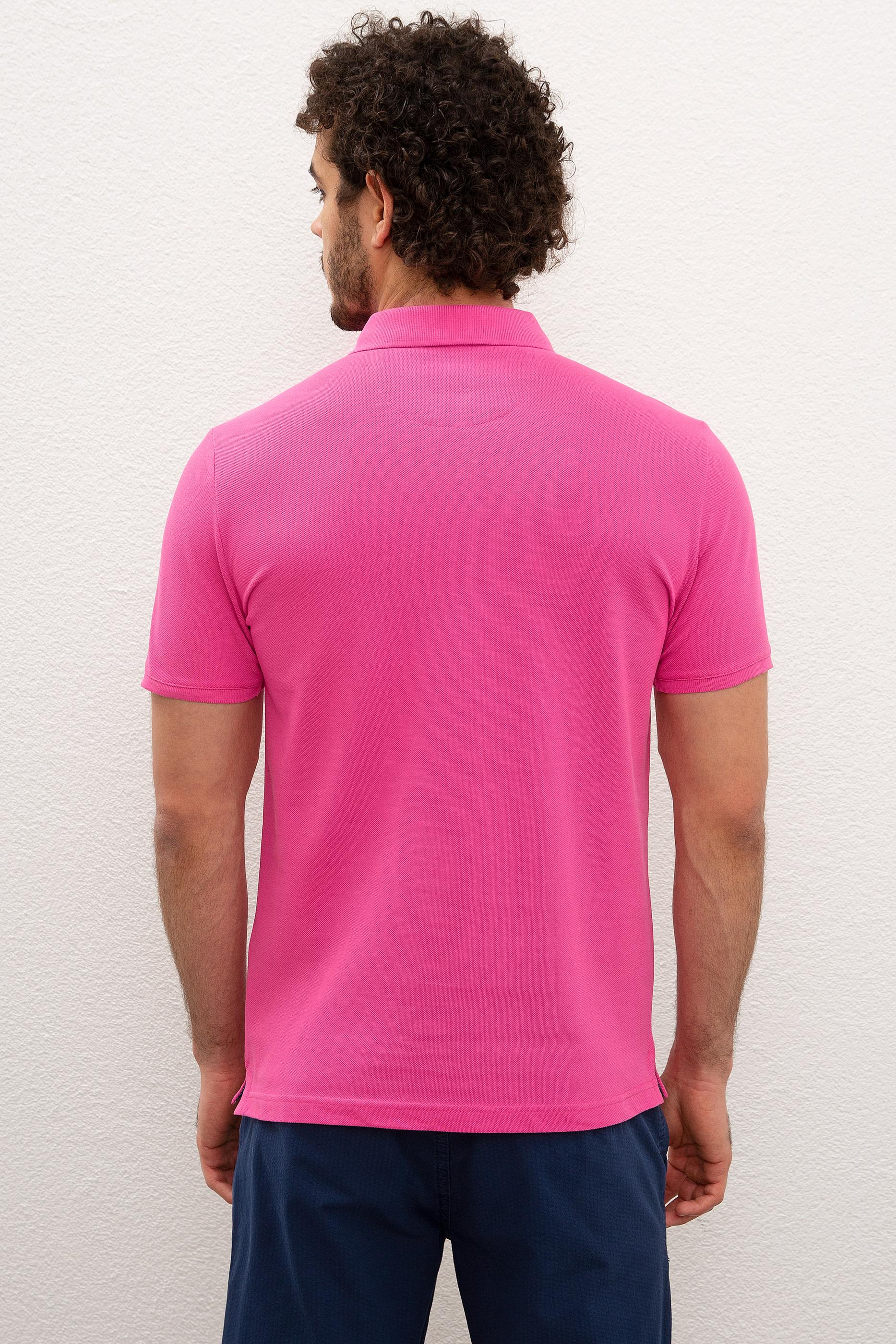 - Erkek Fuşya Polo Yaka T-Shirt Basic