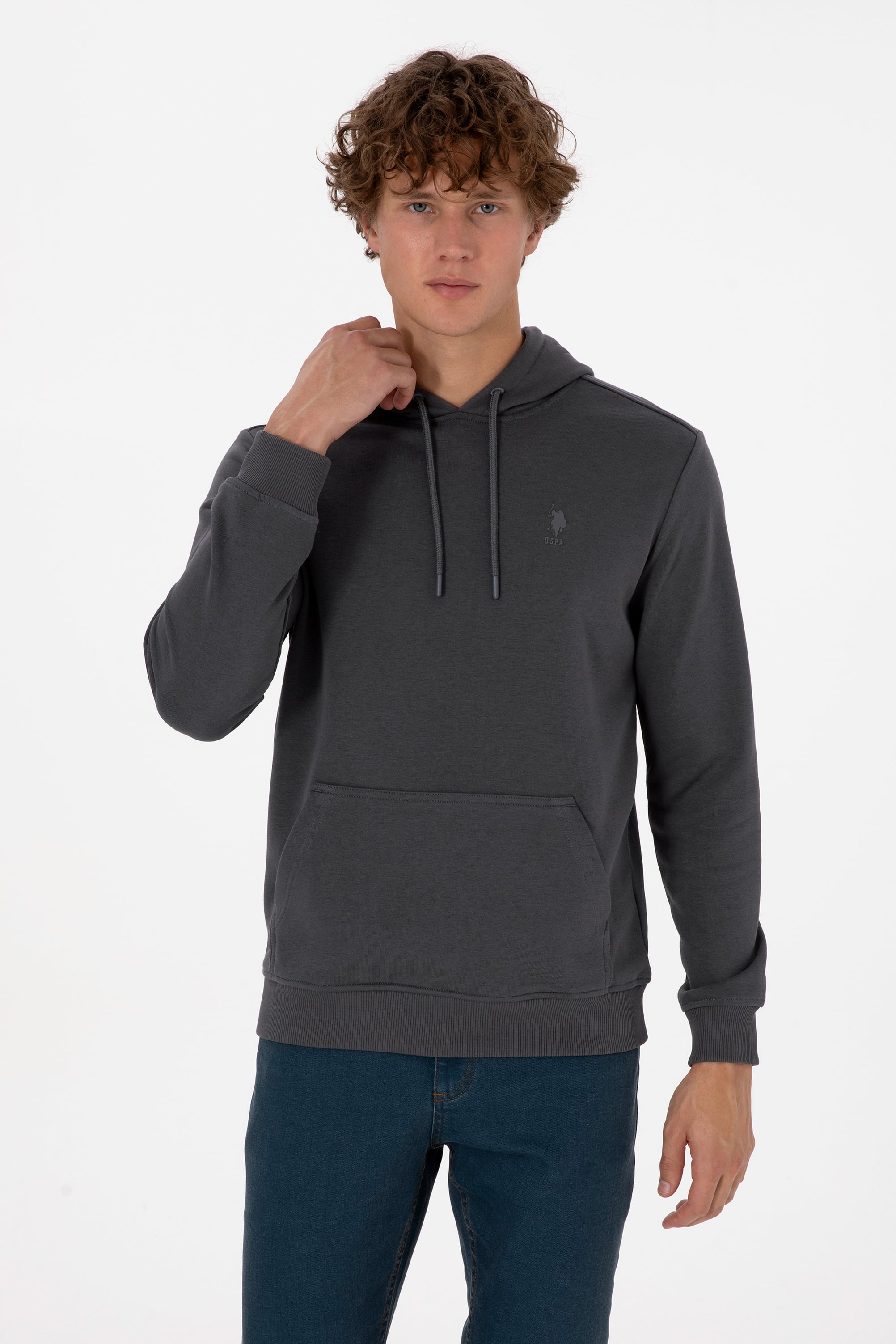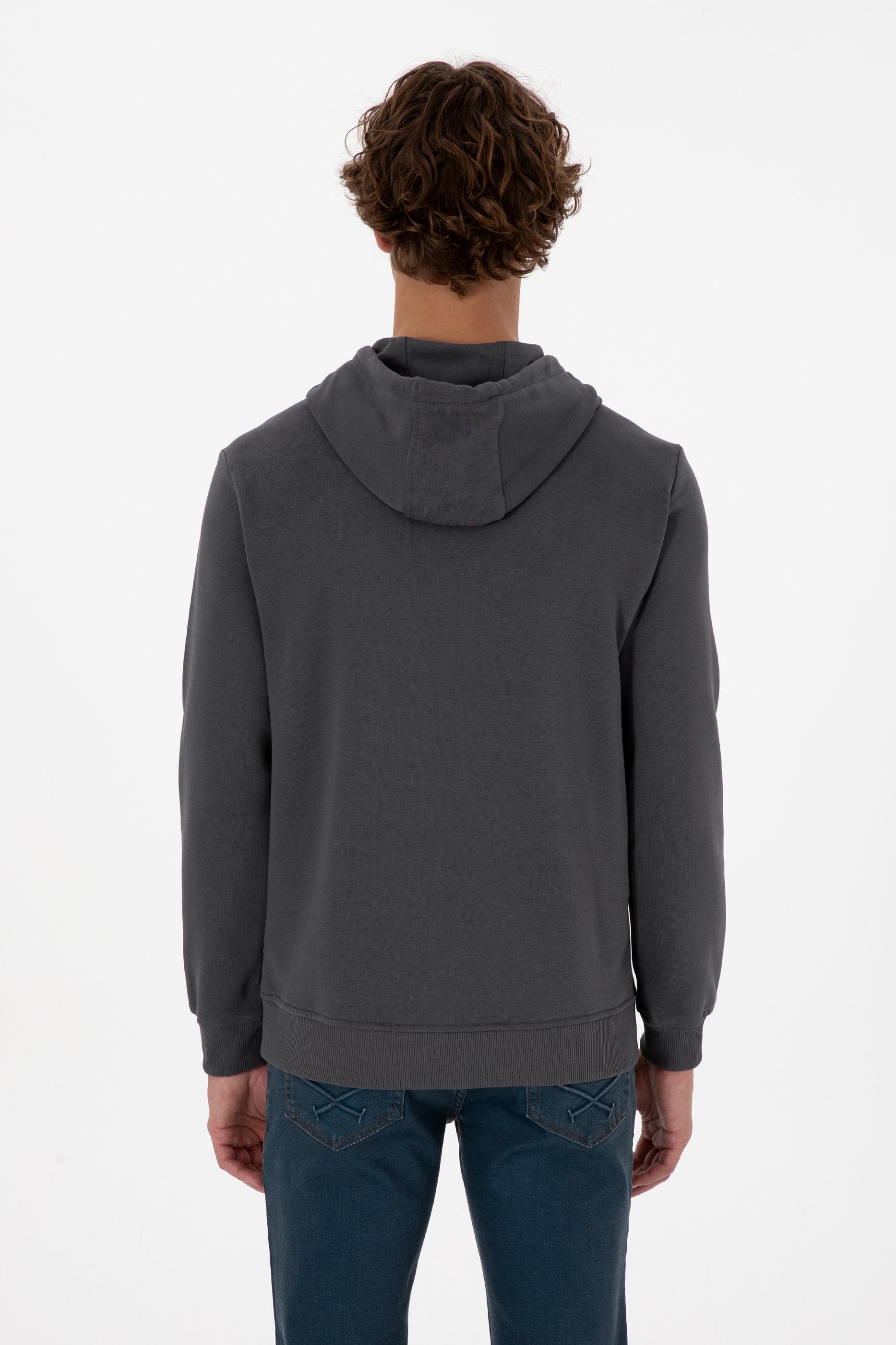 - Erkek Regular Fit Kapüşonlu Grı Basic Sweatshirt