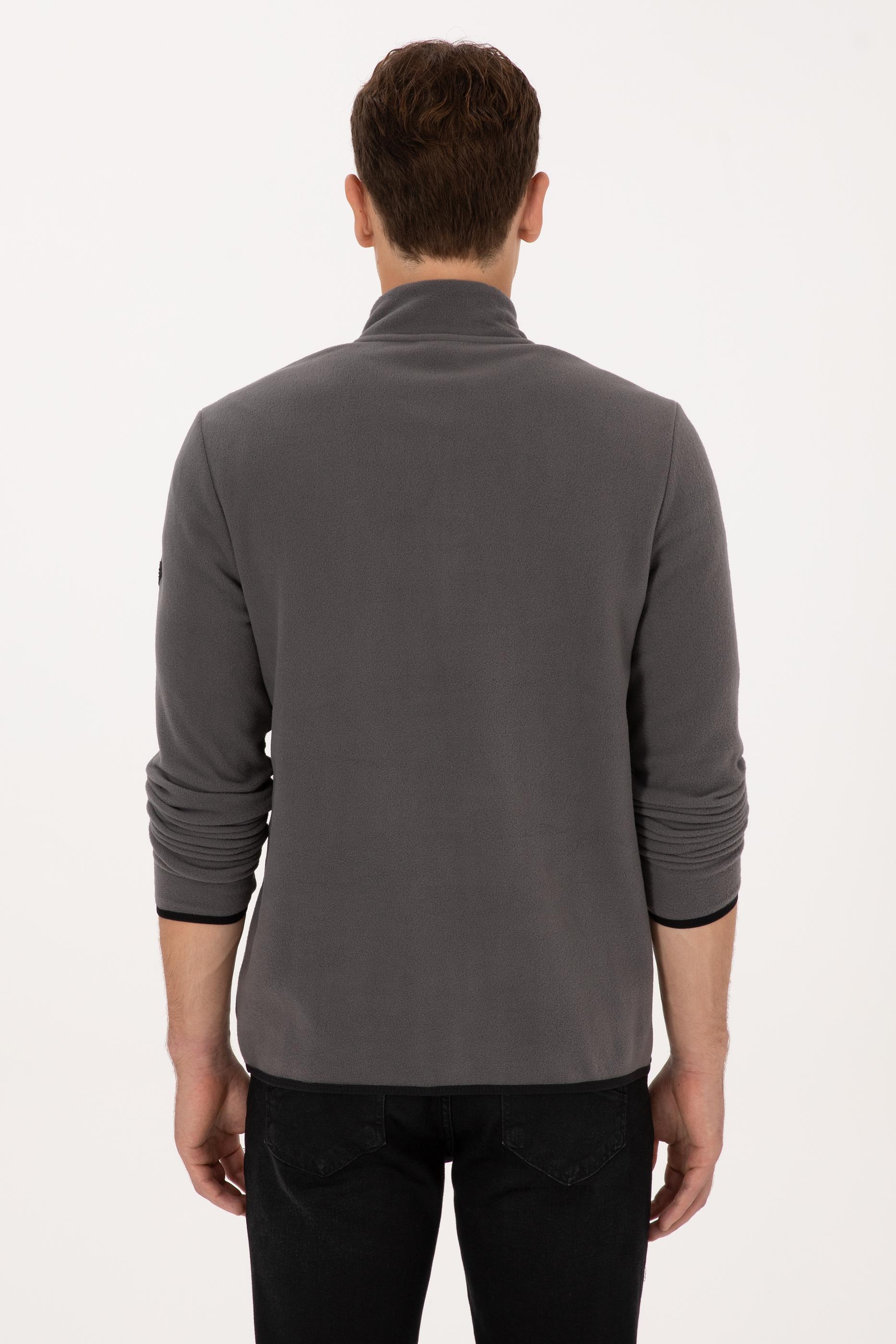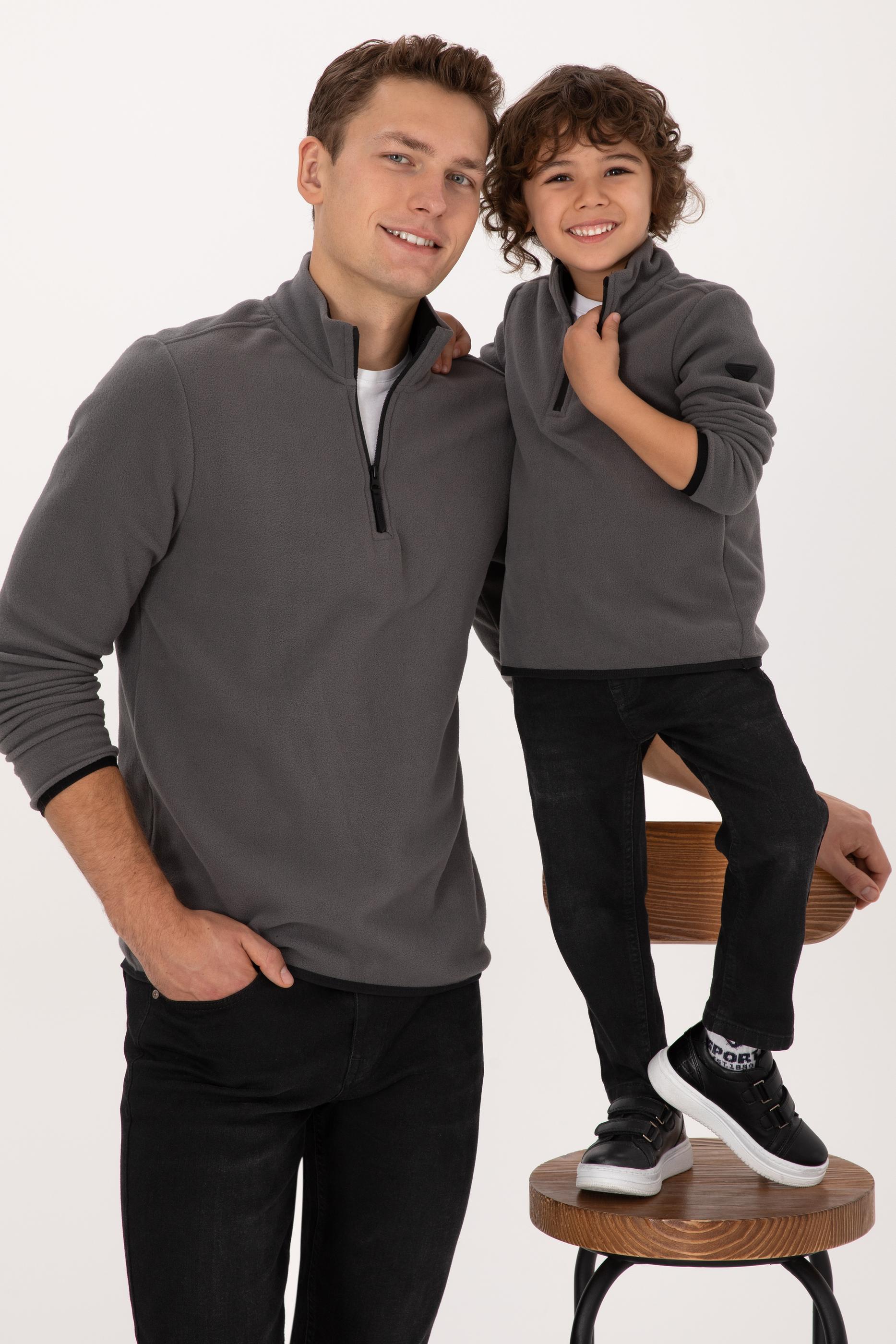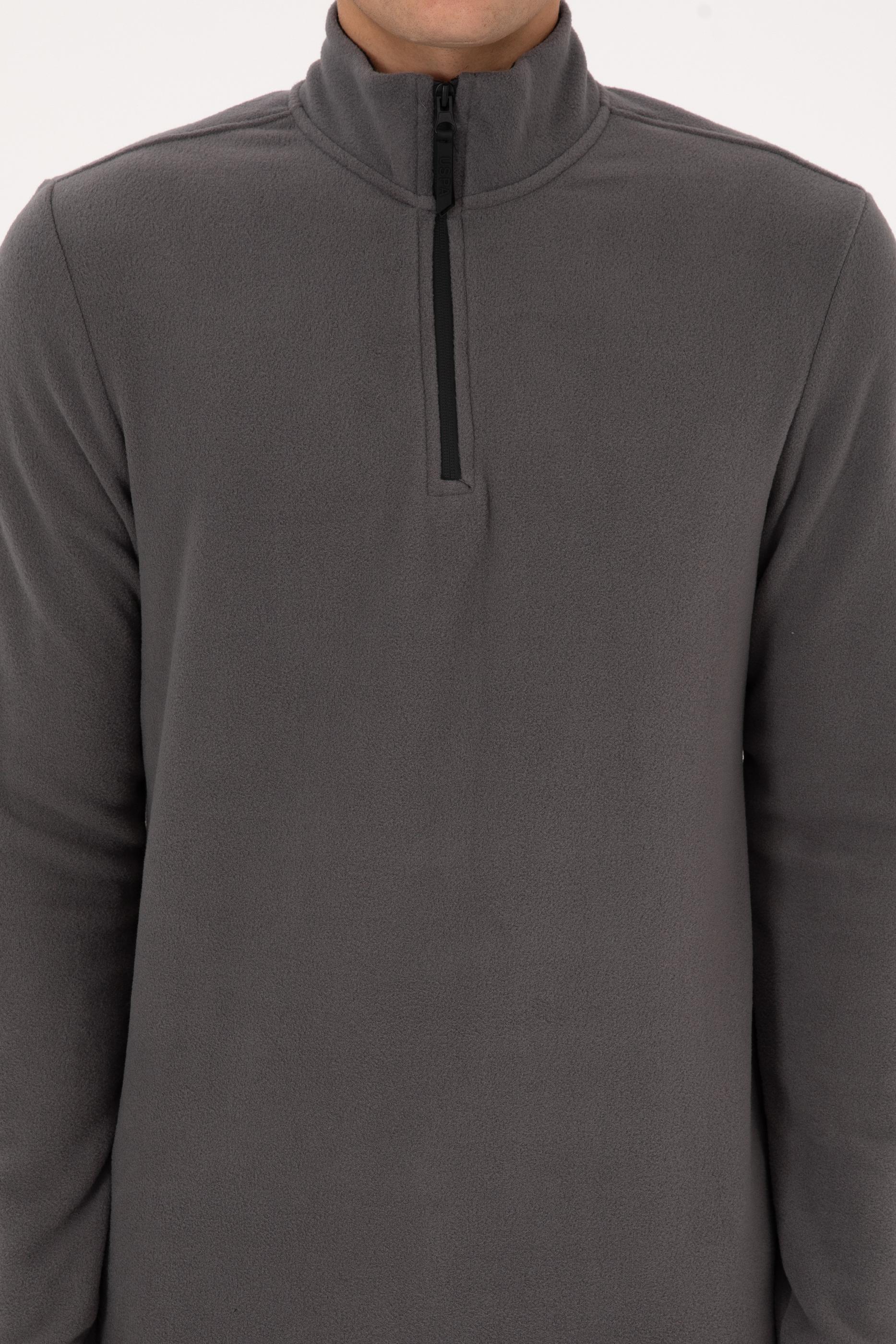 - Erkek Regular Fit Gri Polar Yarım Fermuarlı Basic Sweatshirt