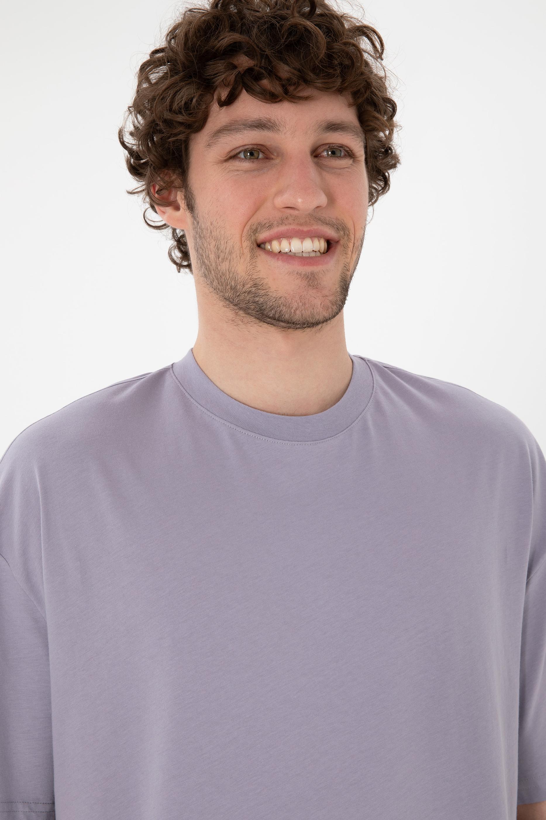 Erkek Long Fit Bisiklet Yaka Gri Basic Tişört