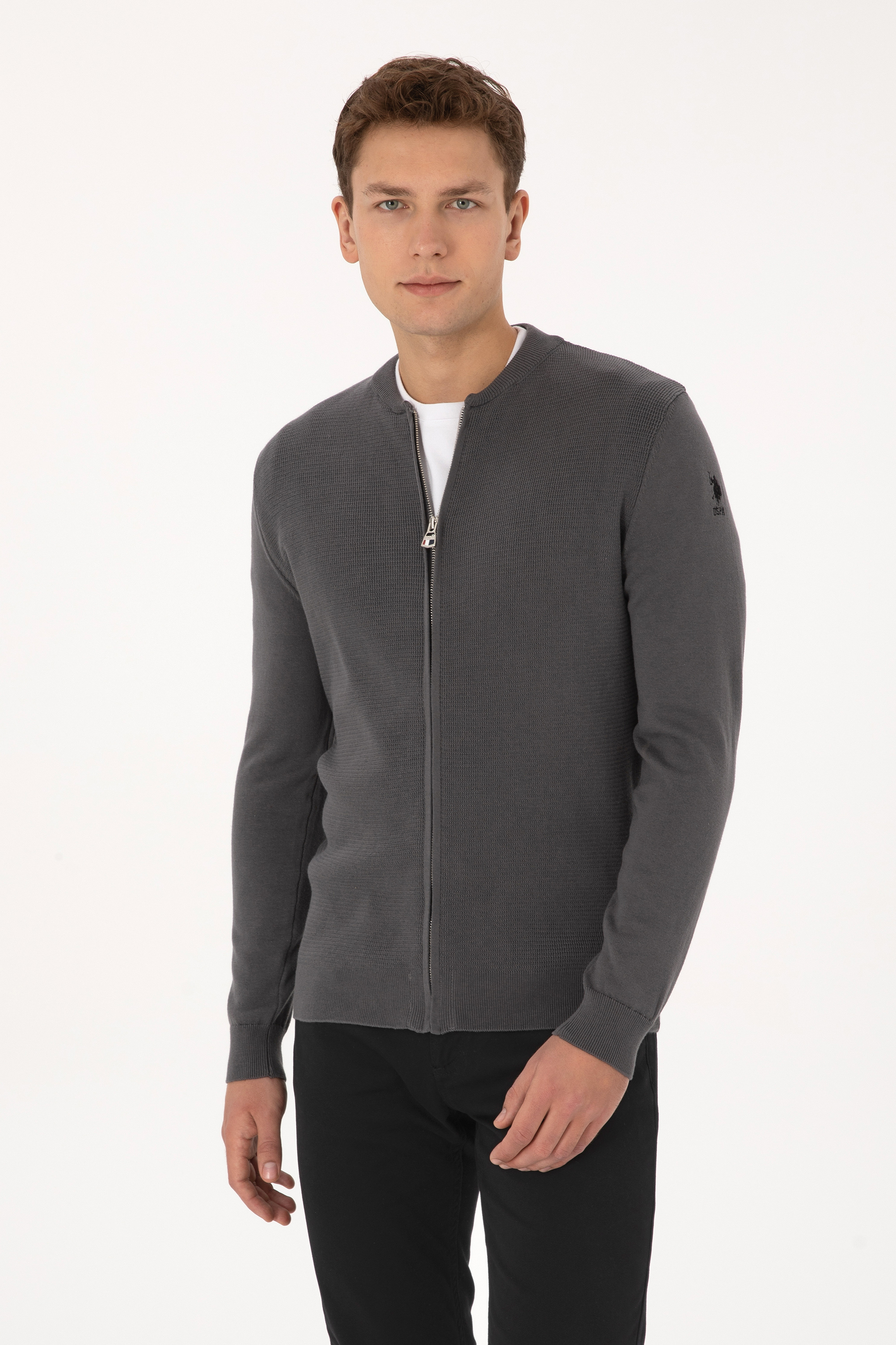 Erkek Gri Basic Triko Hırka - 50307813040