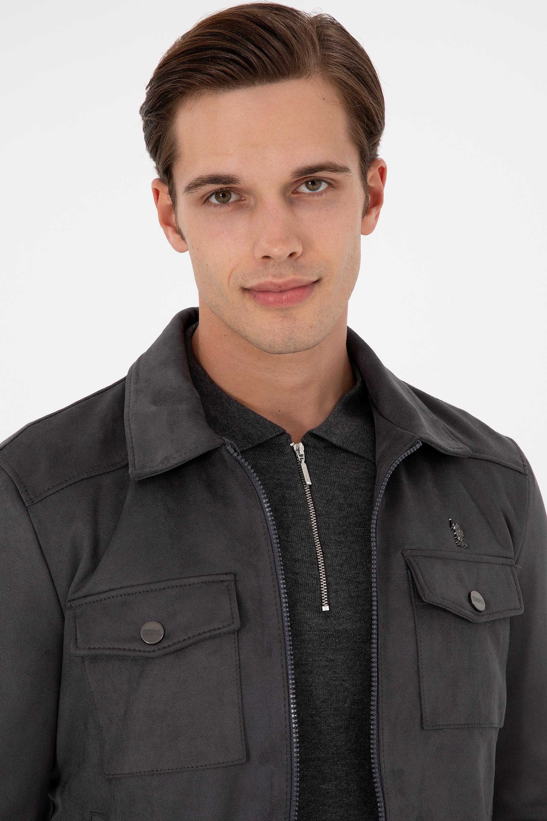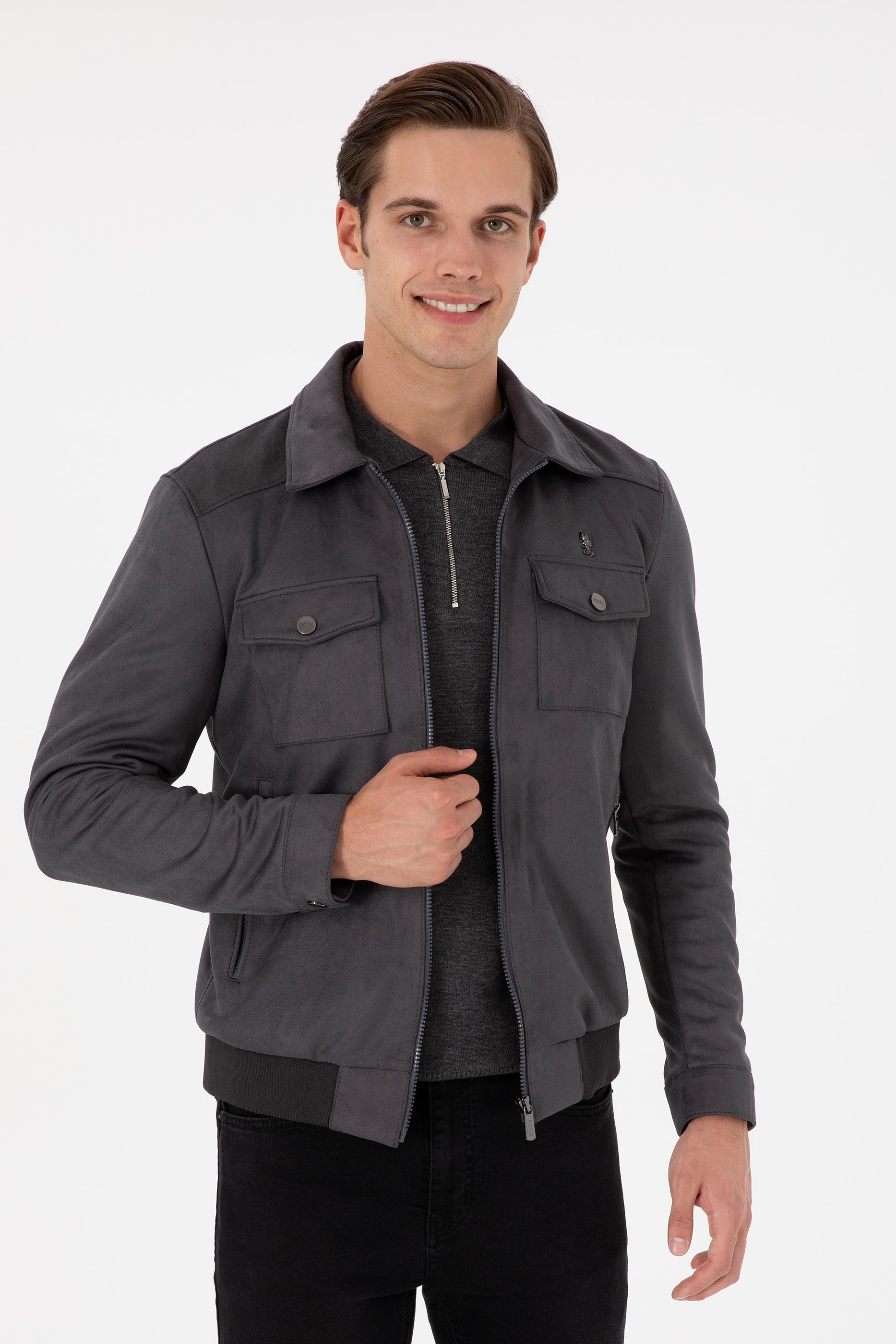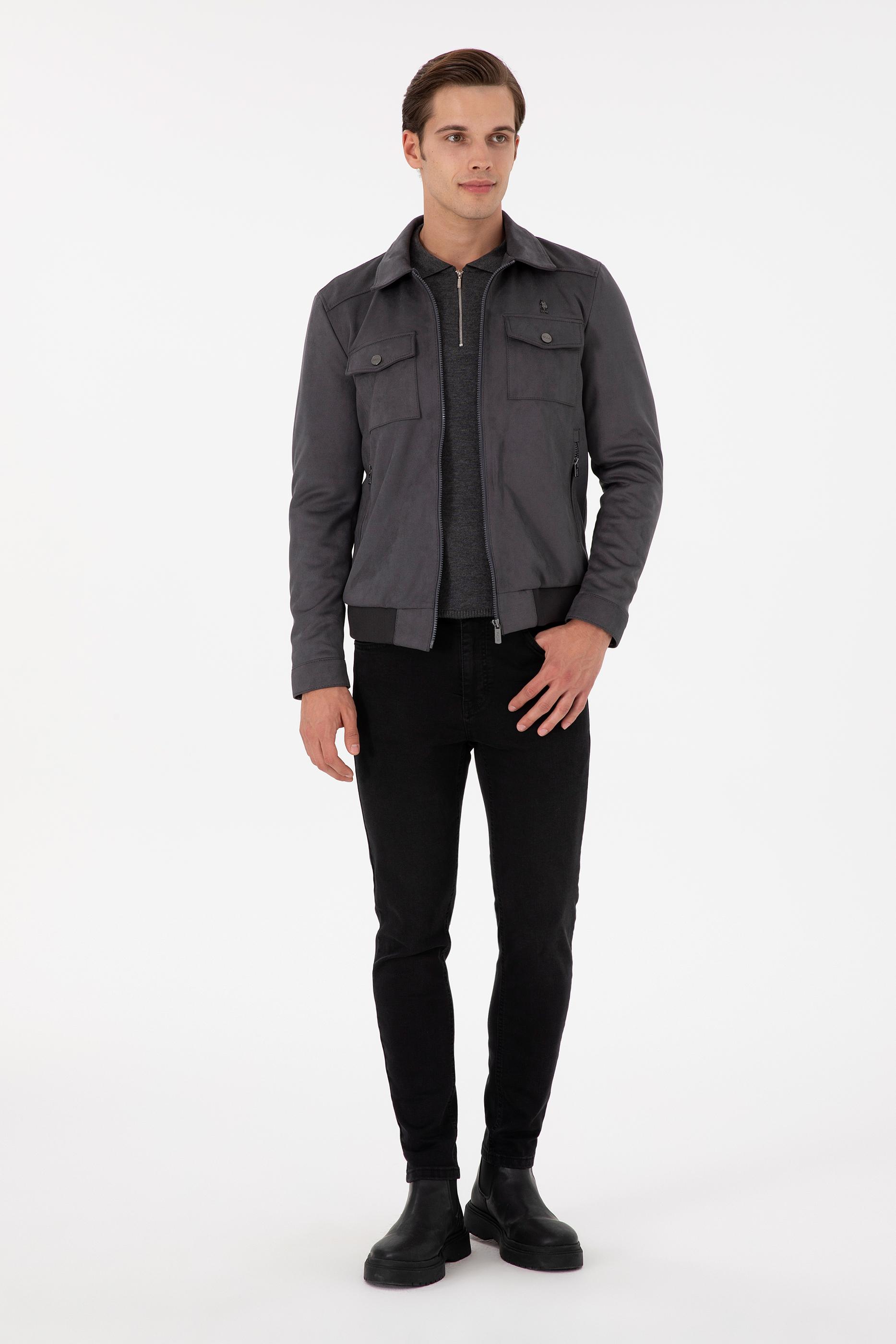 Erkek Gri Deri Ceket