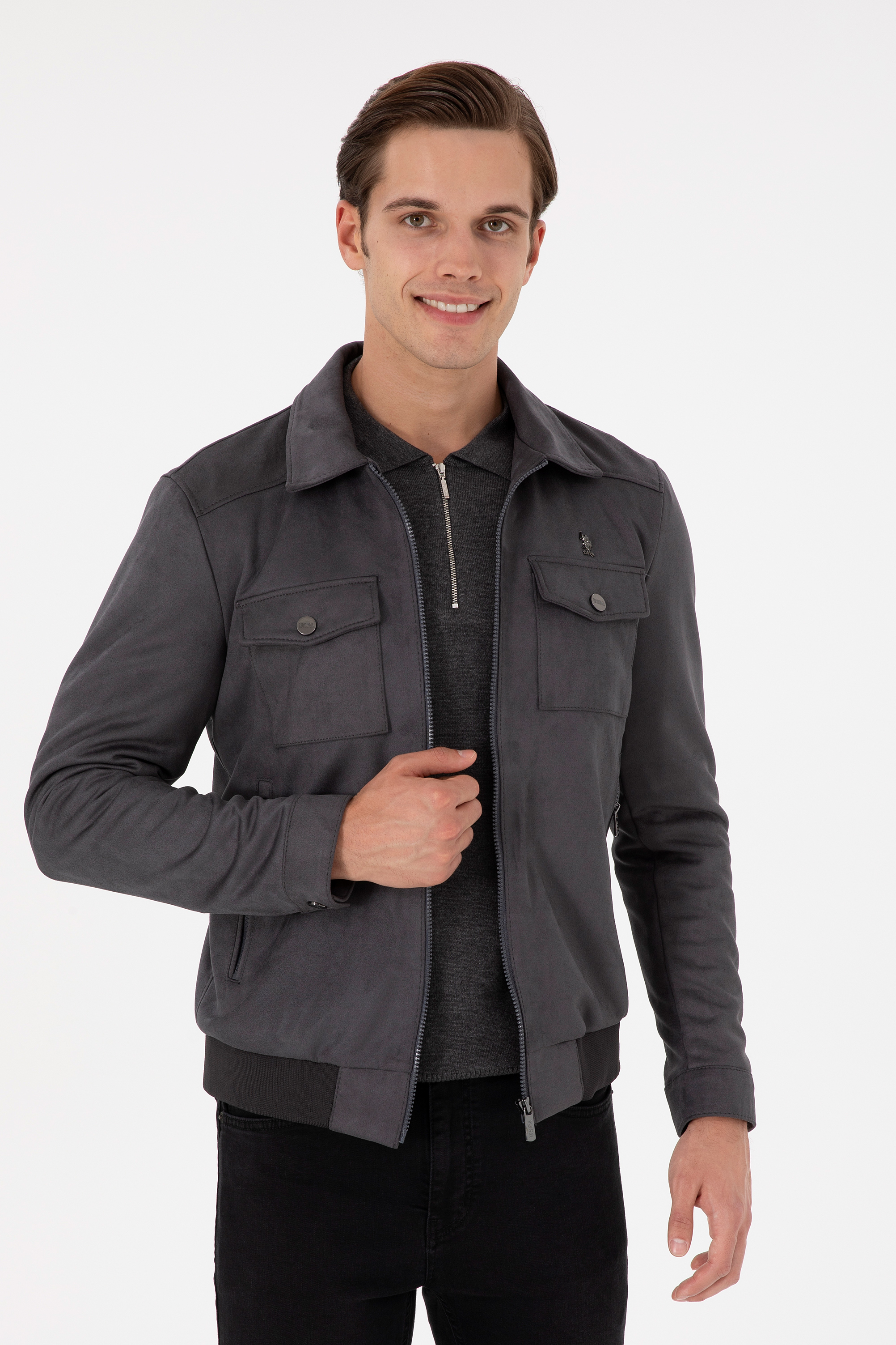 - Erkek Gri Deri Ceket