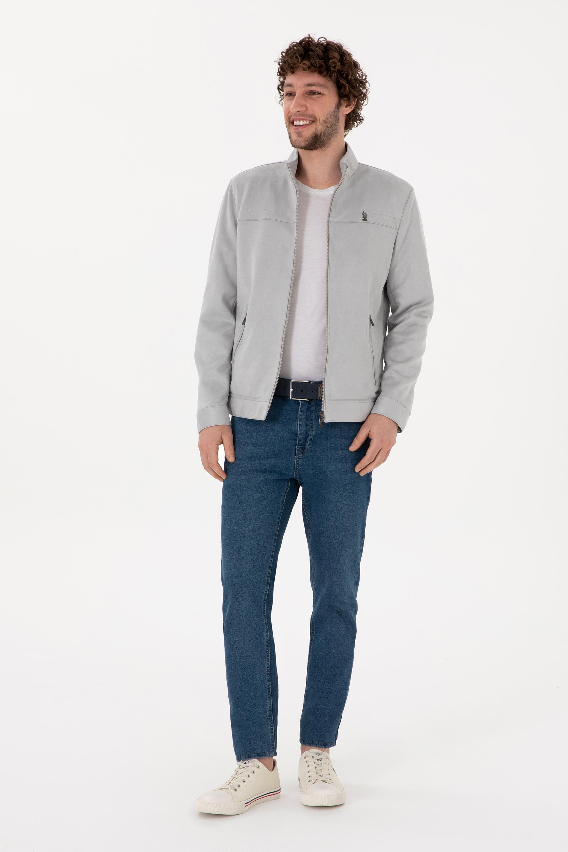 Erkek Gri Deri Ceket