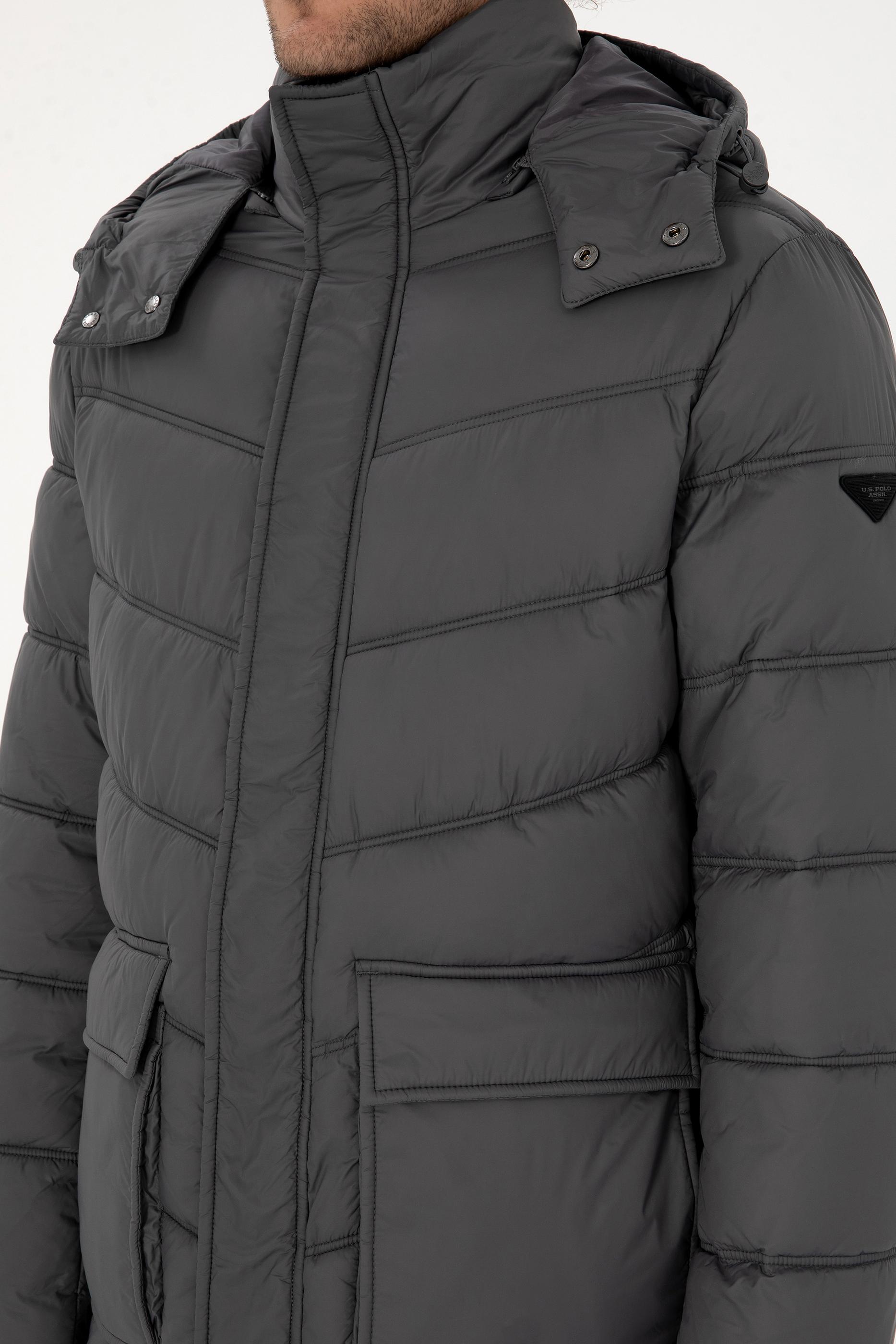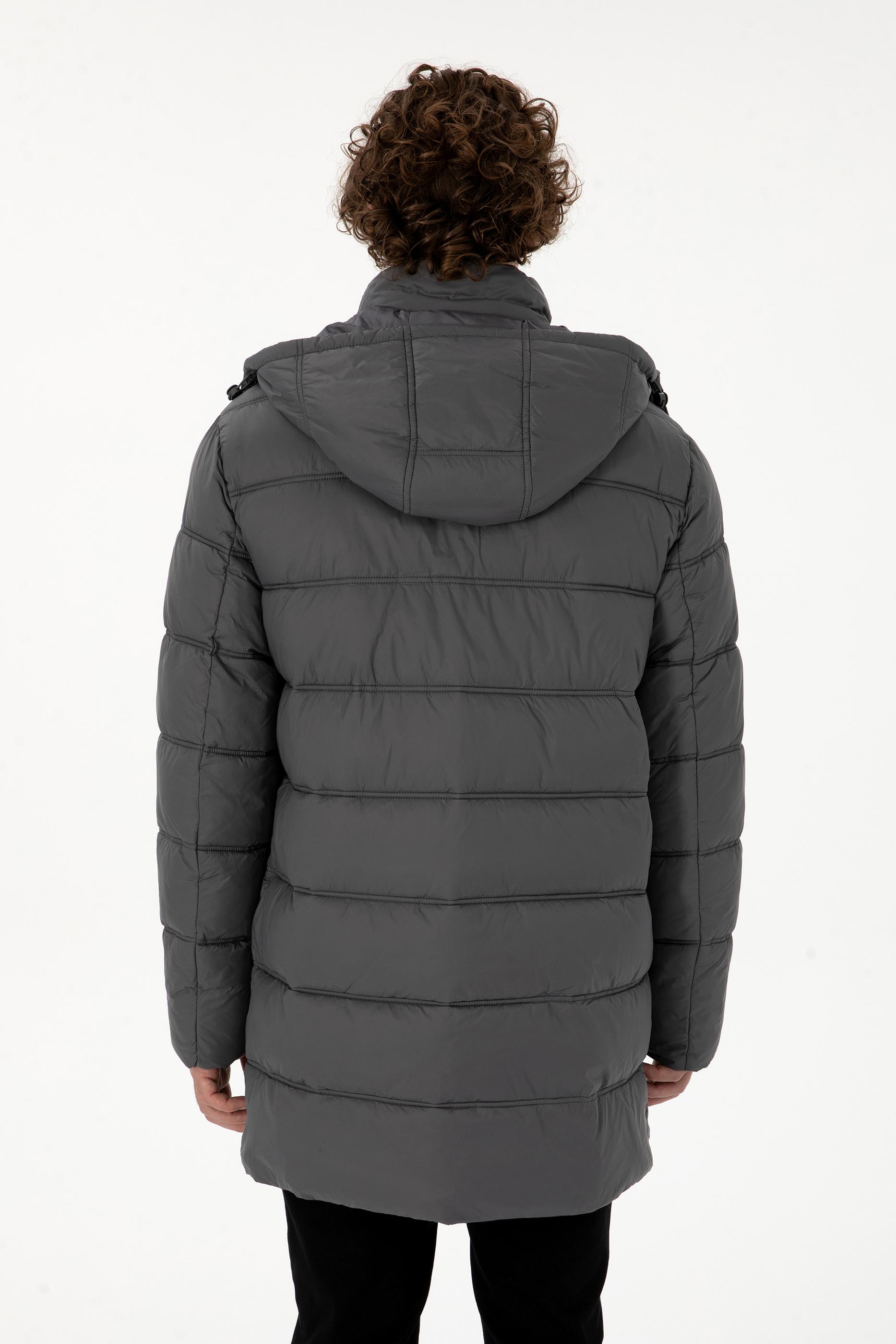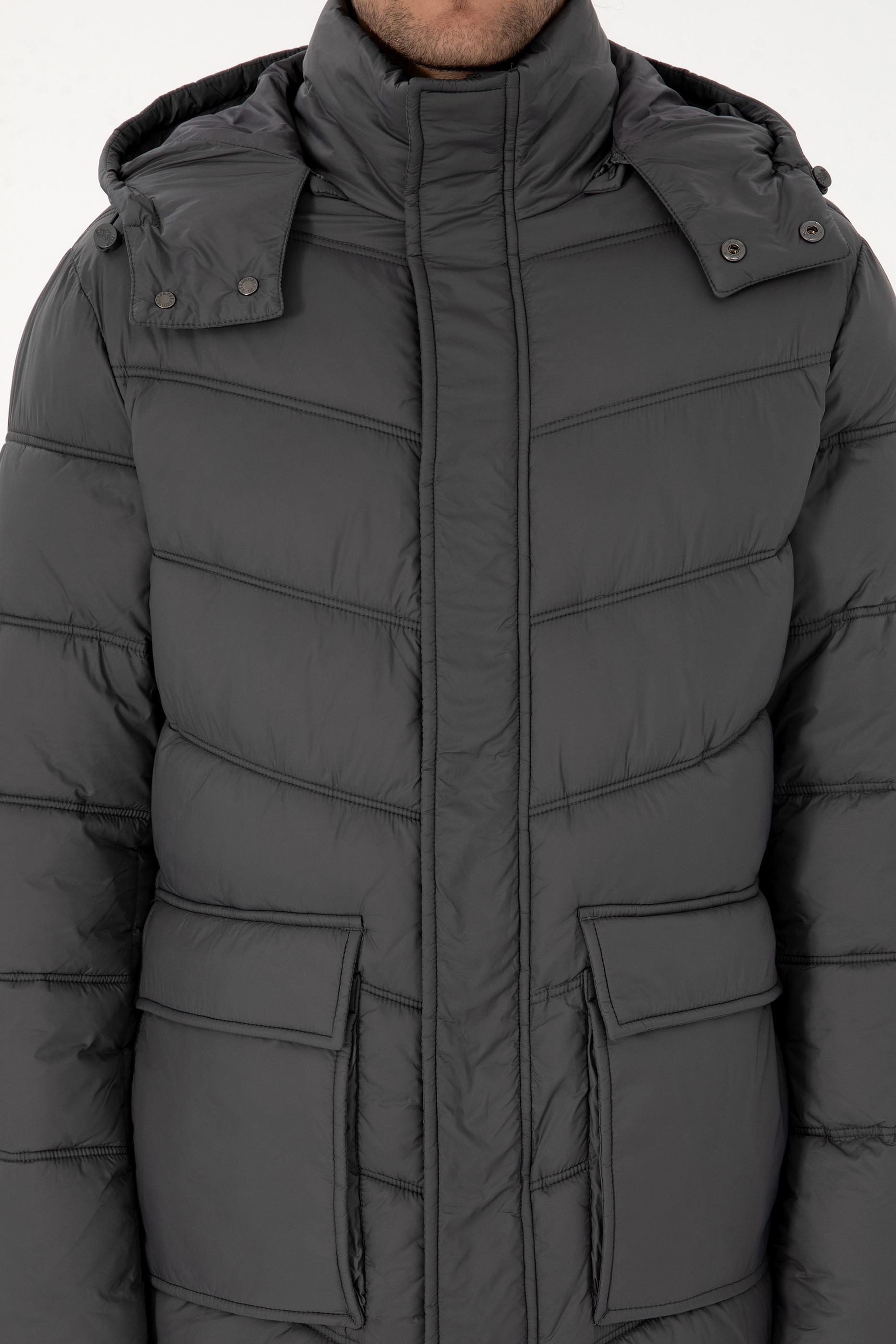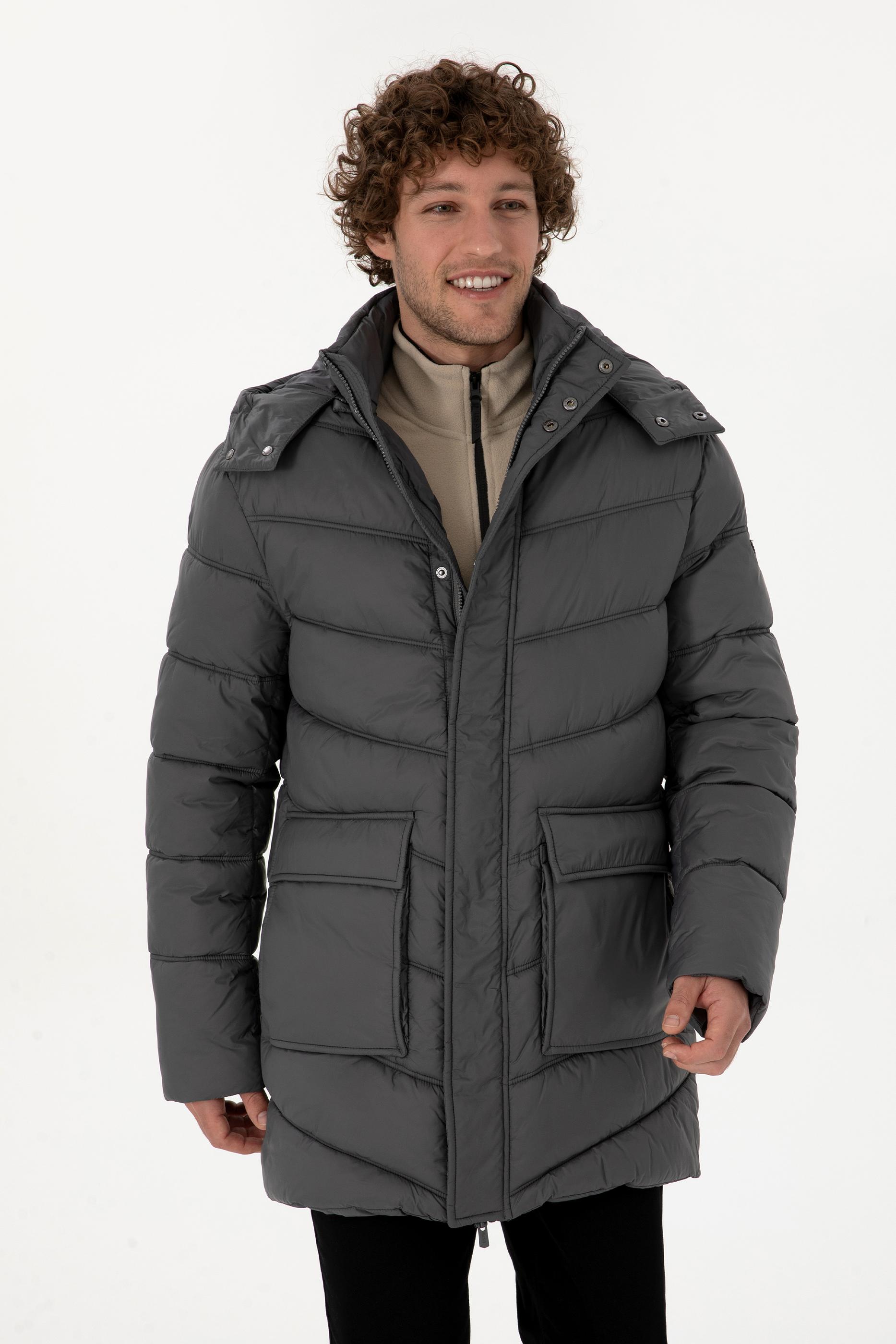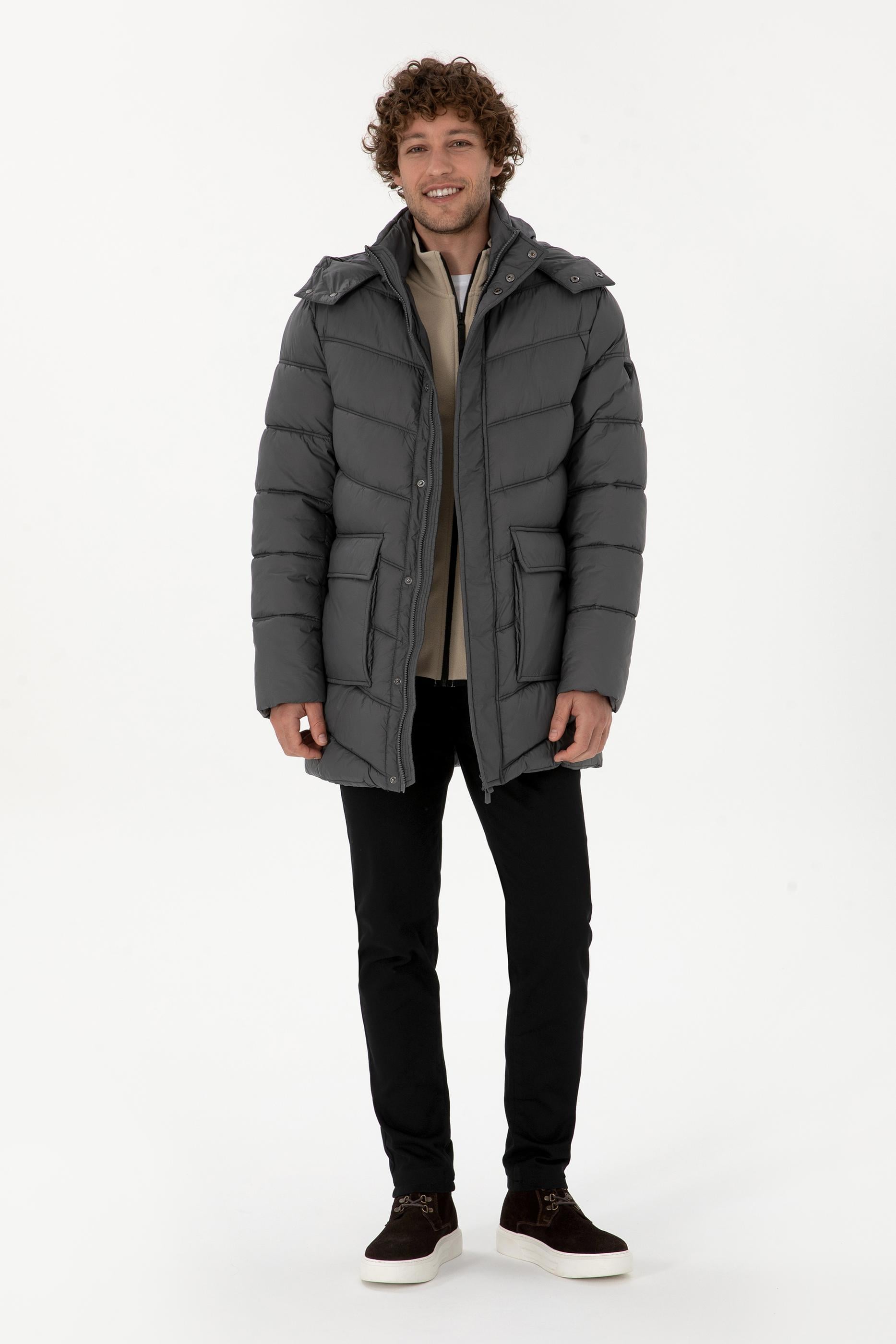 Erkek kaban, gri rengi ve regular kalıbıyla hem klasik hem de modern bir görünüm sunar. Diz hizasına kadar uzanan uzun boyu sayesinde kısa montlara göre daha fazla koruma sağlar ve soğuk havalarda ekstra sıcaklık verir. Uzun kollu tasarımı kolları tam olarak kapatırken, dolgulu yapısı vücut ısısını korur ve gün boyu konfor sağlar. Regular kalıbı vücudu sıkmadan, rahat bir şekilde sararak hareket özgürlüğü sunar. Kapüşon detayı yağmurlu ve rüzgârlı havalarda ekstra koruma sağlarken, şık tasarımıyla farklı kombinlere de uyum gösterir. Ön kısmında yer alan fermuar ve düğmeli kapama sistemi soğuk havayı engelleyerek ek koruma oluşturur. Geniş cepleri hem elleri ısıtır hem de günlük eşyaları taşıma kolaylığı sağlar. Günlük yaşamdan iş hayatına kadar pek çok alanda kullanılabilecek fonksiyonel ve şık bir parçadır.