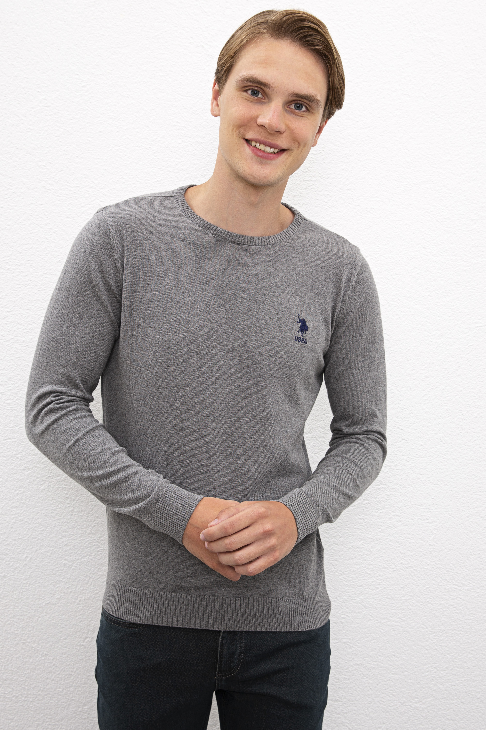 Erkek Gri Melanj Basic Kazak