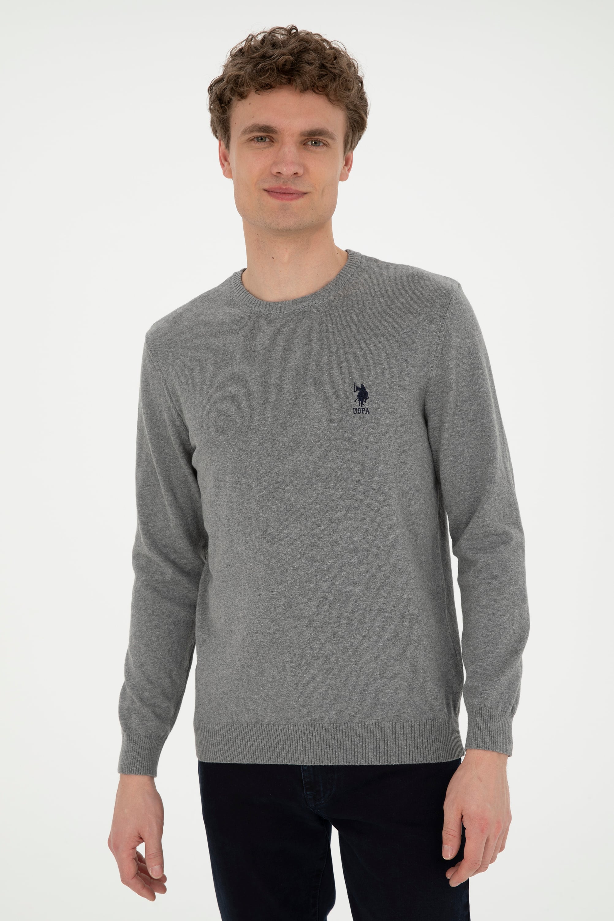 - Erkek Gri Melanj Bisiklet Yaka Kazak
