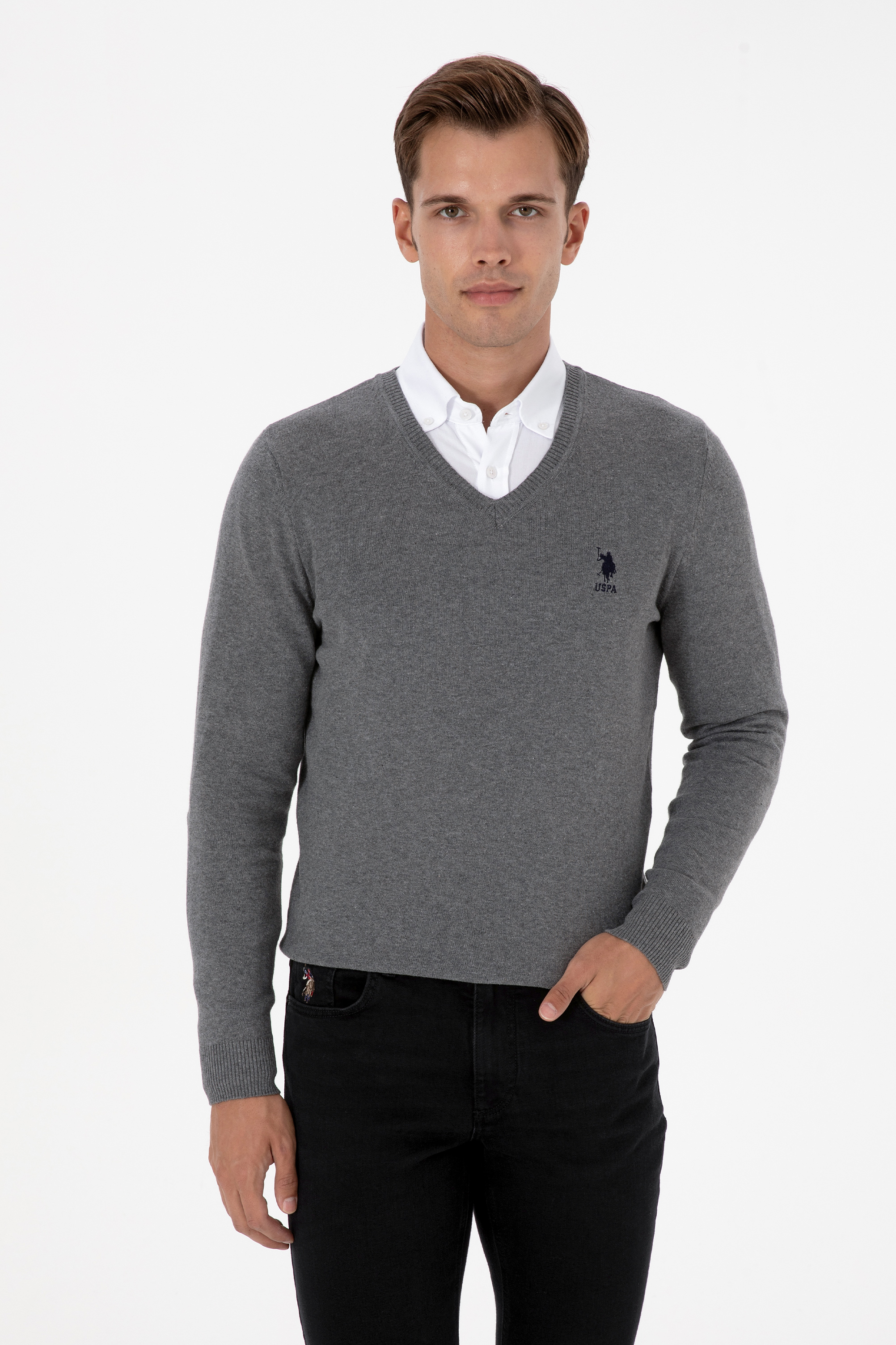 Erkek Gri Melanj Basic Kazak