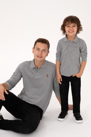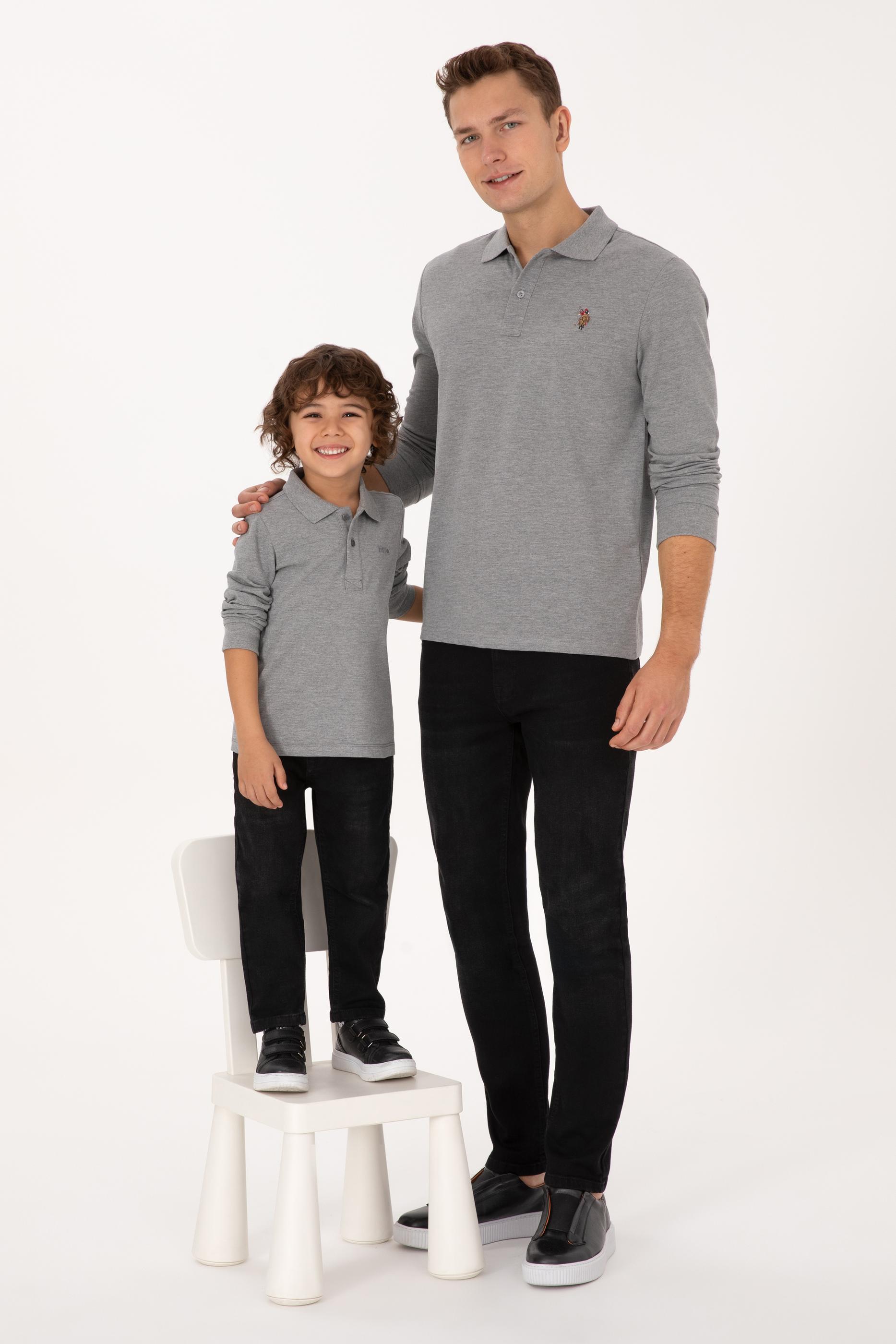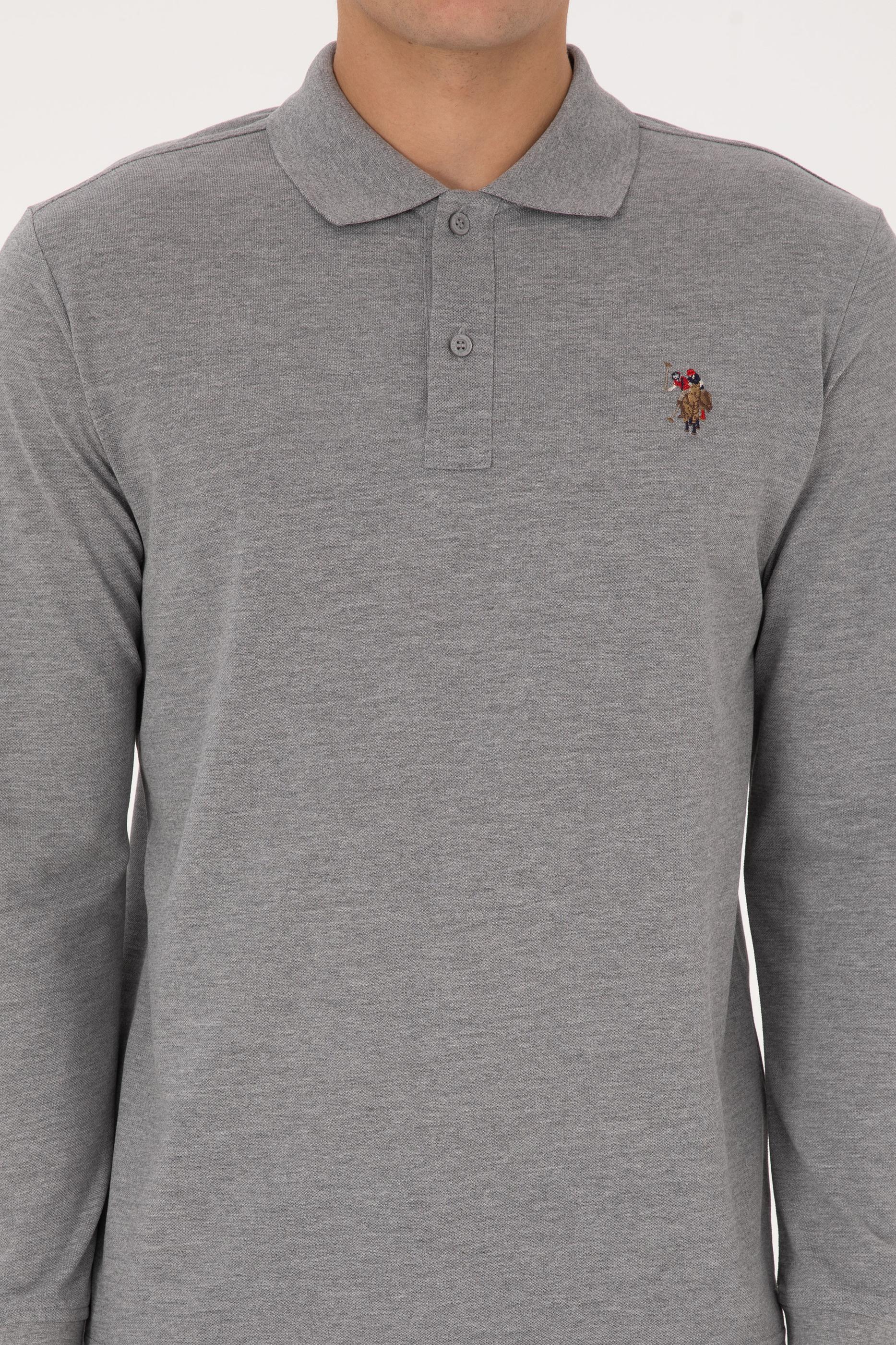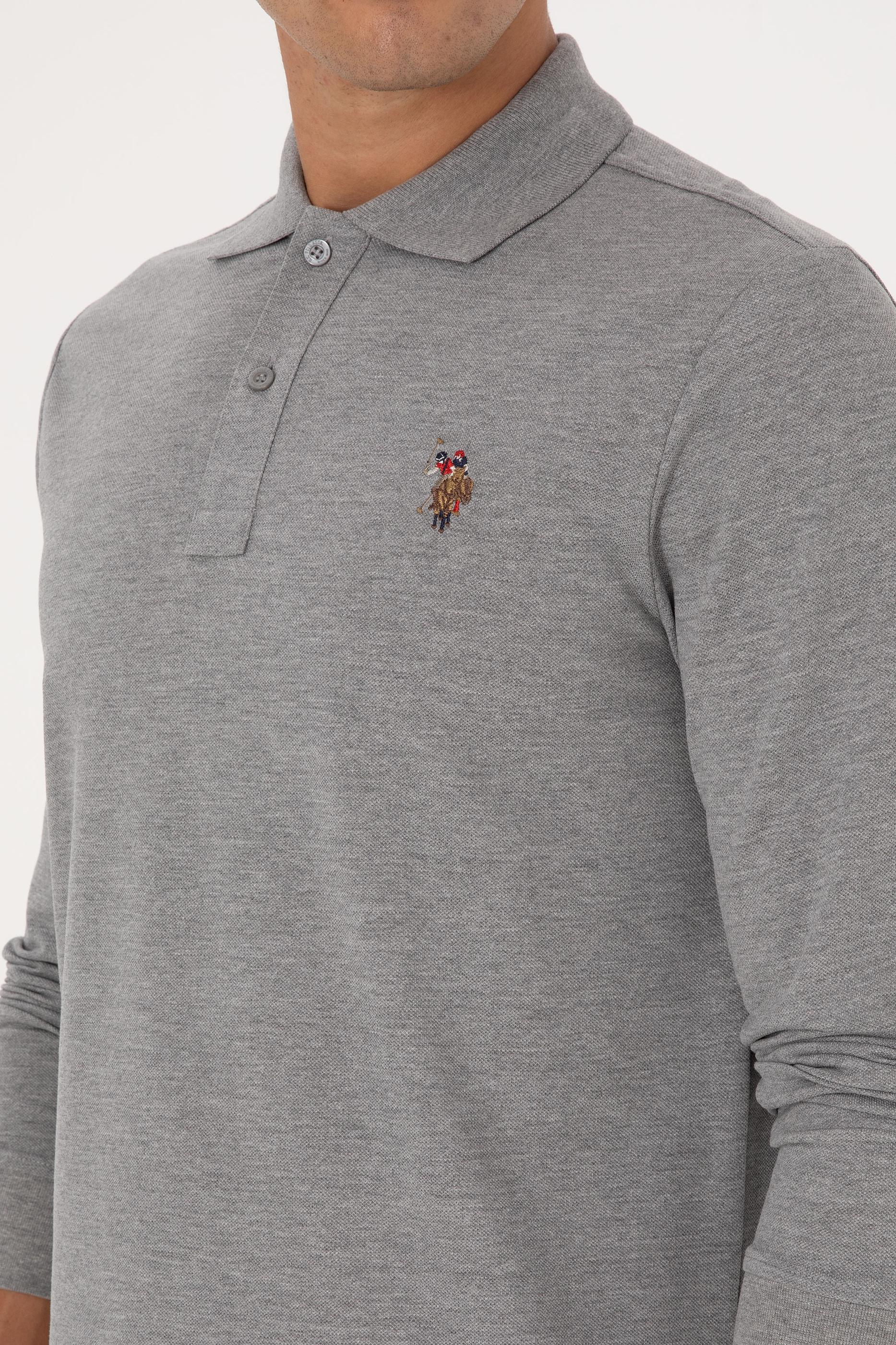 Erkek Regular Fit Polo Yaka Grı Melanj Basic Sweatshirt