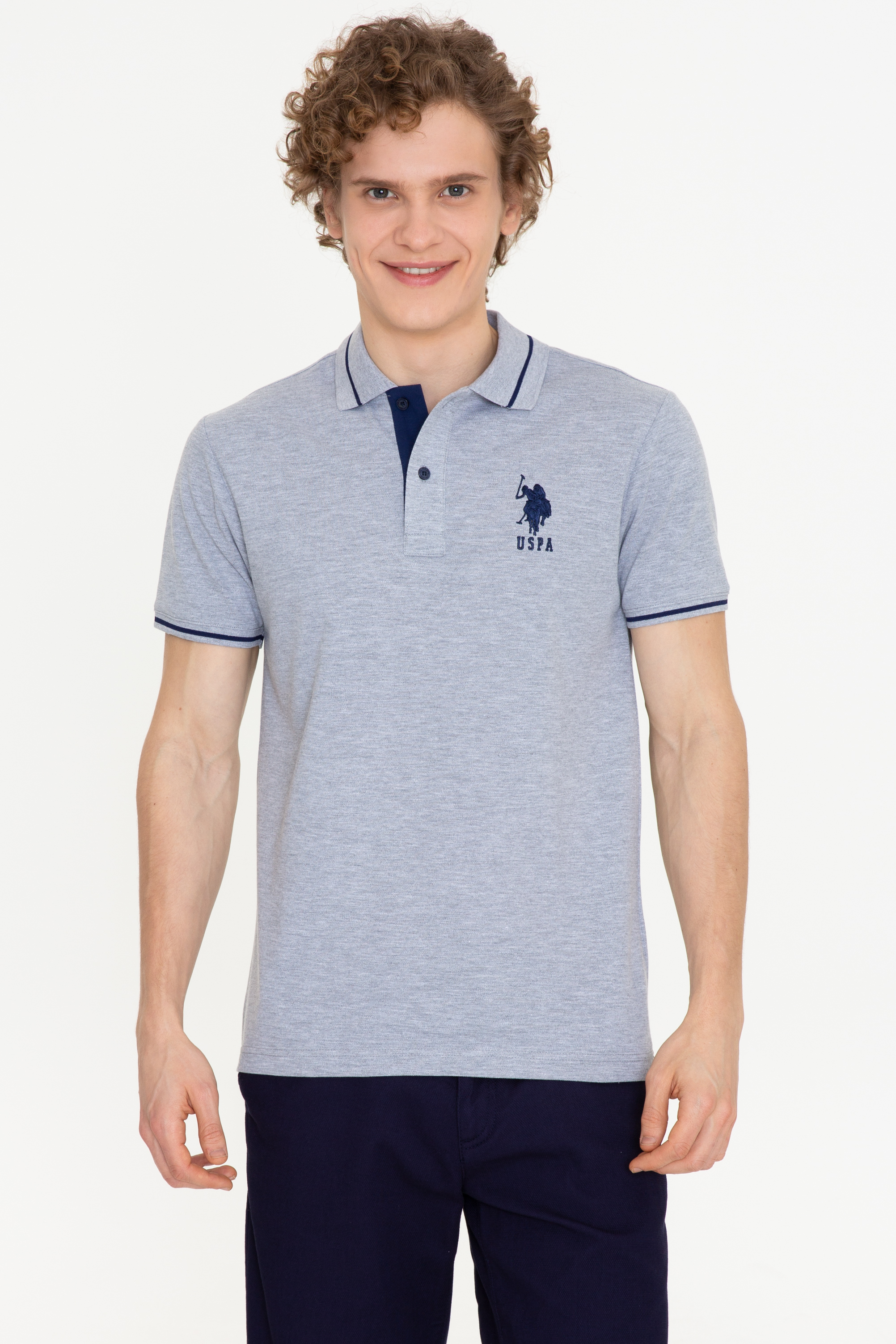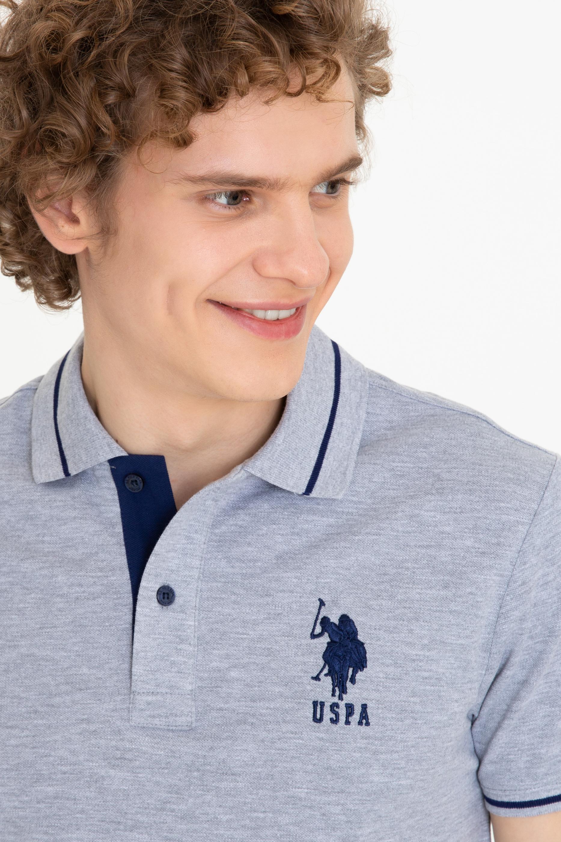 - Erkek Gri Melanj Polo Yaka Basic T-Shirt