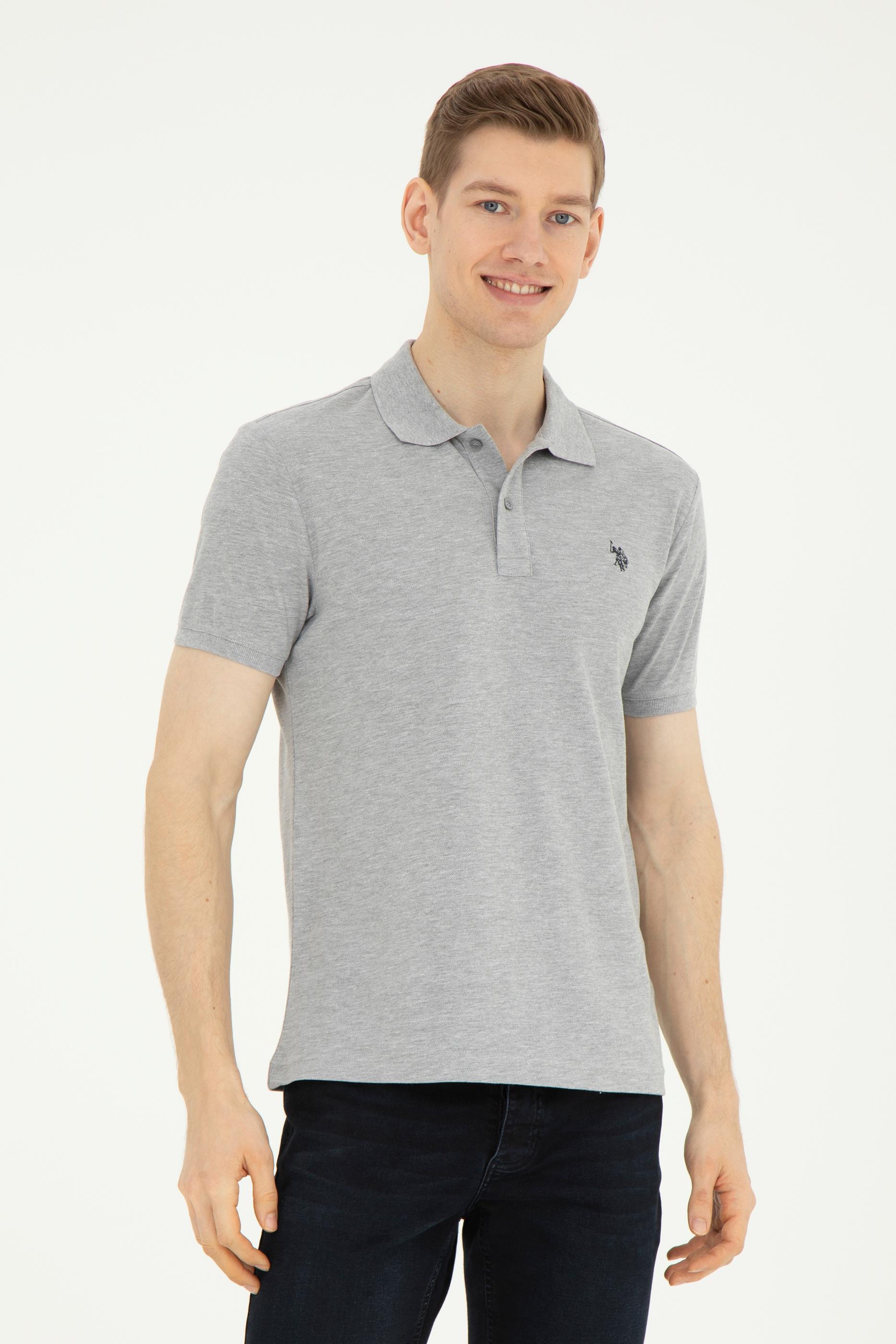 - Erkek Slim Fit Polo Yaka Gri Melanj Basic Tişört