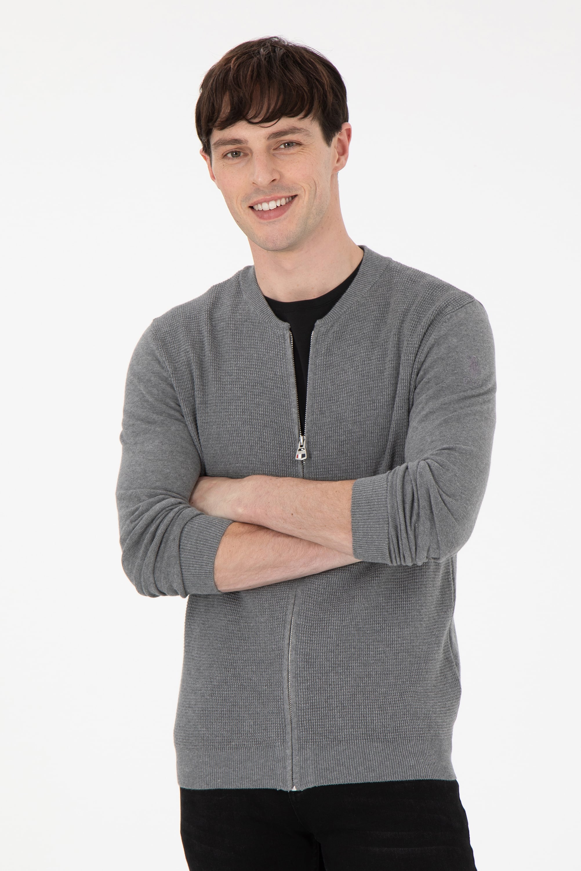 Erkek Gri Melanj Basic Triko Hırka - 50288870063