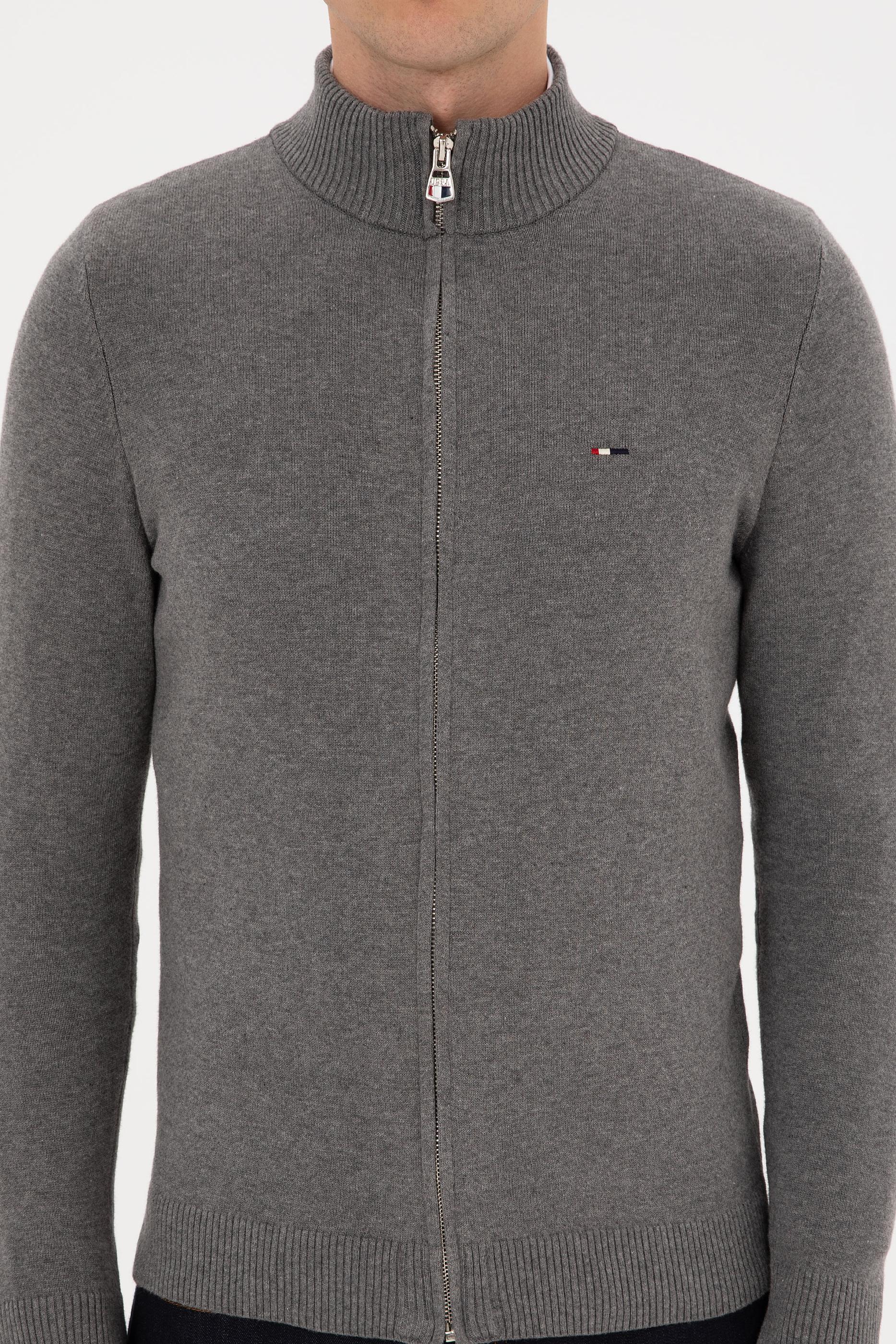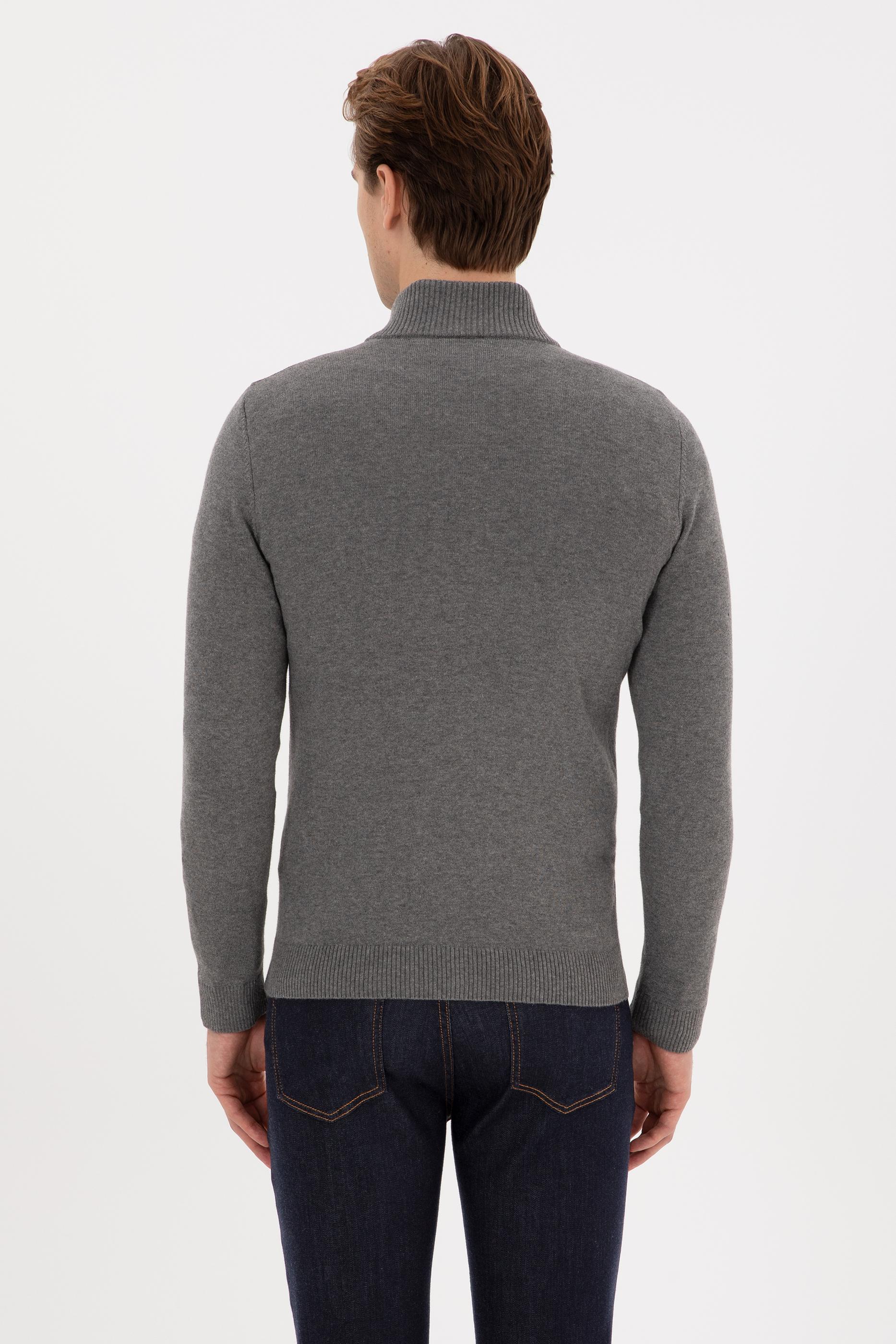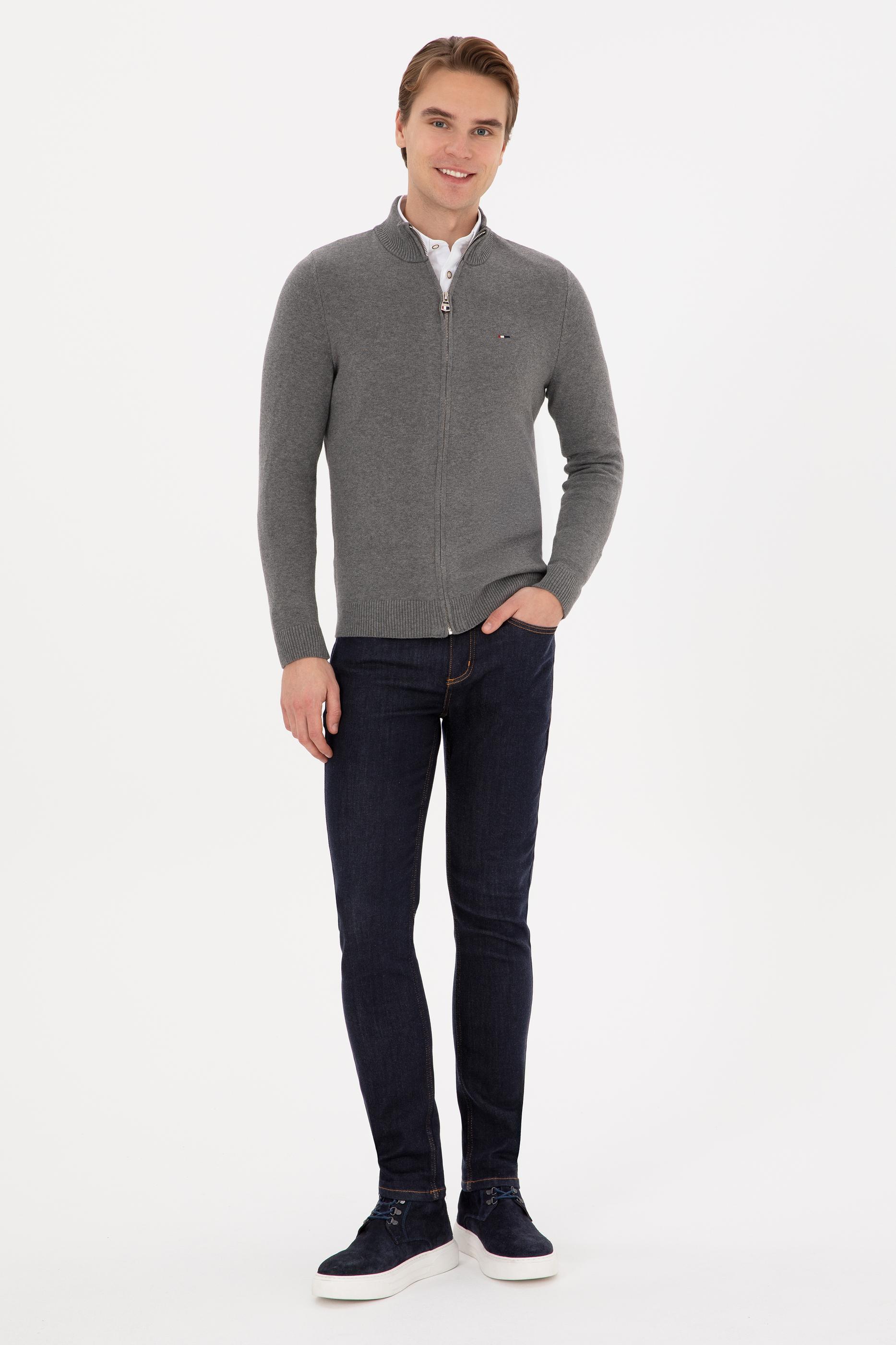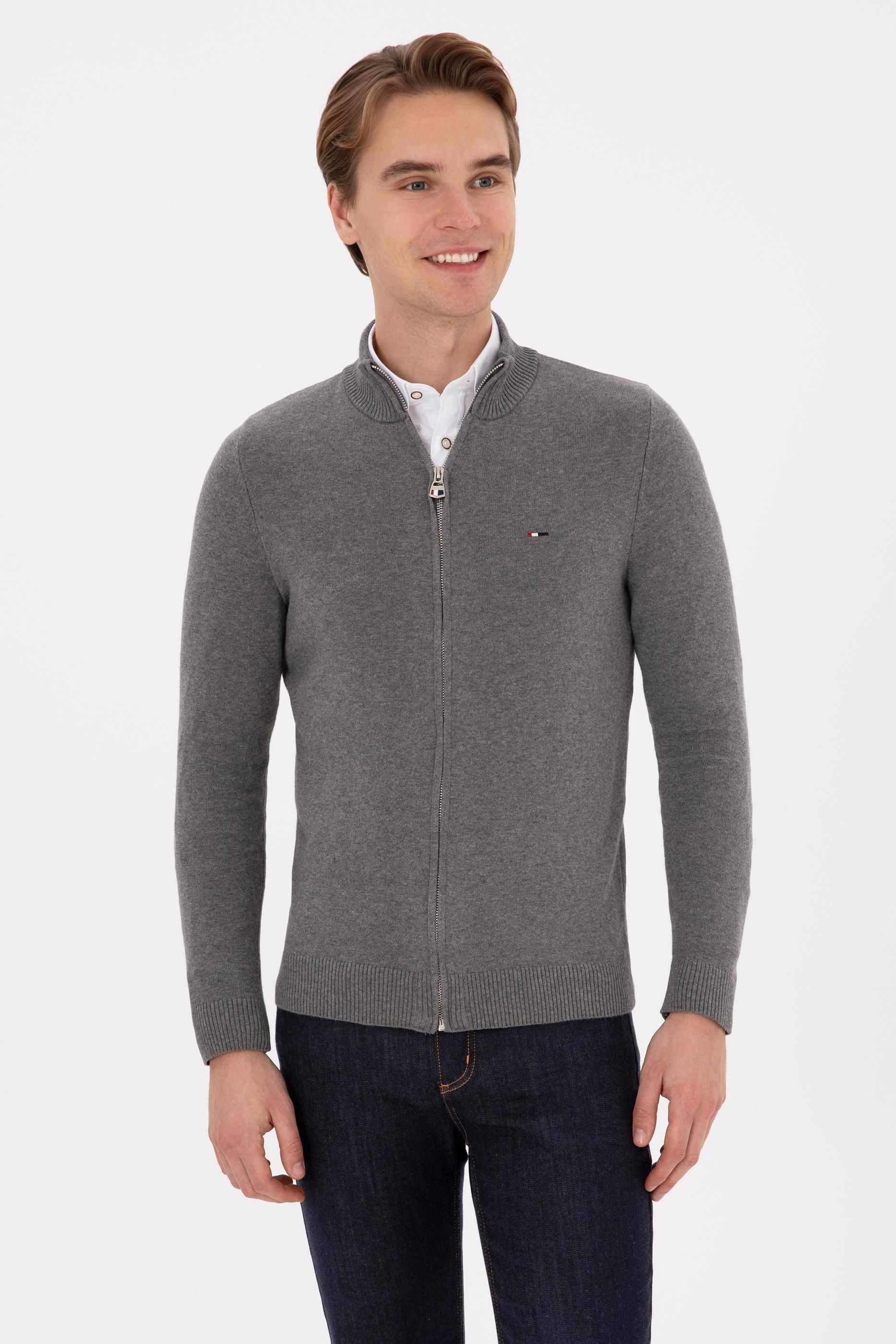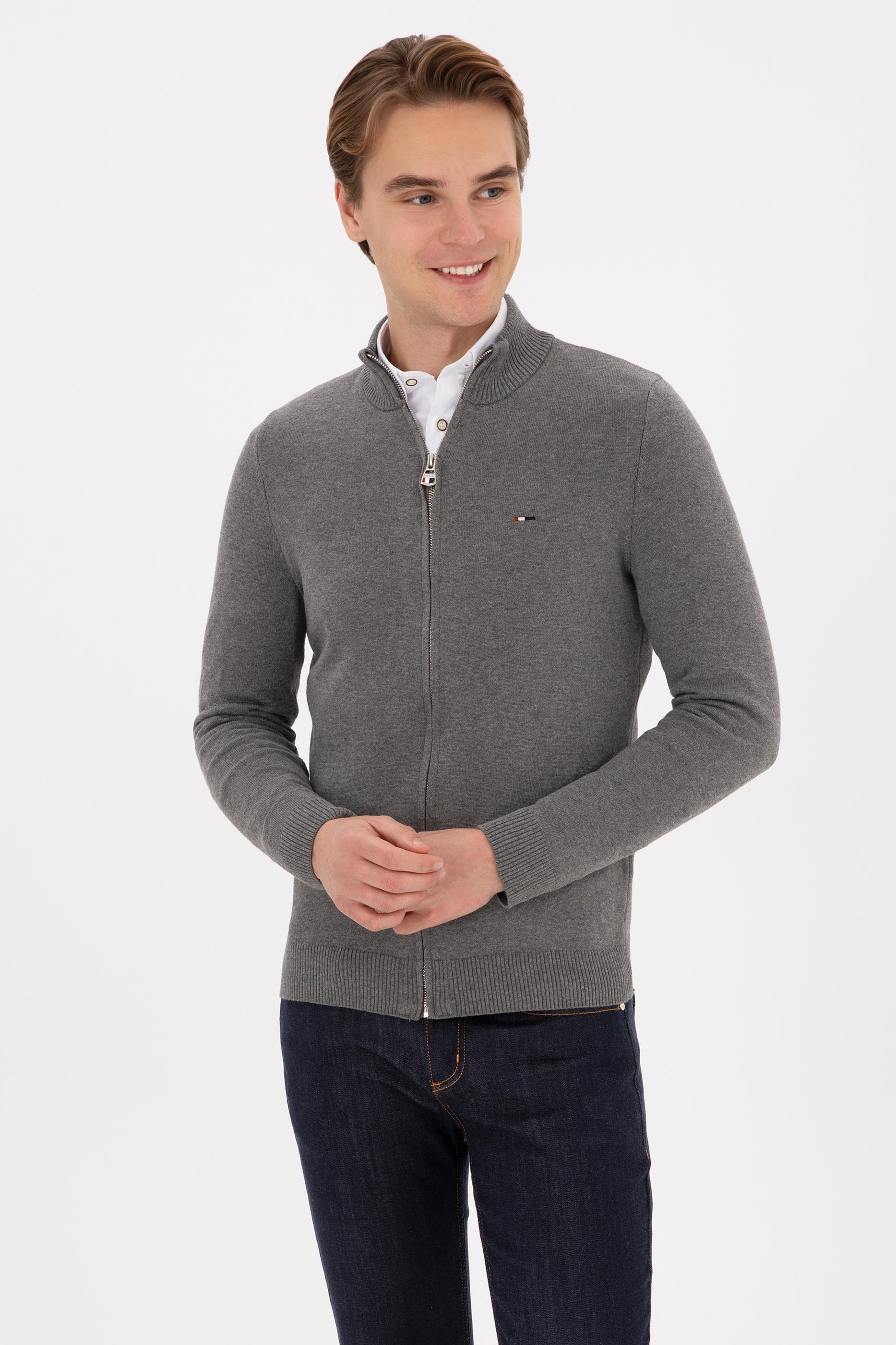 Erkek Gri Melanj Basic Triko Hırka