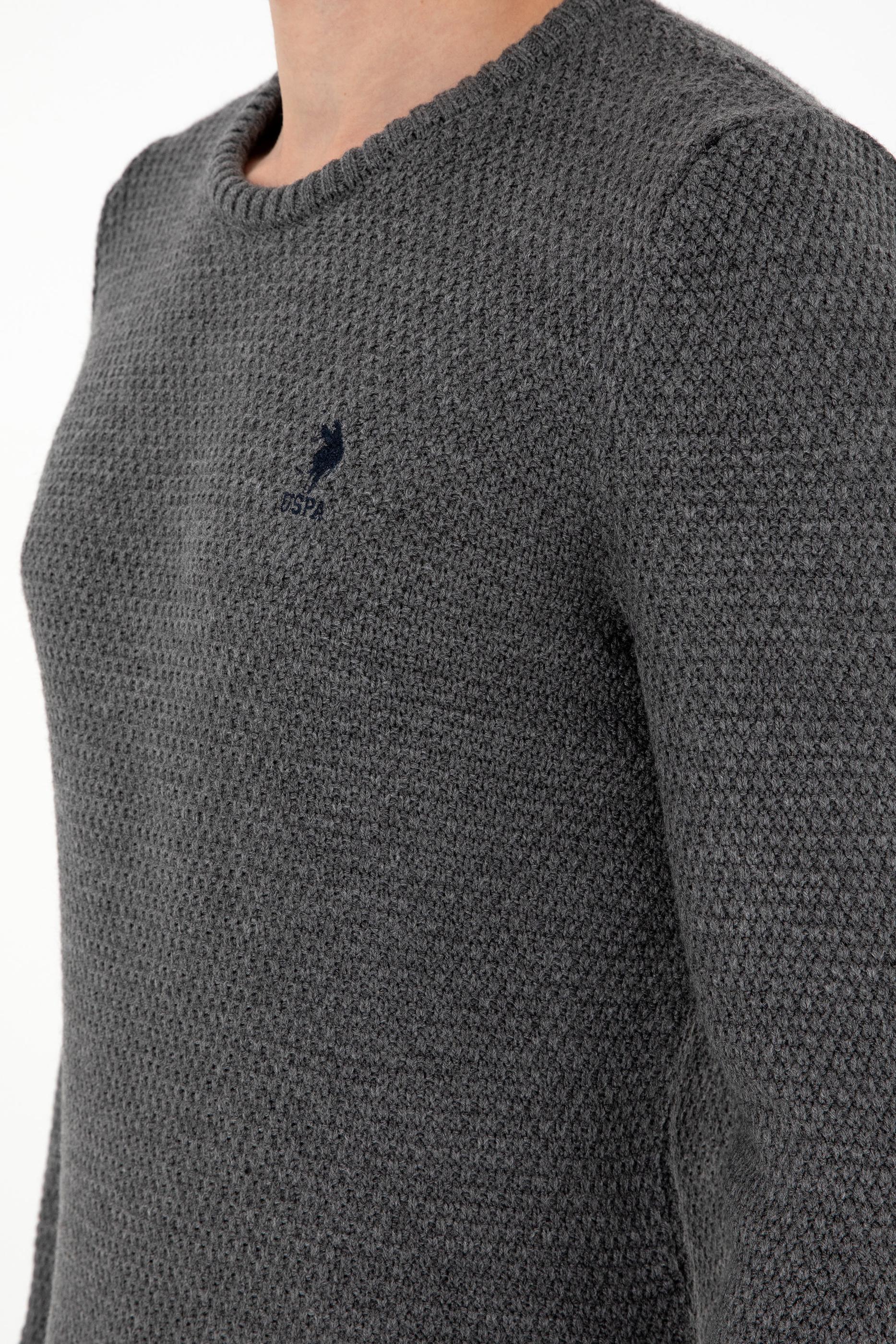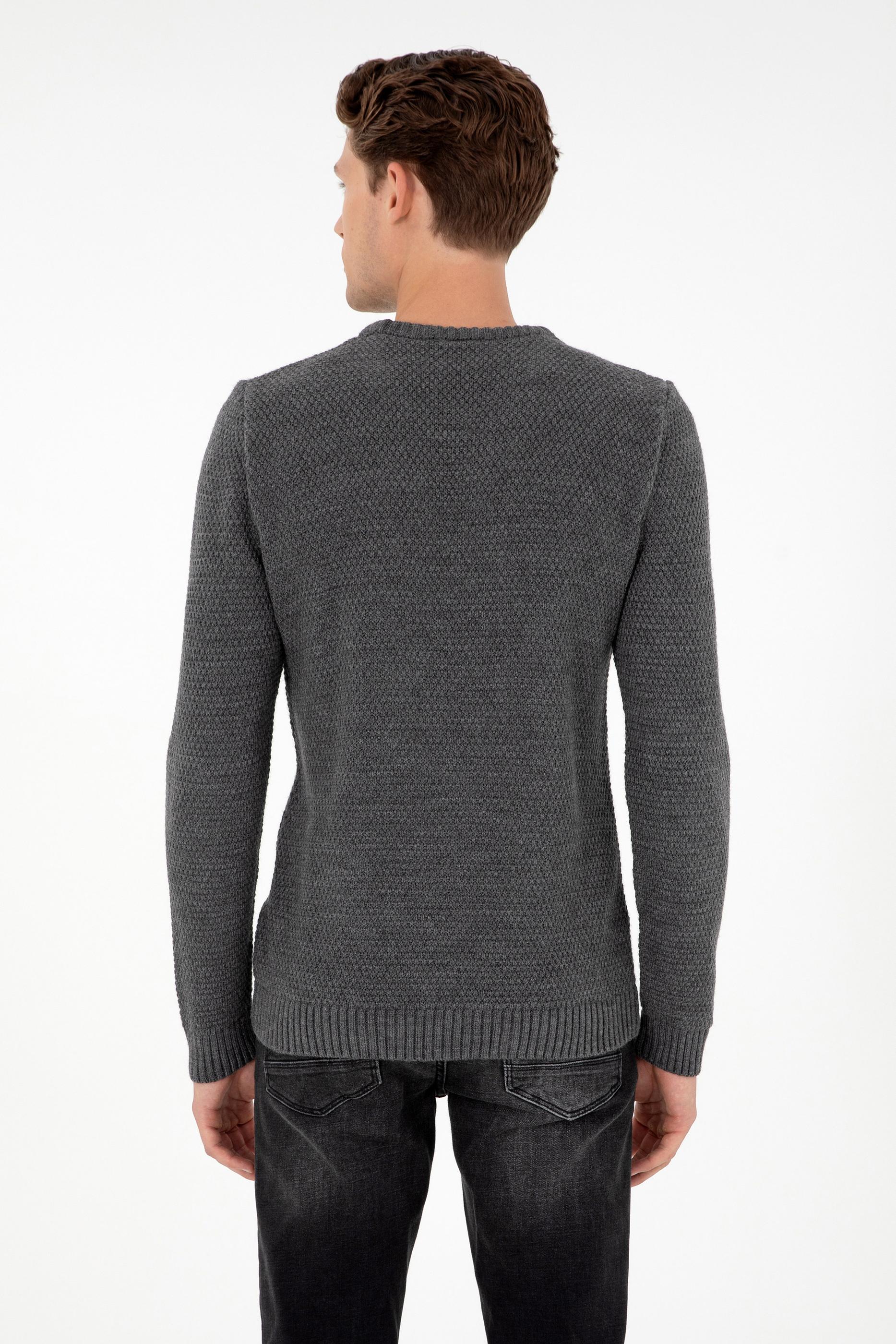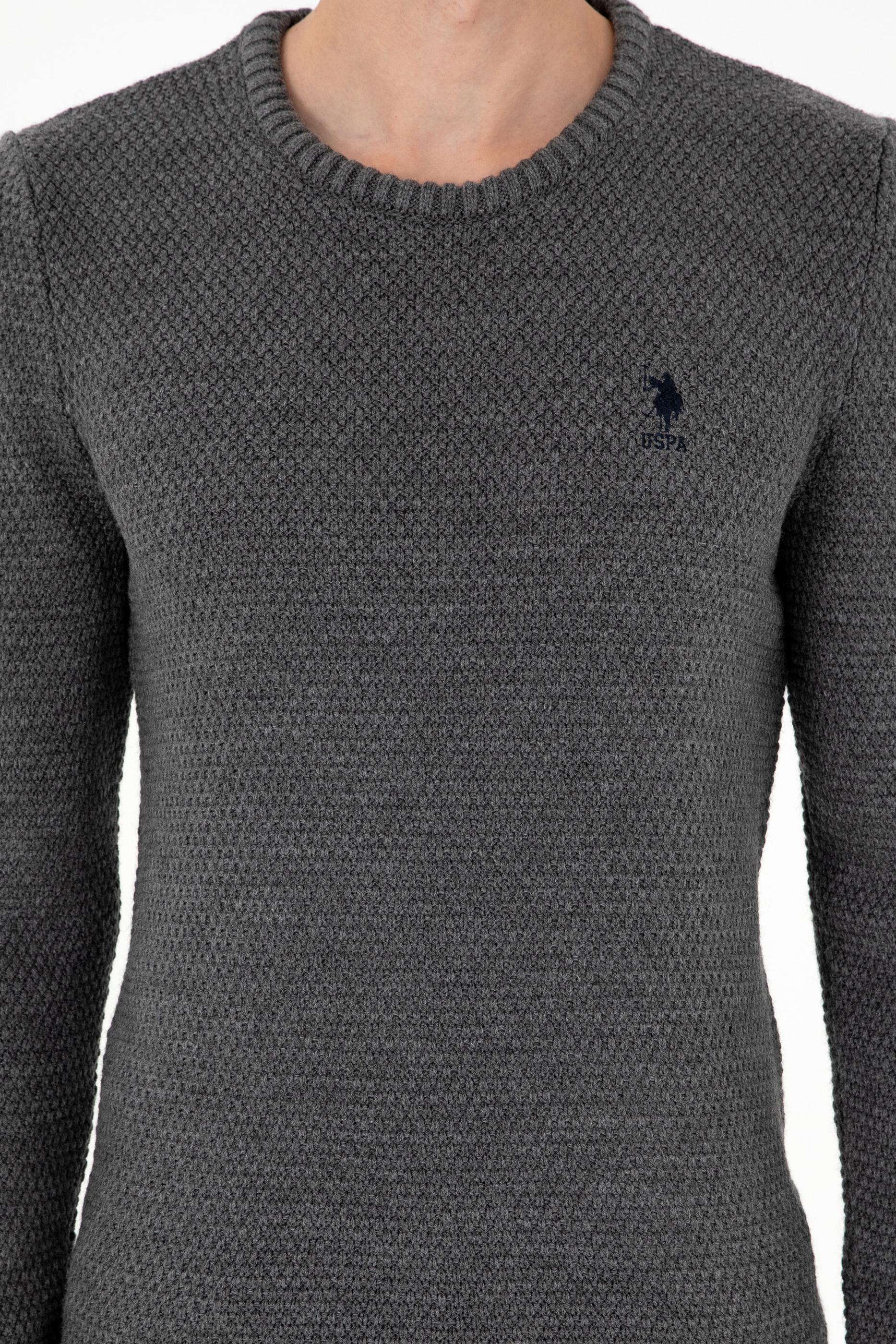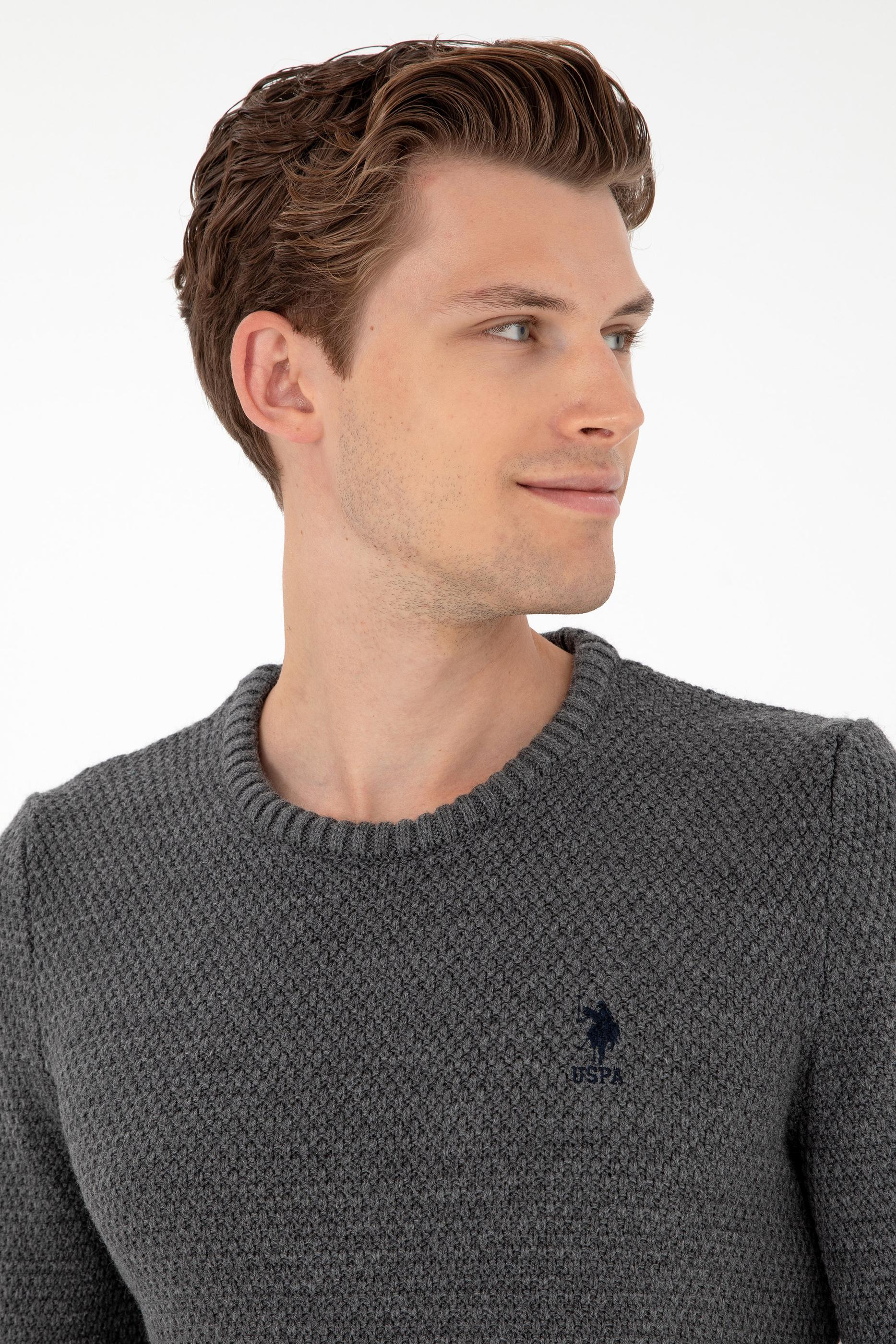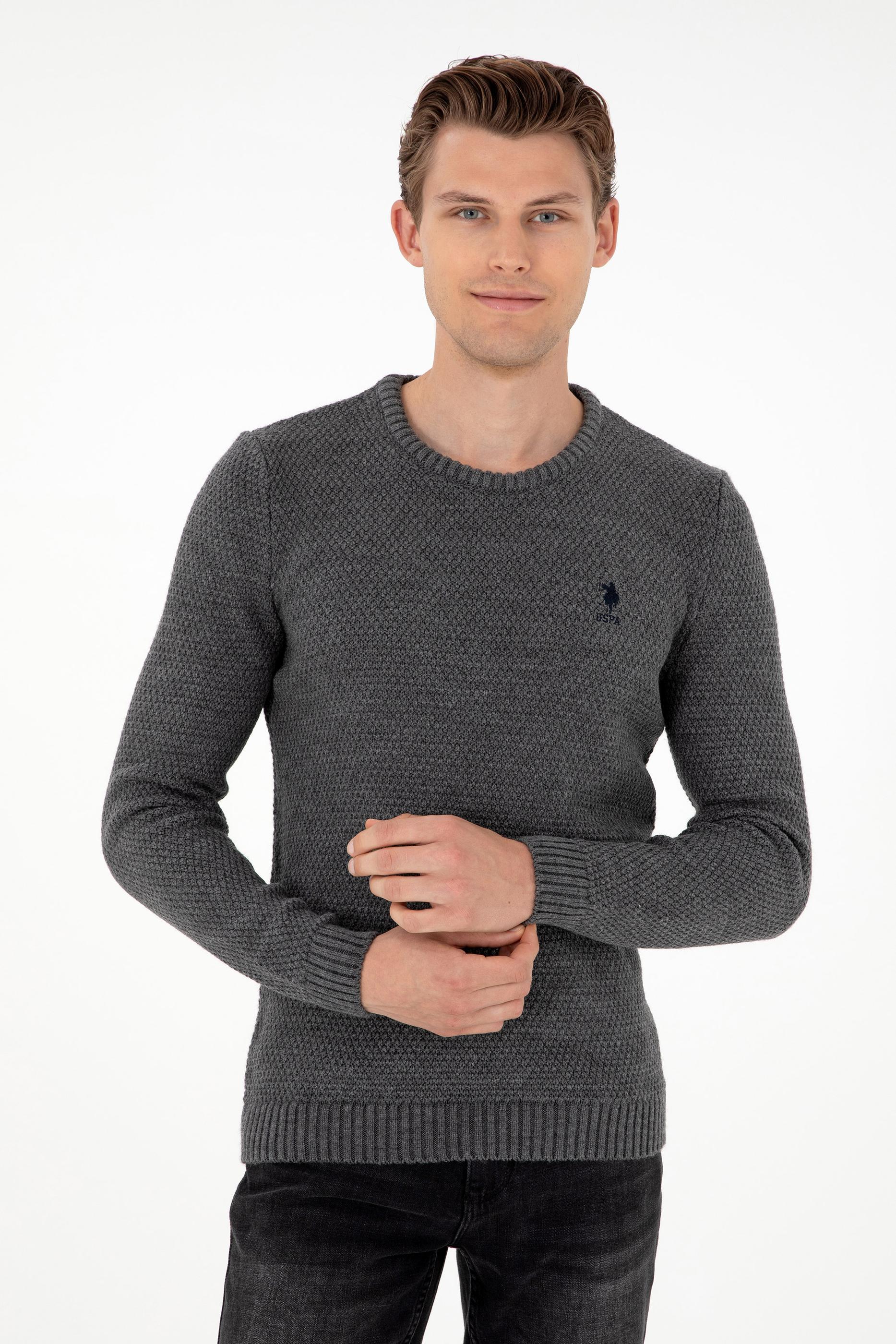 Erkek Slim Fit Bisiklet Yaka Gri Melanj Kazak