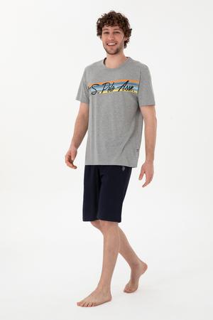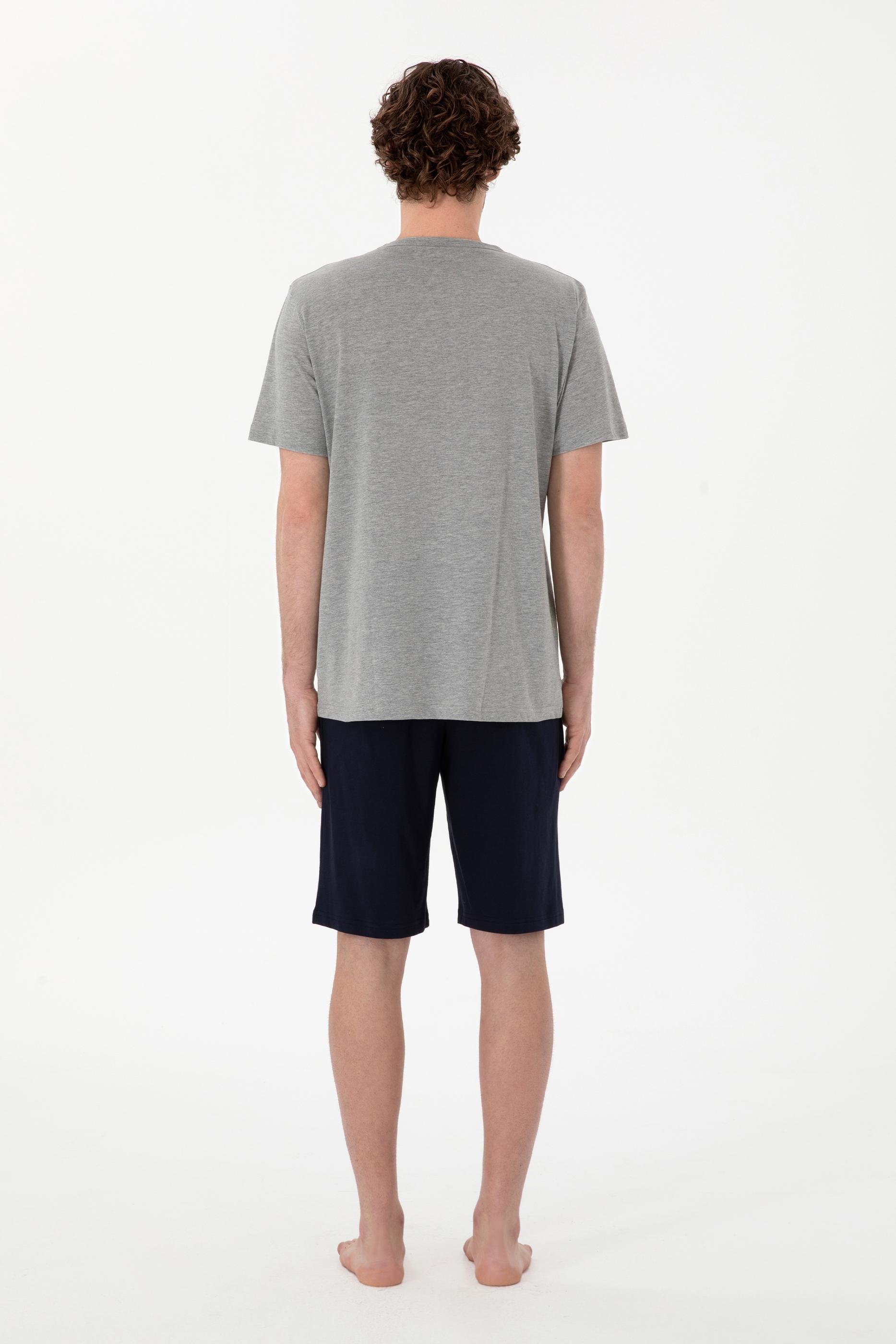 Erkek Bisiklet Yaka Gri Melanj Pijama Takımı