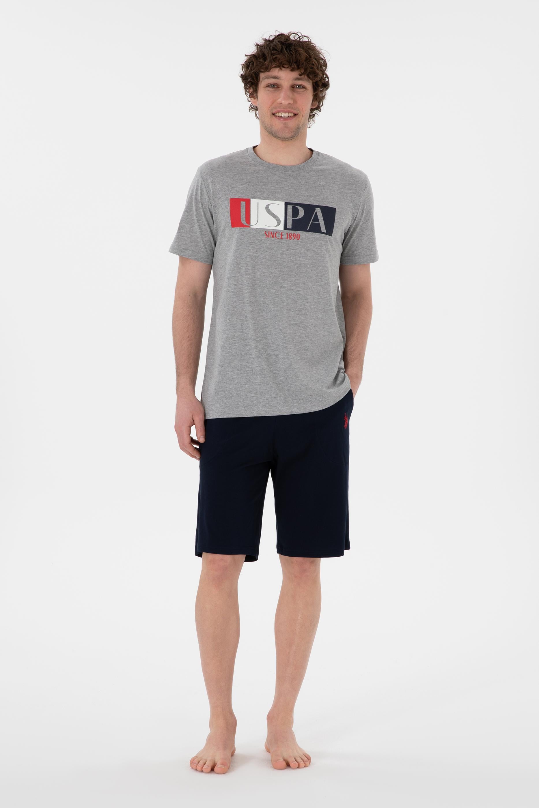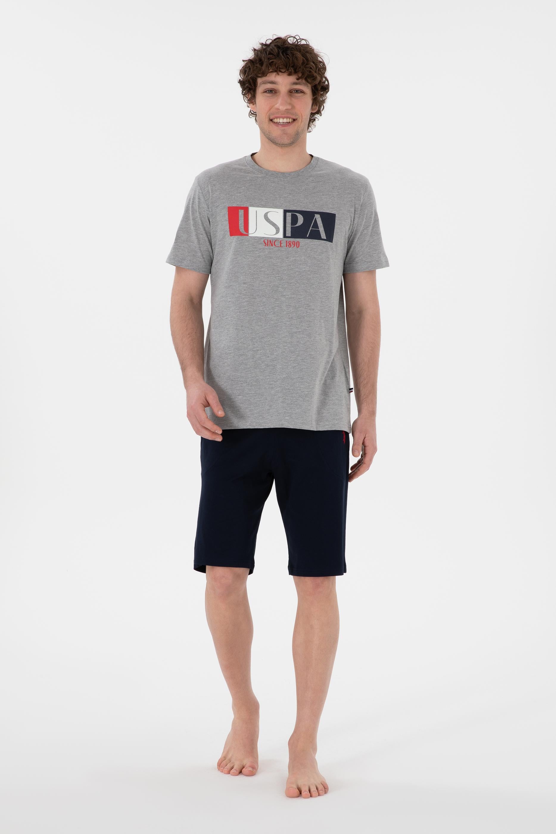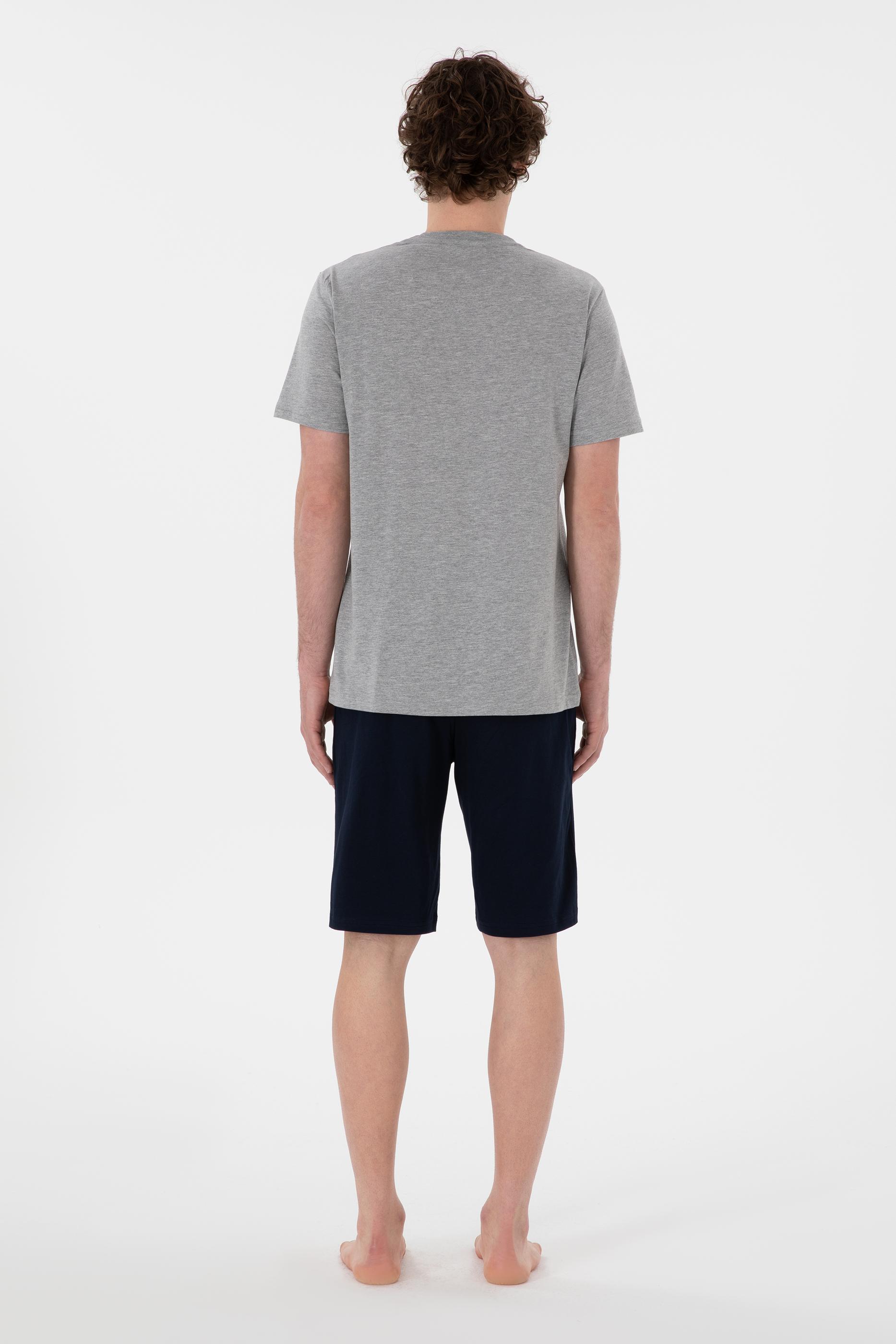 Erkek Bisiklet Yaka Gri Melanj Pijama Takımı