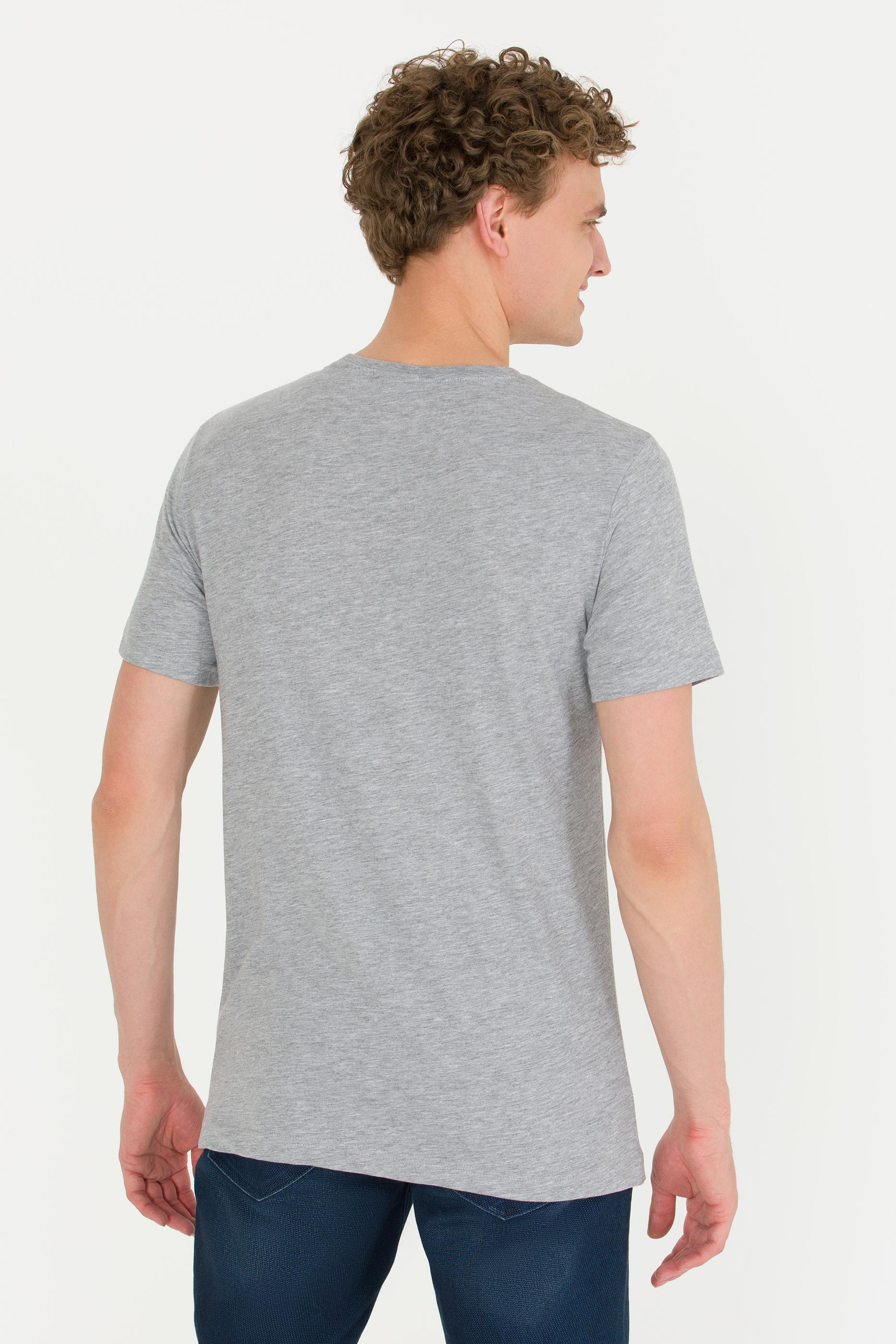 - Erkek Gri Melanj Bisiklet Yaka Tişört