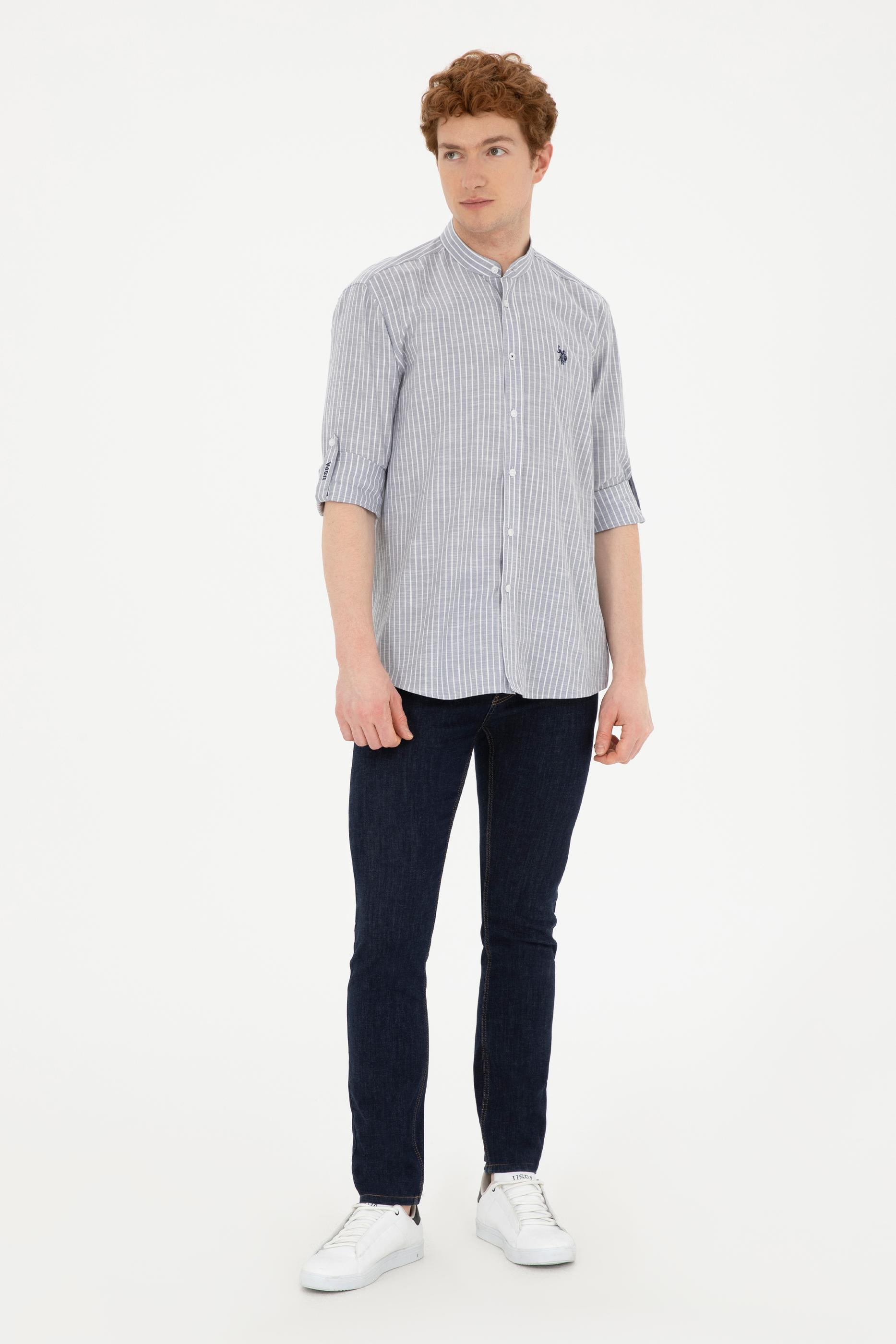 Erkek Hakim Yaka Çizgili Gri Gömlek - 50288924016
