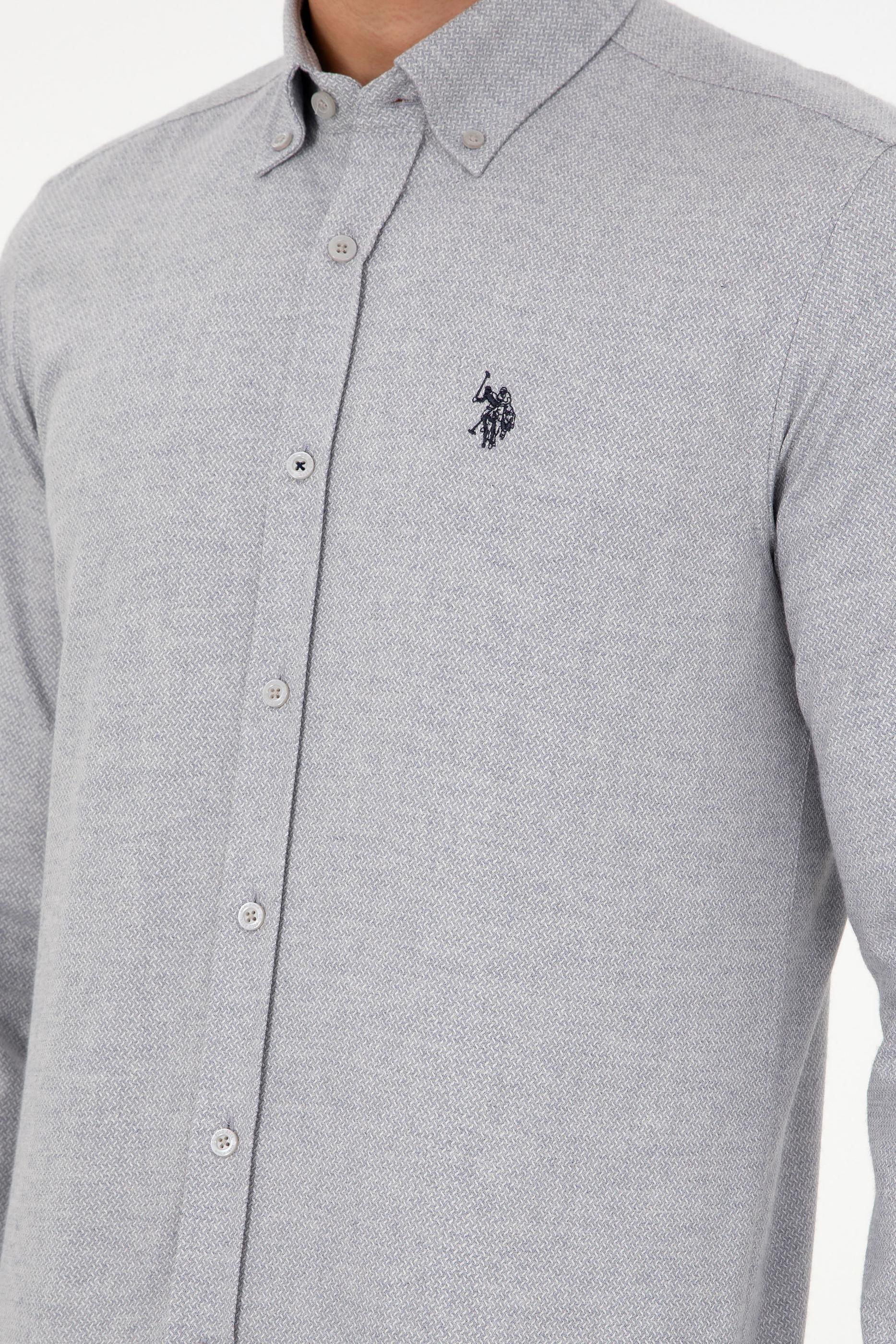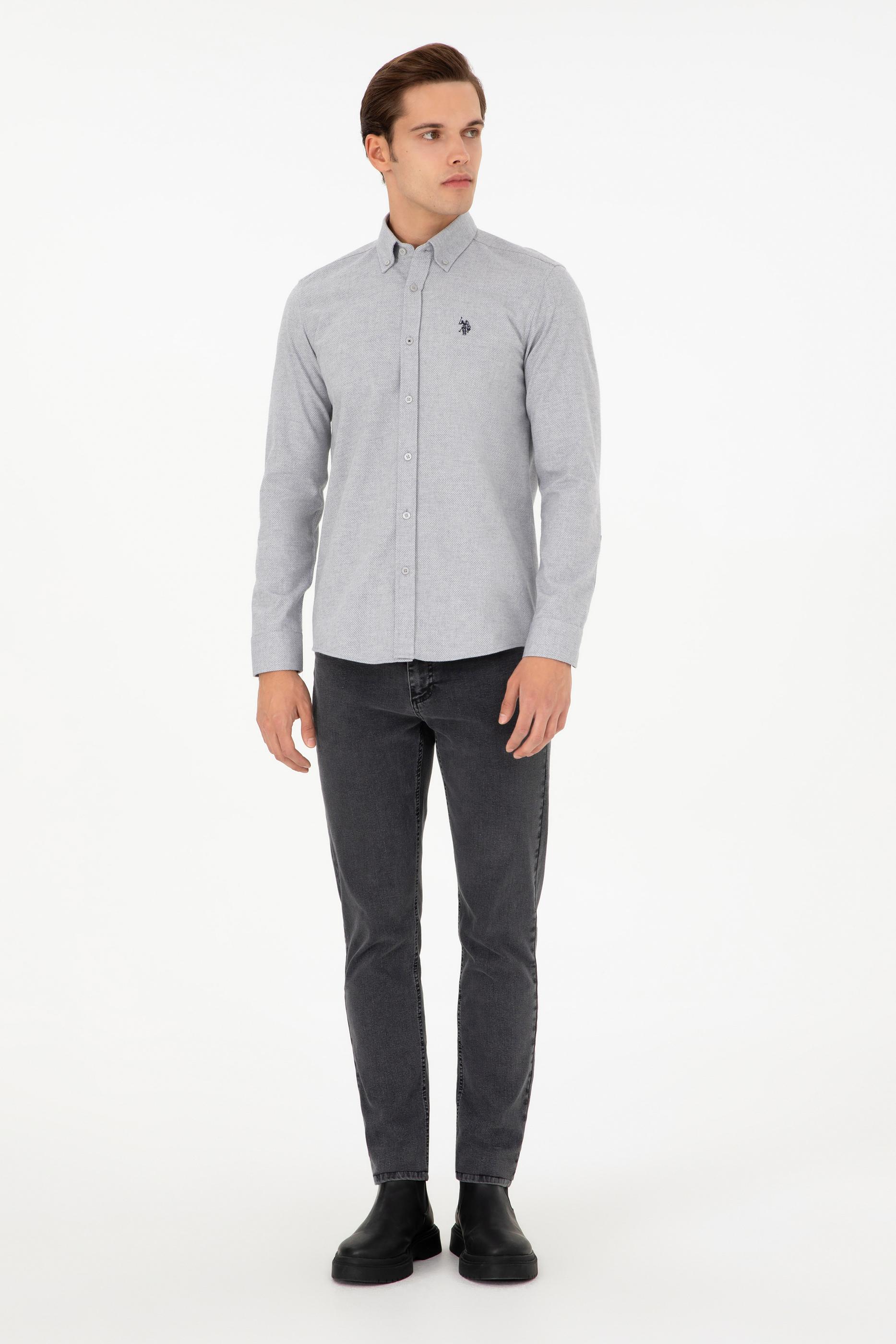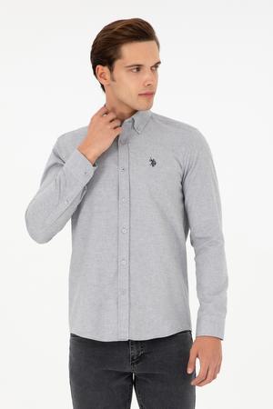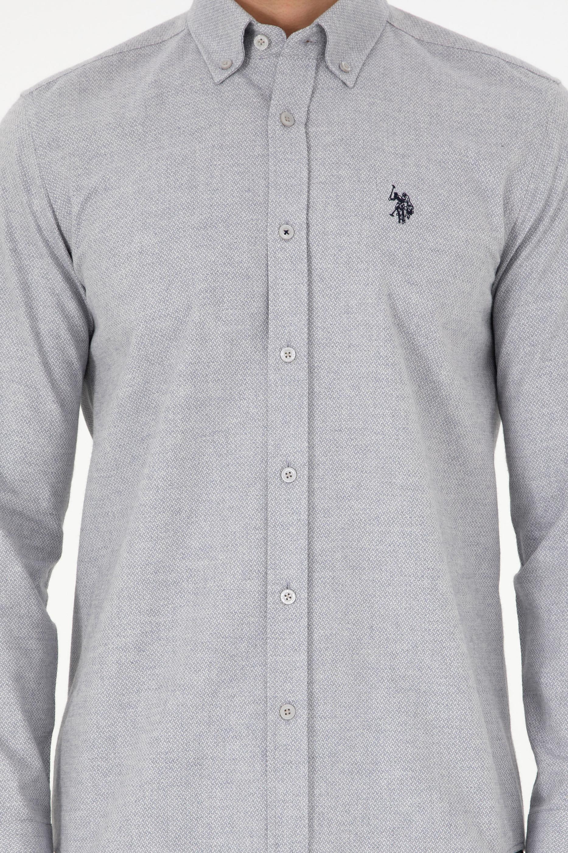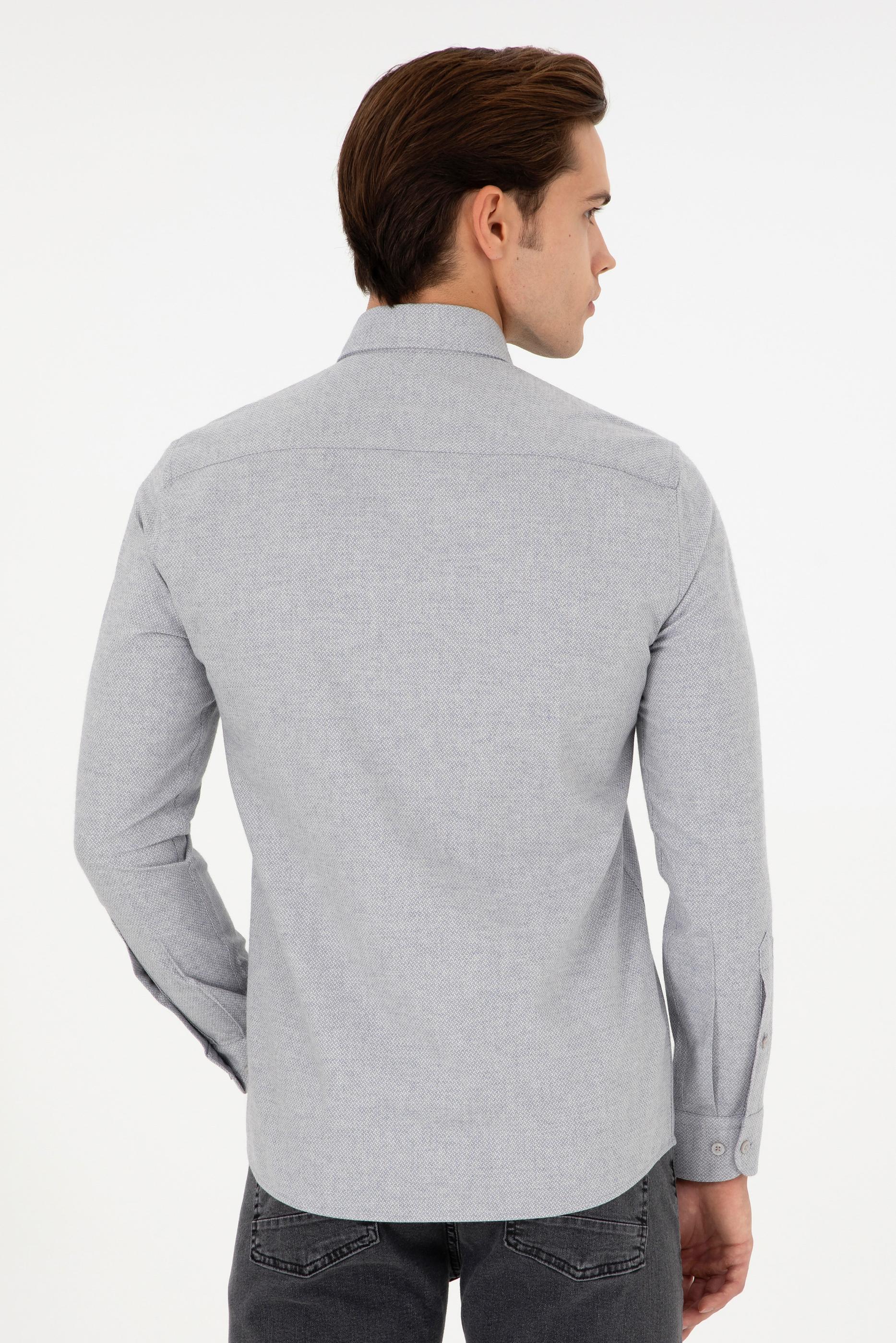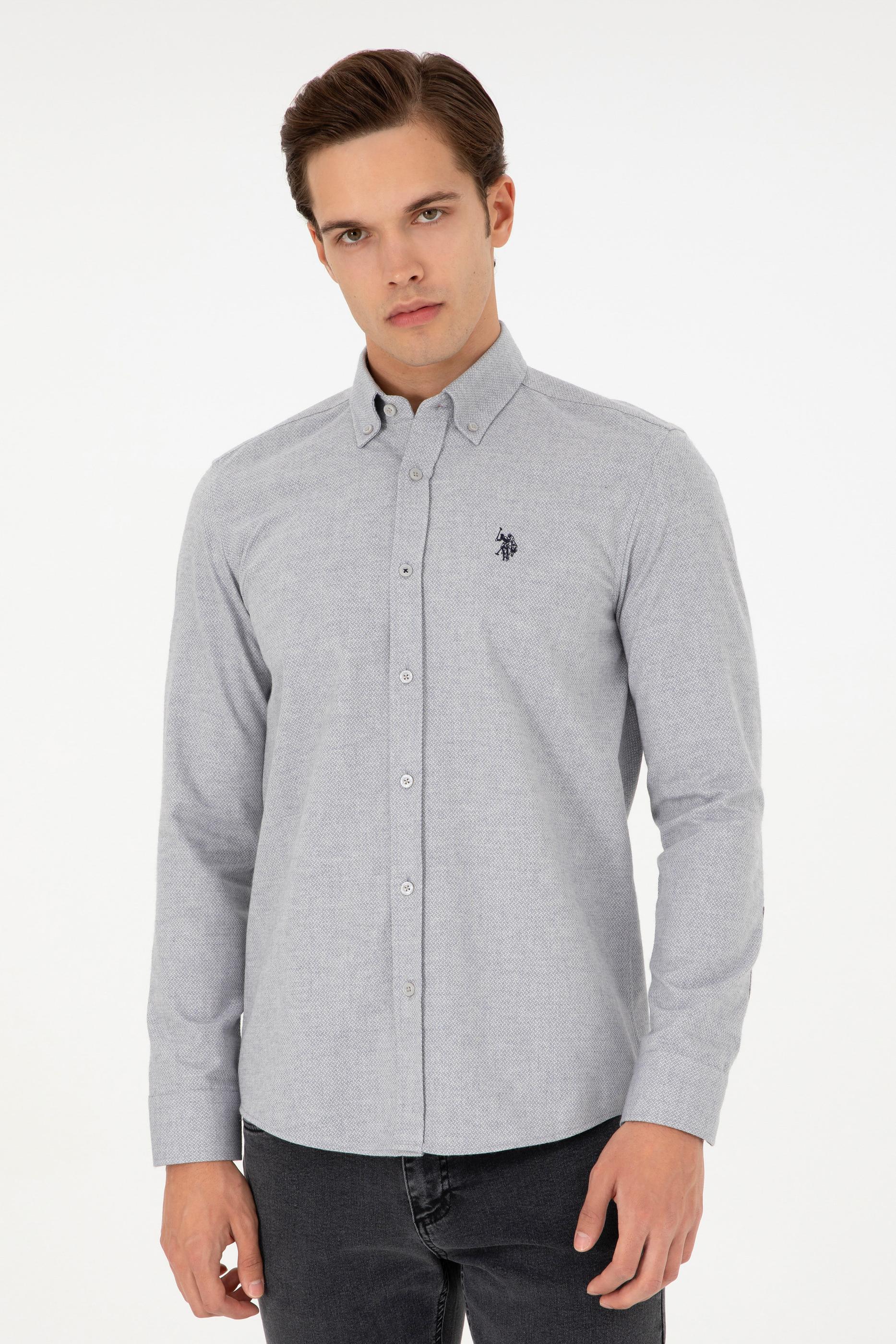 Gri tonlarında dokulu erkek gömleği, %50 pamuk ve %50 polyester karışımı ile dayanıklılığı ve şıklığı bir araya getirir. Yarı pamuklu yapısı, gömleğin hafifliğini ve kullanım kolaylığını artırır. Uzun kollu tasarımı ile her mevsim tercih edilebilecek bir seçenek sunar. Düğmeli yaka detayı gömleğe klasik bir hava katarken, cep bulunmaması temiz ve sade bir görünüm sağlar.