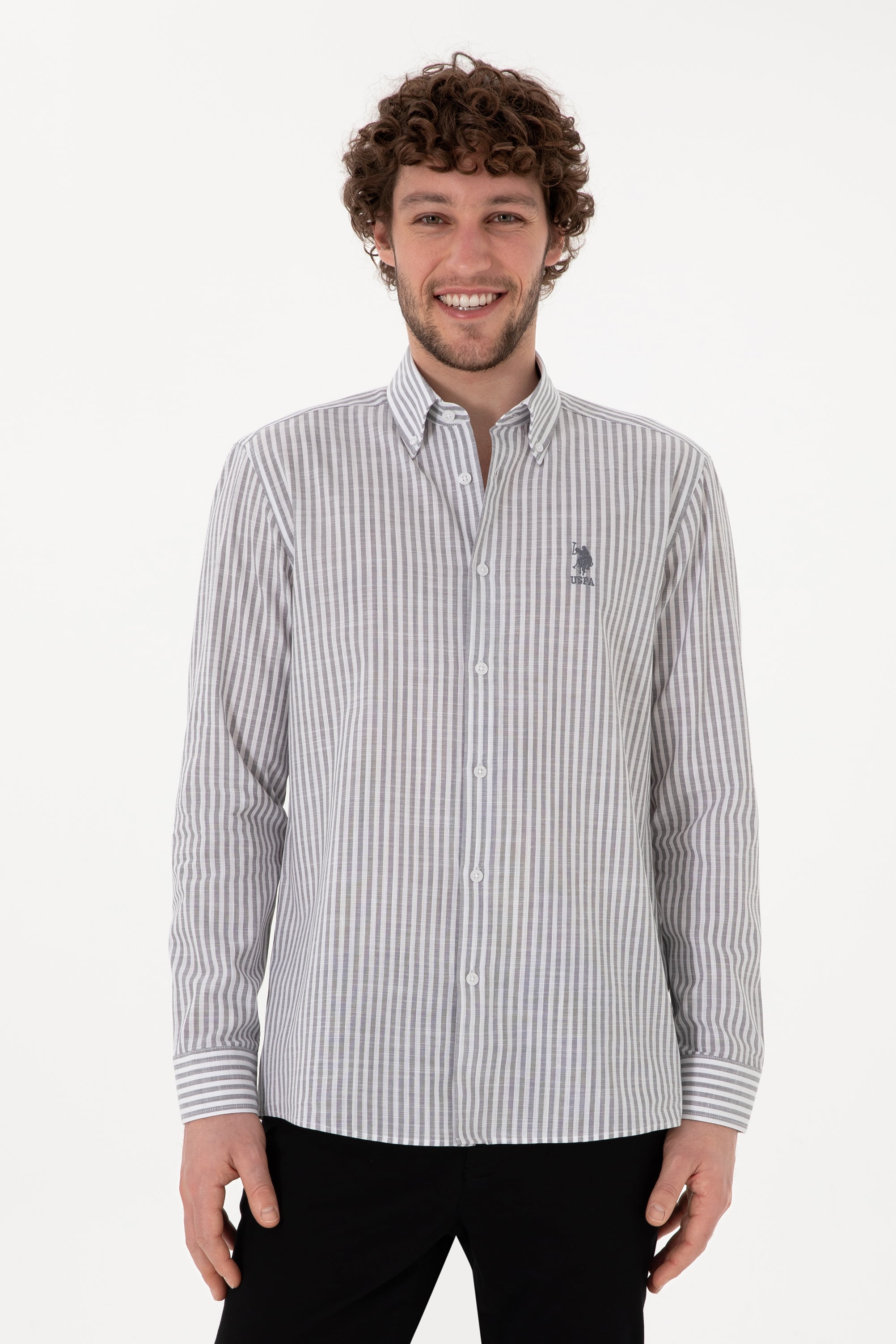 - Erkek Çizgili Gri Gömlek