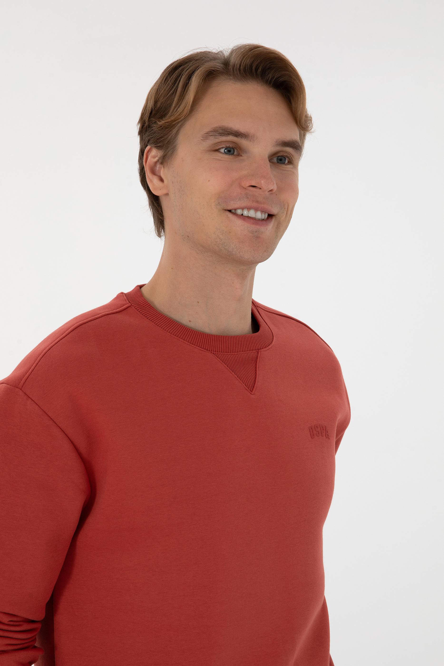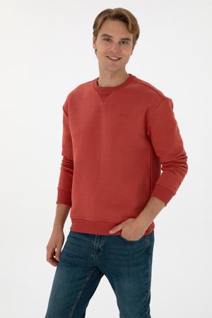 Erkek Comfort Fit Bisiklet Yaka Şardonlu Gül Kurusu Basic Sweatshirt
