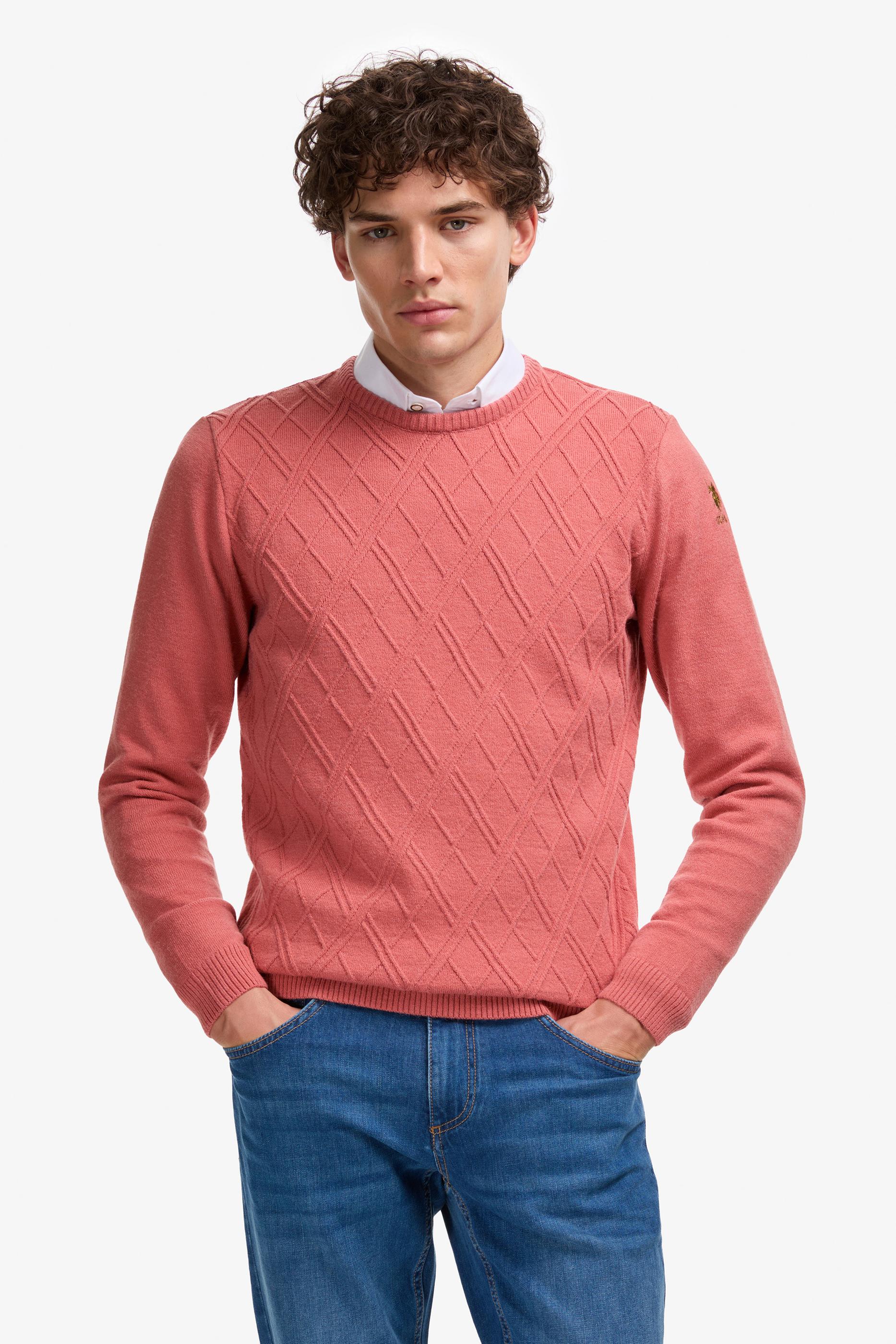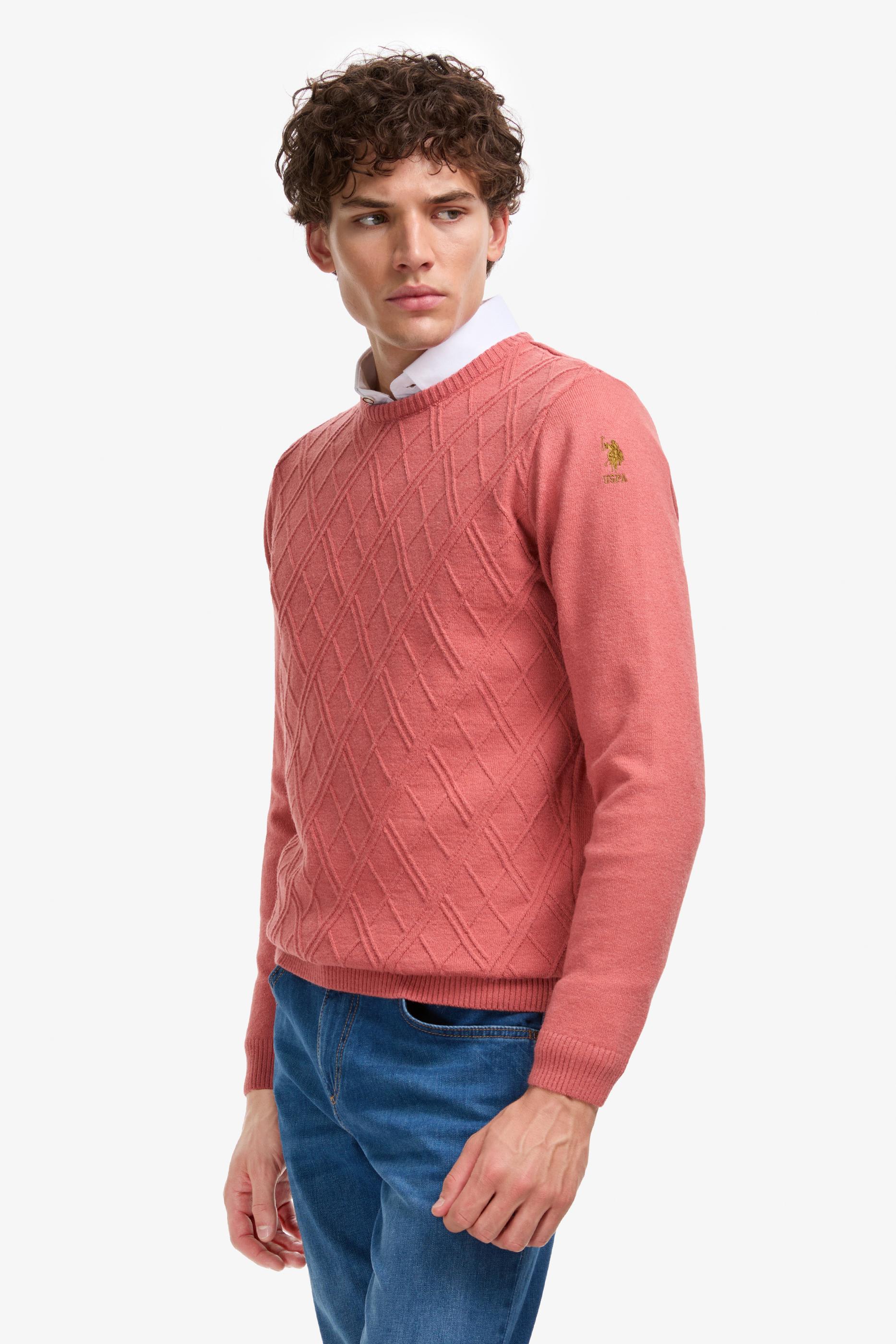 - Erkek Regular Fit Bisiklet Yaka Gül Kurusu Kazak